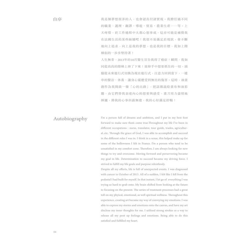 2.從事油畫創作是我新生命的開始,藉著每幅畫的意象,讓我更認識自己,好想給我自己一個新的名字!