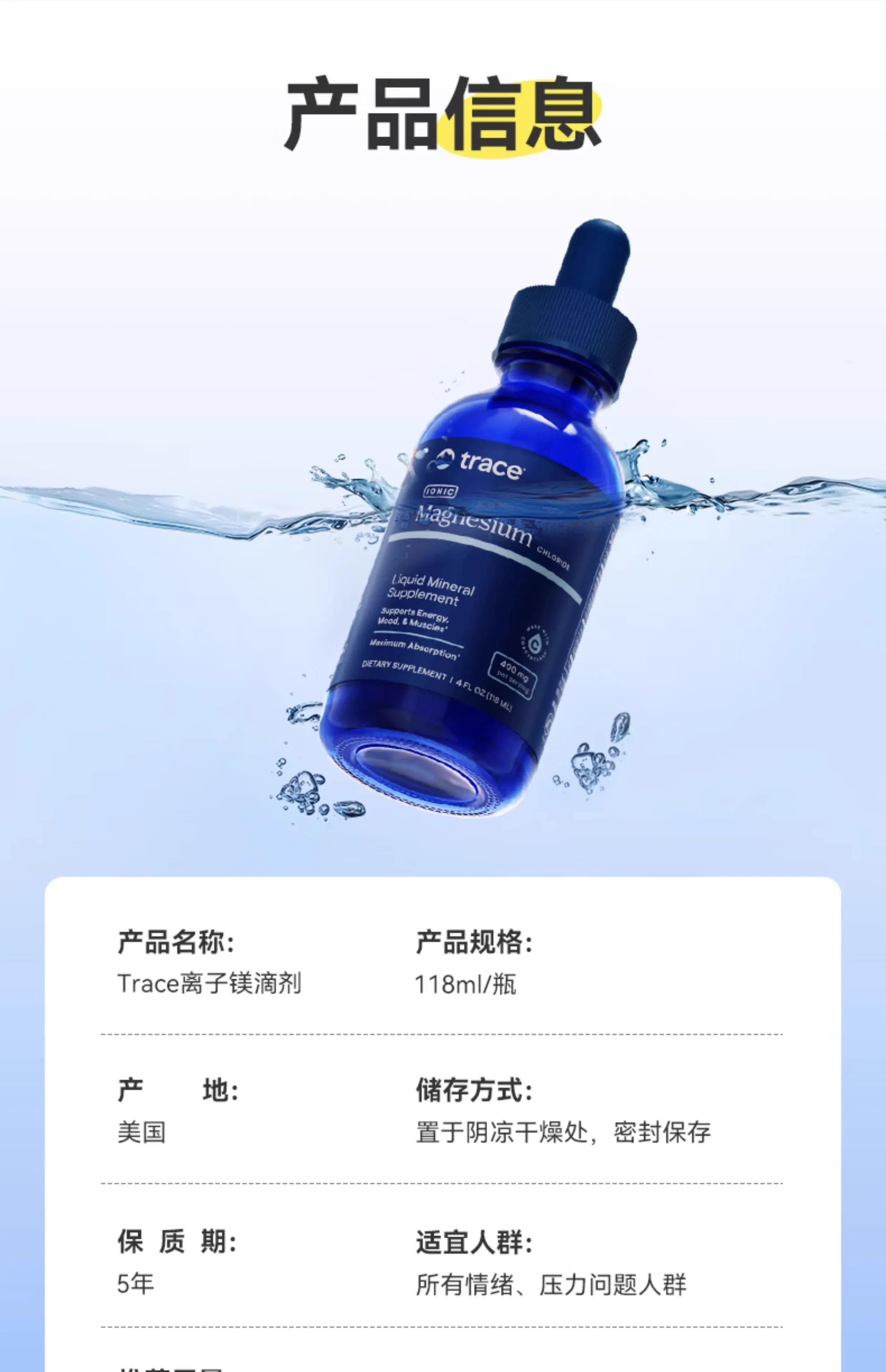 【特价】TRACE牌液态离子镁滴剂118ML