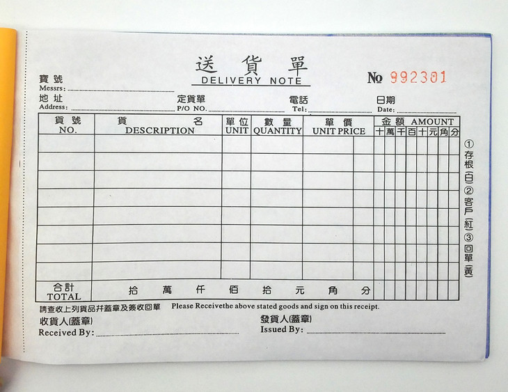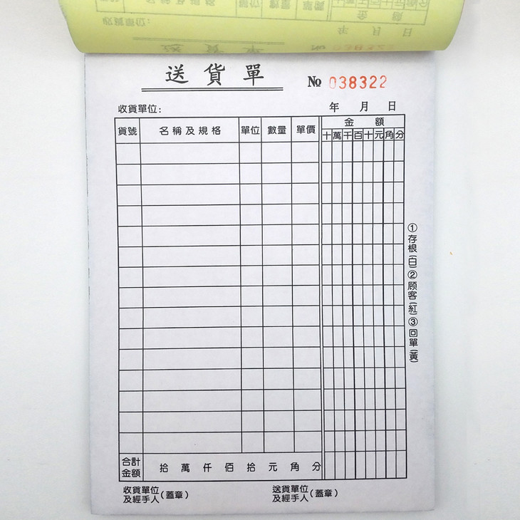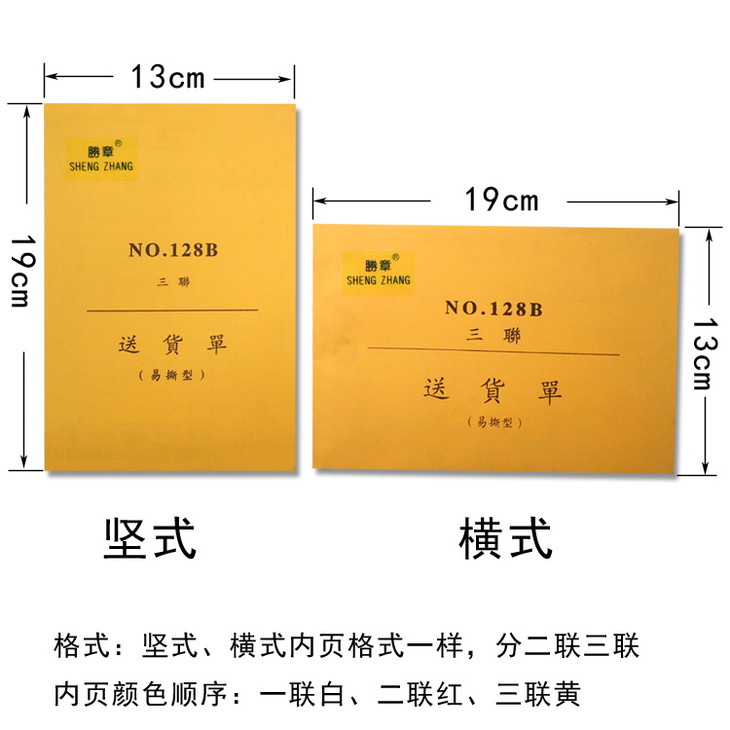 胜章送货单大号销货清单32K横式坚式无碳自复二联三联直式累计版
