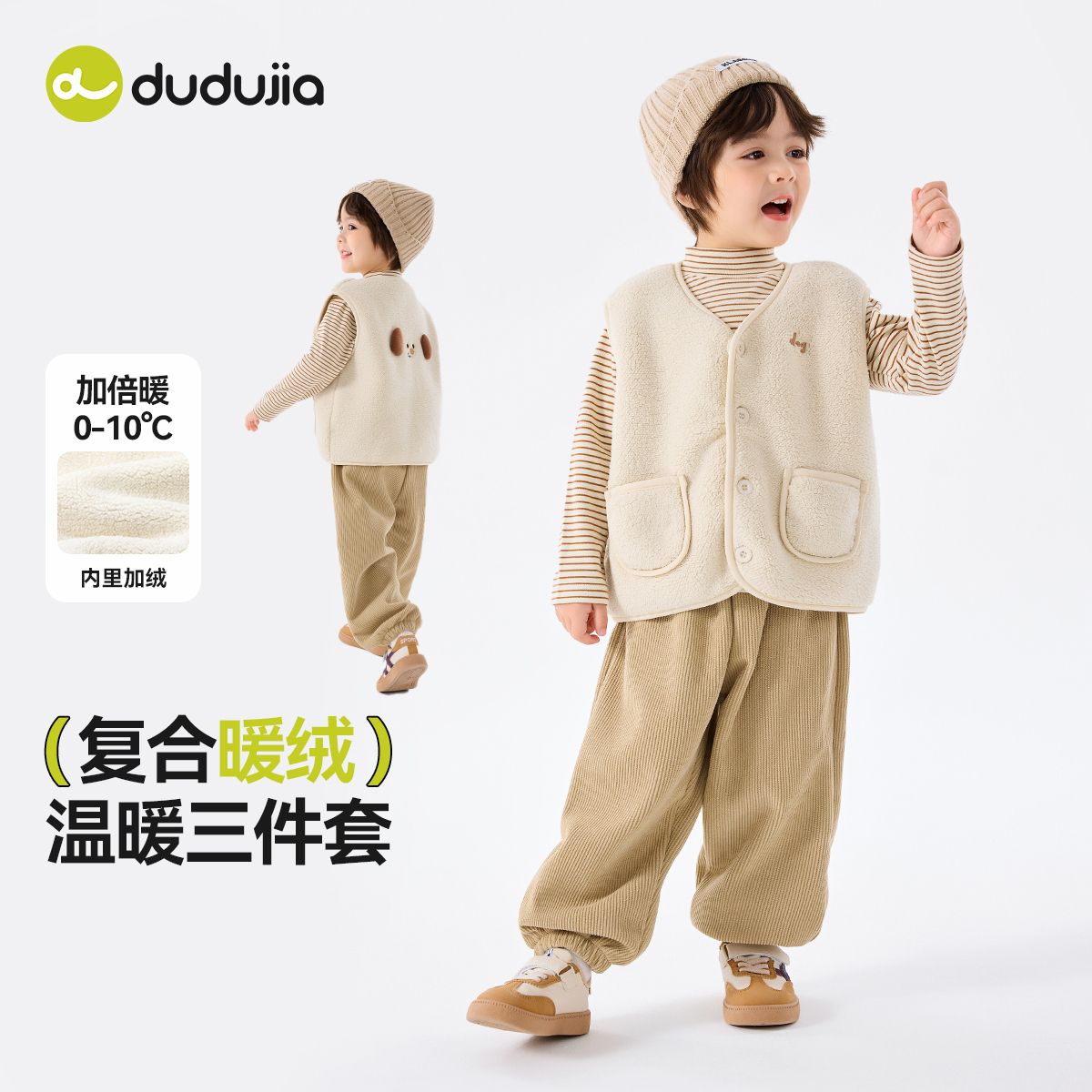 嘟嘟家米白毛绒外套四件套