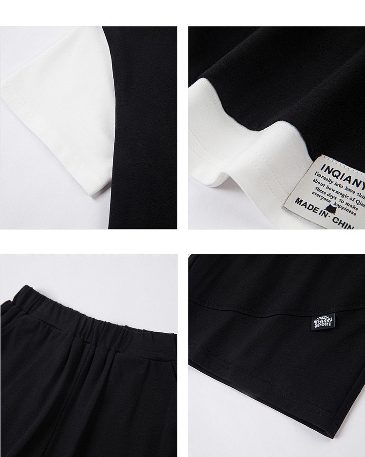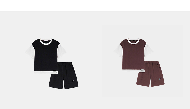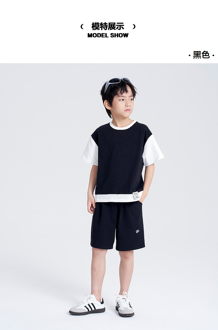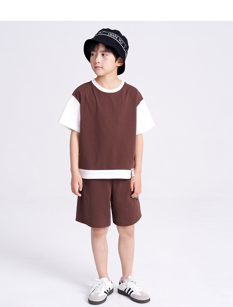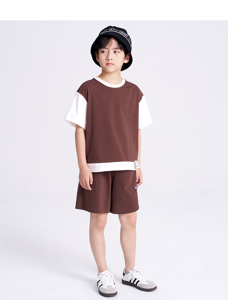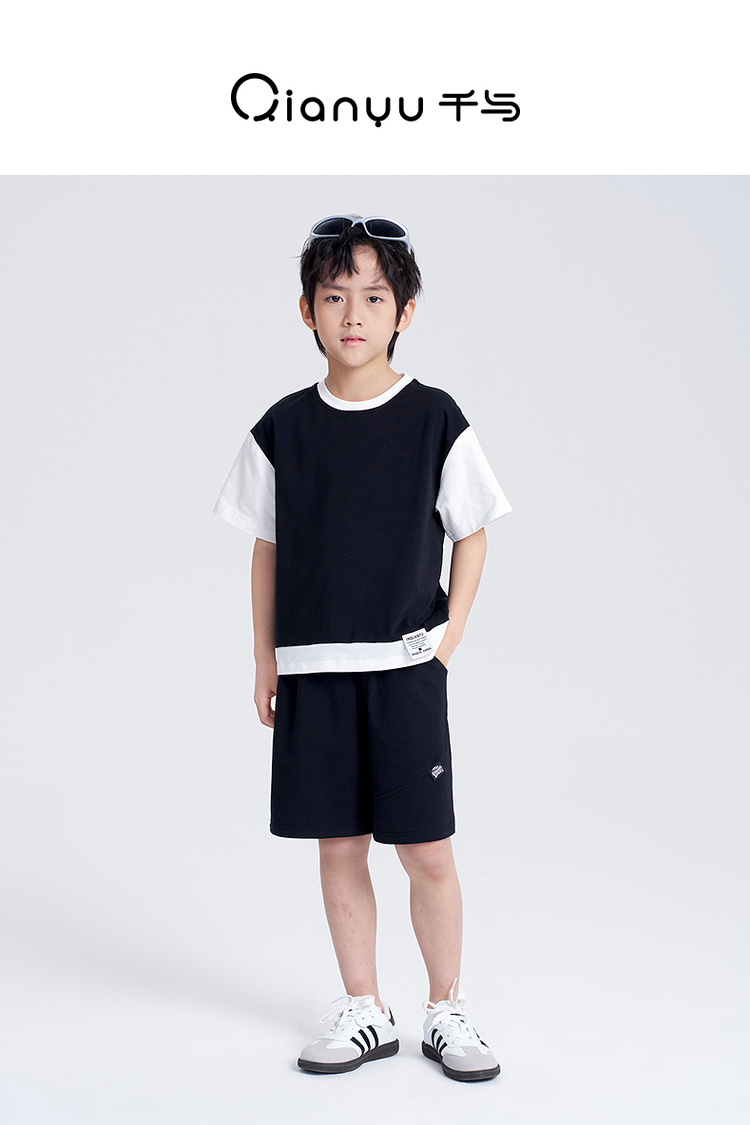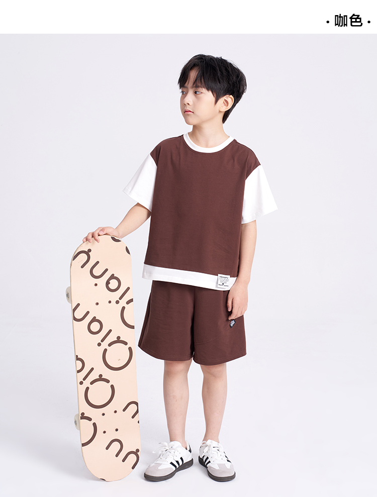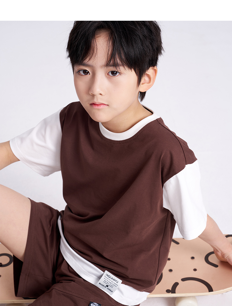 笛莎千与2025夏新款男童时尚拼接假两件男童短袖套装