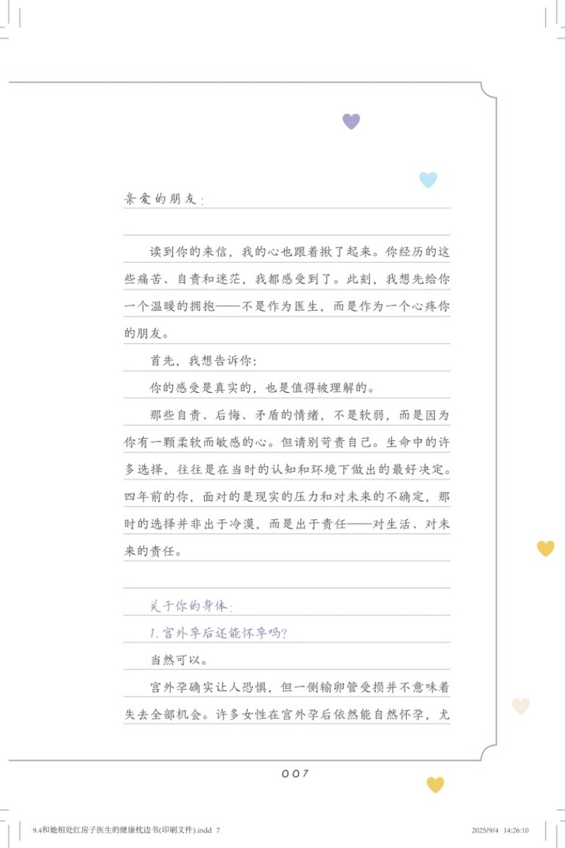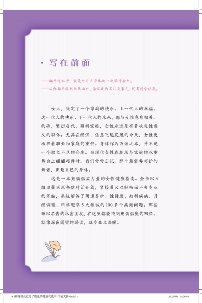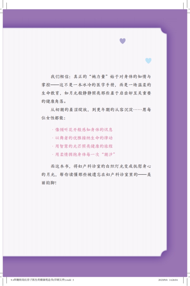 女人,决定了一个家庭的快乐。上一代人的幸福、这一代人的快乐、下一代人的未来,都与女性息息相关。的确,繁衍后代、照料家庭,女性永远是有着决定性意义的群体。尤其在经济、信息飞速发展的今天,女性更承担着职业和家庭的重任。身体作为万源之本,并不是一个取之不尽的仓库。当现代女性在职场与家庭的双重舞台上翩翩起舞时,我们常常忘记,那个最需要呵护的舞者,正是自己的身体。 这是一本流淌着温柔力量的女性健康指南。全书创新性地采用4组温馨医患书信对话,以及轻松而不失专业的笔触,系统解答了性健康、阴道养护、妇科疾病、月经调理、科学避孕等5大领域的100+个高频问题。那些难以启齿的私密困扰,在这里都能找到充满温度的回应。就像深夜闺蜜的卧谈,既专业又温暖。 我们相信:真正的“她力量”始于对身体的知情与掌控——这不是一本冰冷的医学手册,而是一场温柔的生命教育,如月光般静静照亮那些羞于启齿却至关重要的健康角落。 从初潮的羞涩绽放,到更年期的从容沉淀……愿每位女性都能: ·像倾听花开般感知身体的讯息 ·以舞者的优雅接纳生命的律动 ·用智慧的光芒照亮健康的旅程 ·用柔情拥抱身体每一次“潮汐” 而这本书,将妇产科诊室的白炽灯光变成抚慰身心的月光,帮你读懂那些被遗忘在妇产科诊室里的——美丽韵脚!