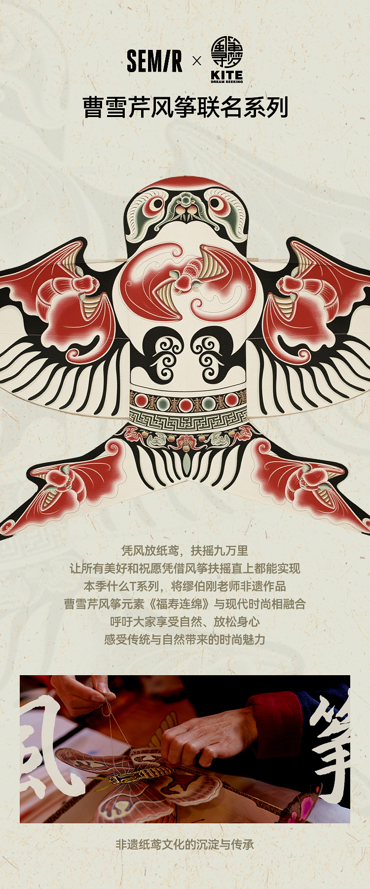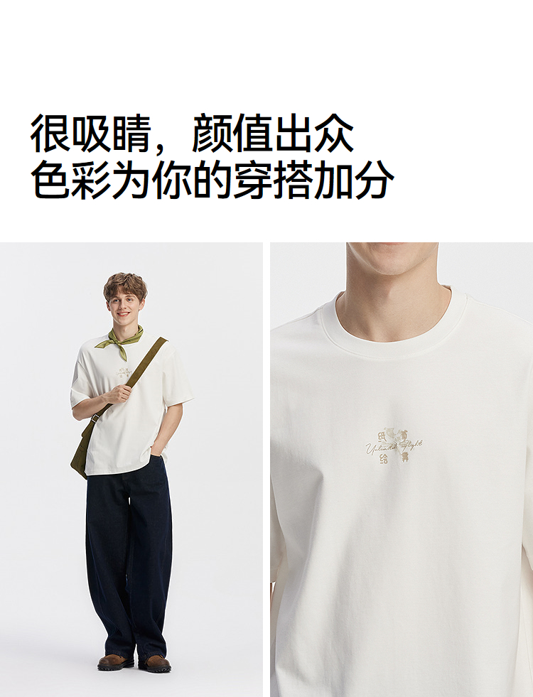 [商场同款]森马曹雪芹风筝联名短袖T恤男2025秋新款国潮印花刺绣