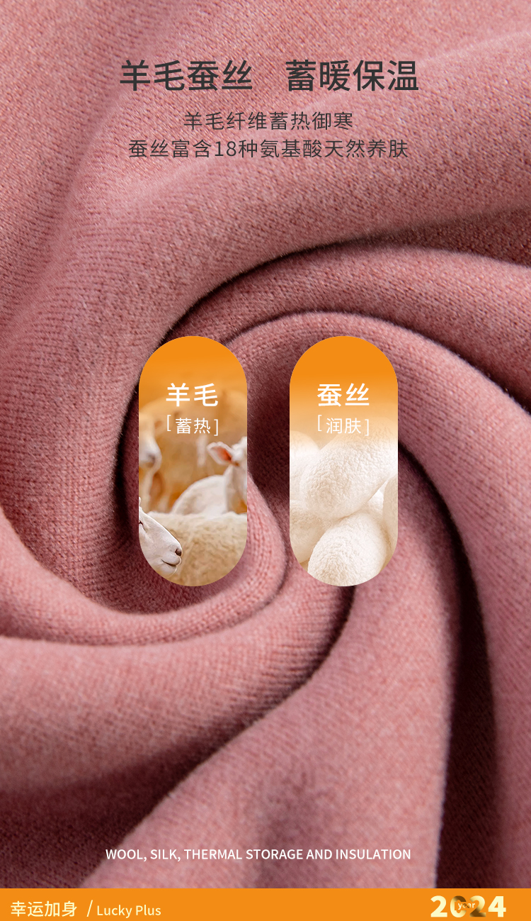红金羊毛蚕丝保暖内衣秋冬季加绒加厚男女款保暖套装625626