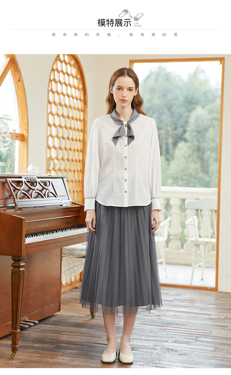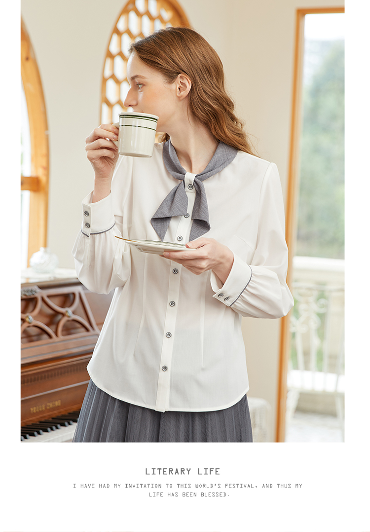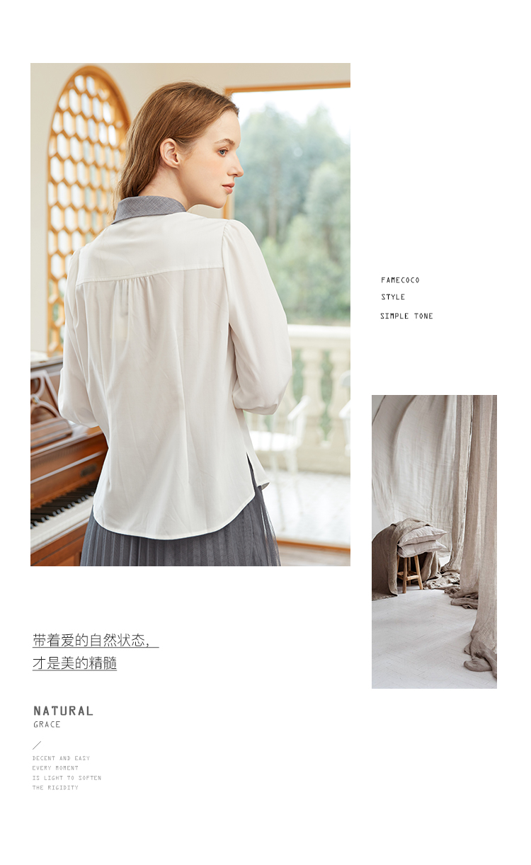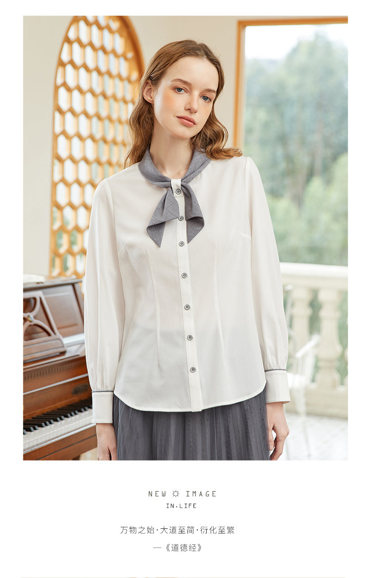 famecoco范可儿撞色飘带领衬衫女春季设计感时尚别致上衣FAB1BH008