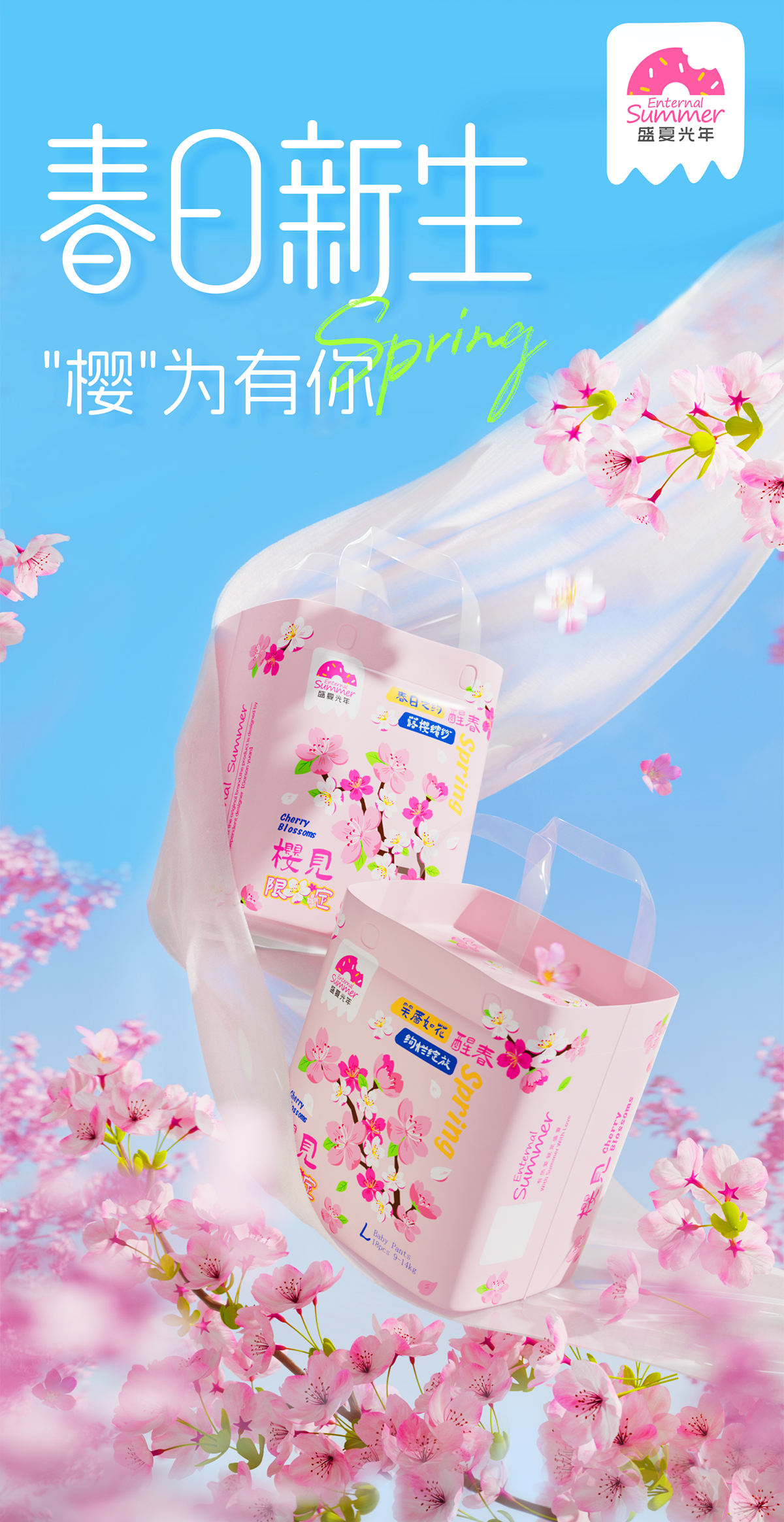 盛夏光年 新款樱花系列 柔软限定花苞裸感透气轻盈拉拉裤