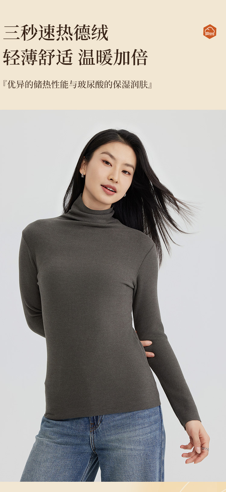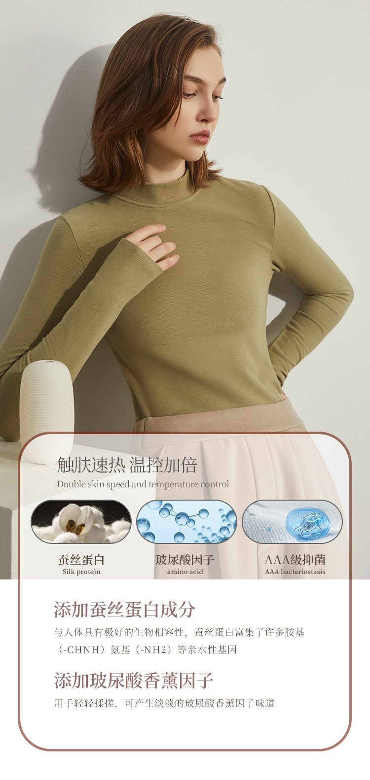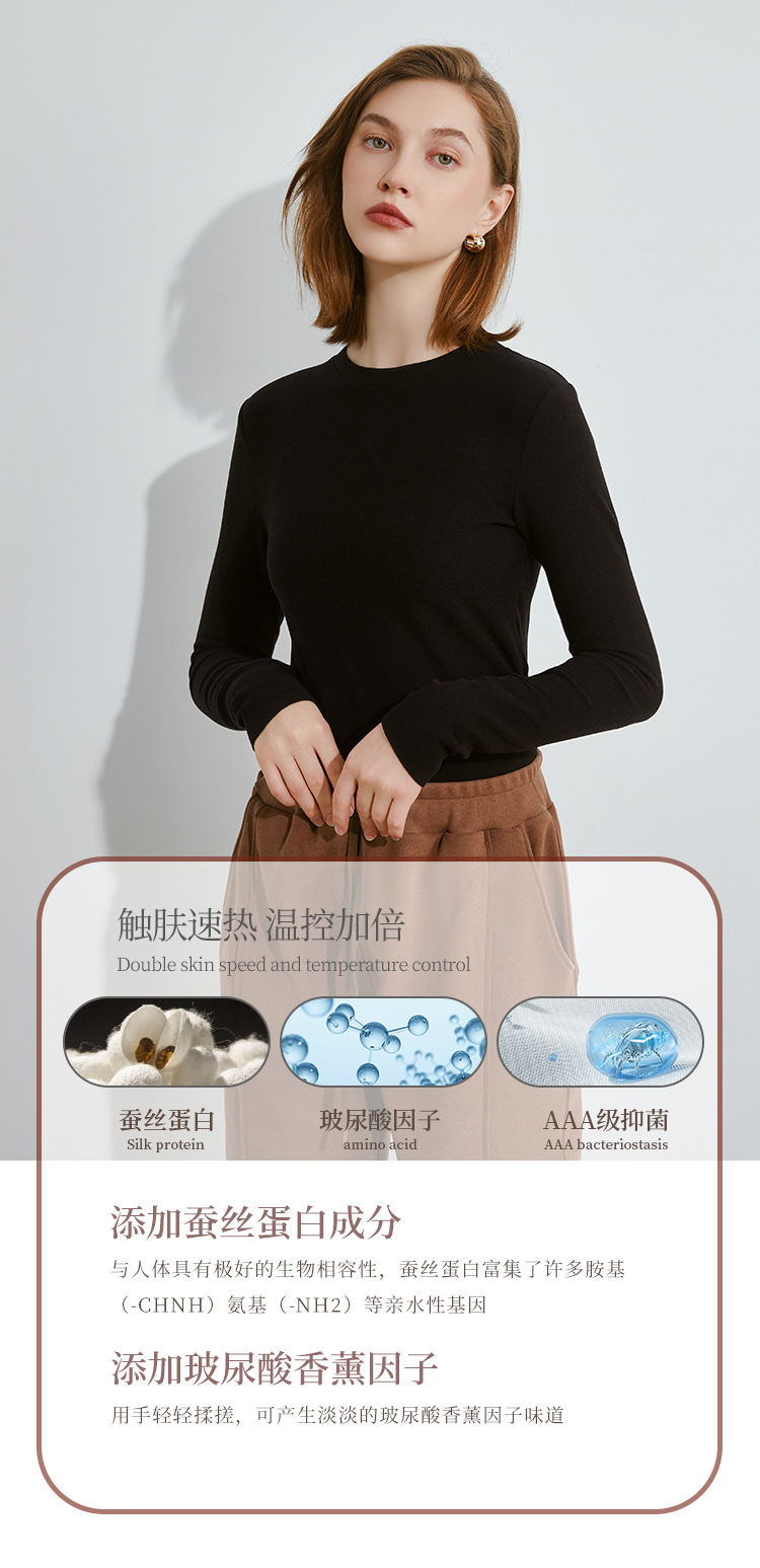 【128/2件】【真正的德绒自发热纤维】【品牌高品质】秋冬玻尿酸蚕丝保湿润肤打底衫磨绒长袖Tt恤