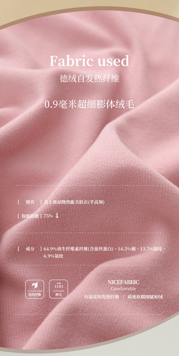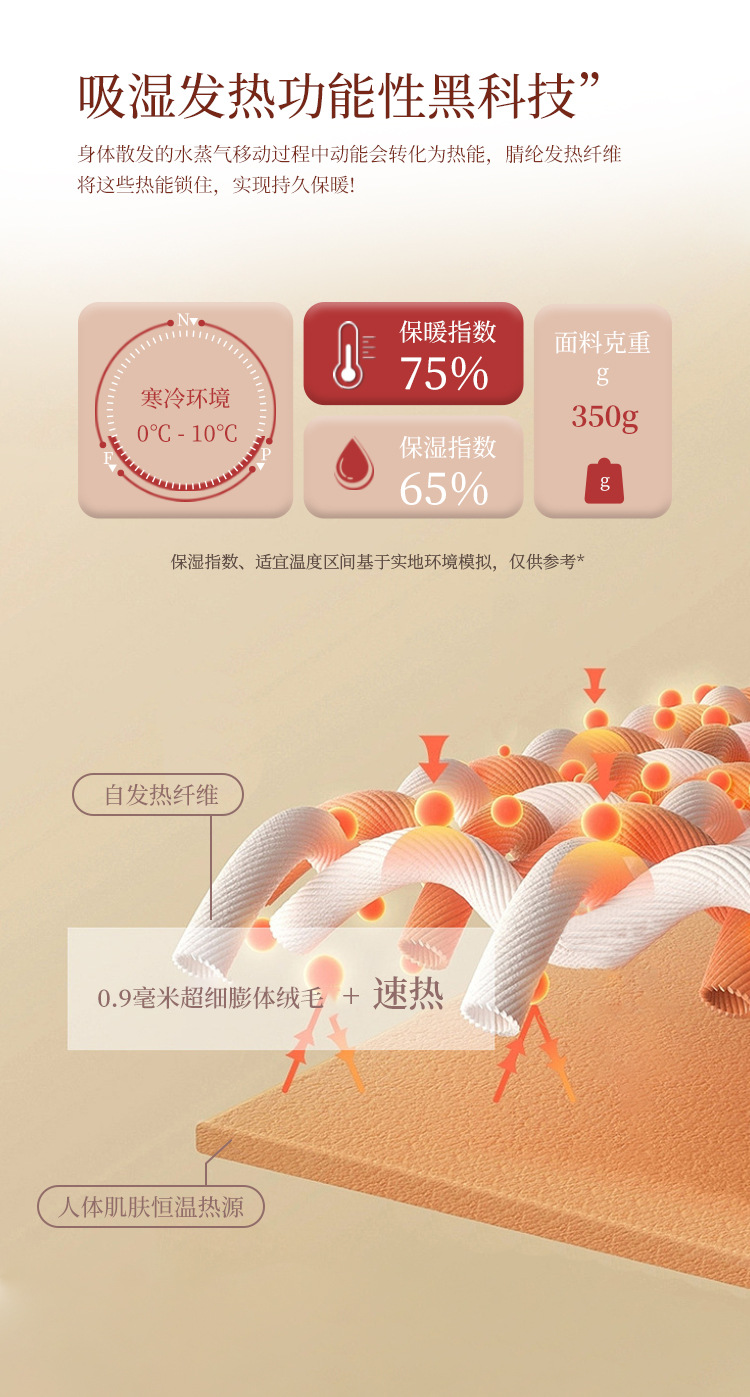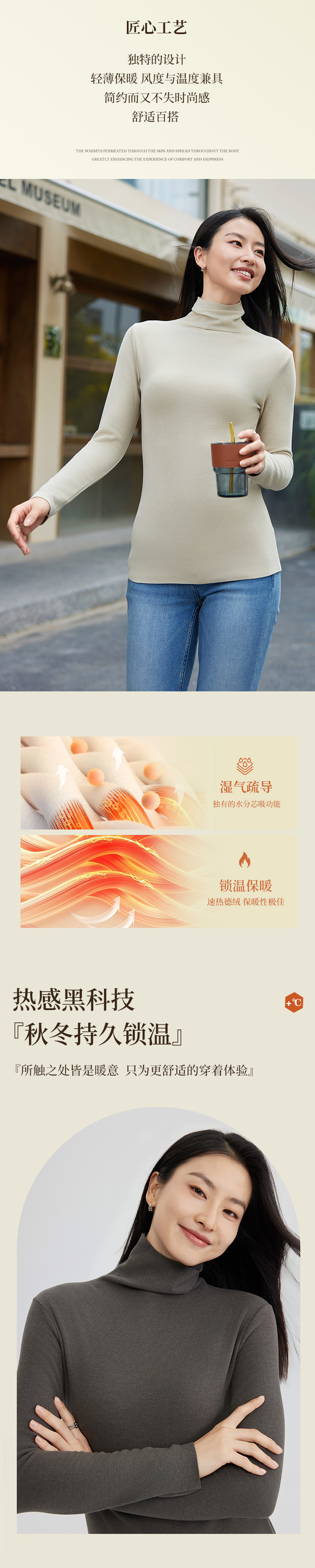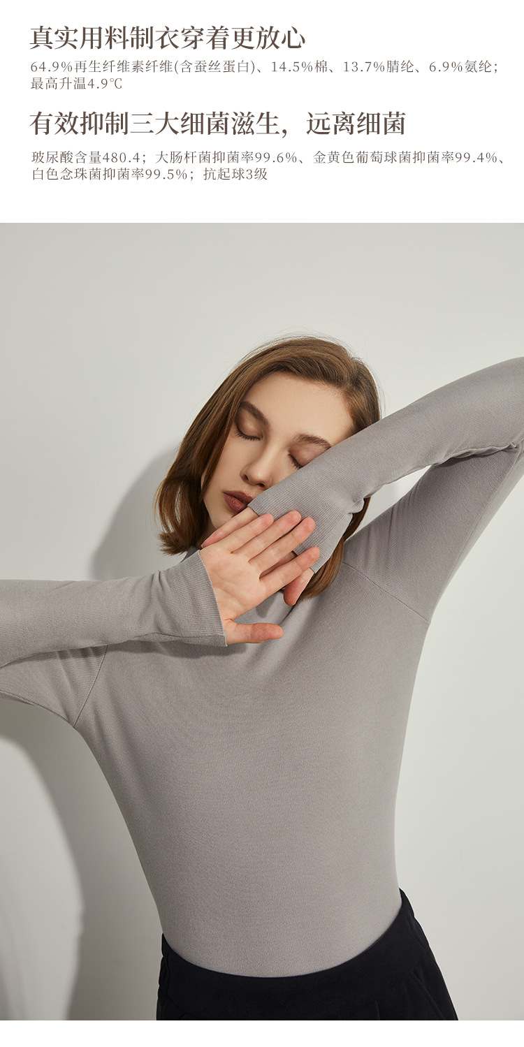 【128/2件】【真正的德绒自发热纤维】【品牌高品质】秋冬玻尿酸蚕丝保湿润肤打底衫磨绒长袖Tt恤