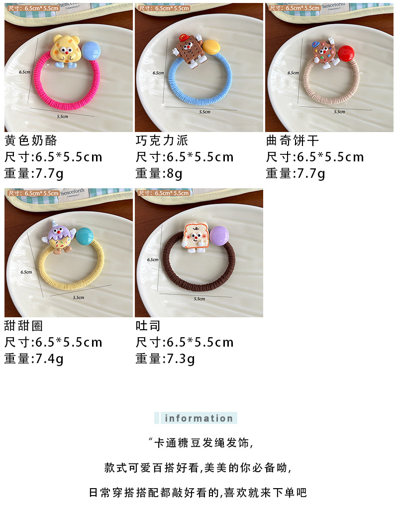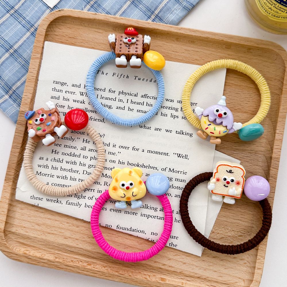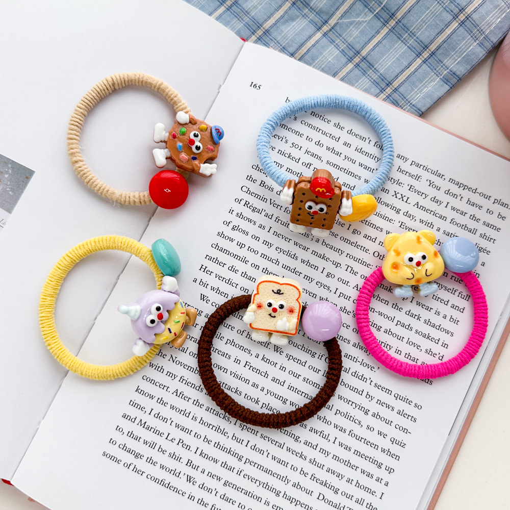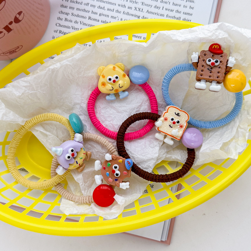 超值五件套【敲可爱!儿童卡通发绳发饰】卡通创意奶酪土司曲奇食玩儿童发绳可爱搞怪女生扎马尾丸子头头绳彩色,款式可爱百搭好看,美美的你必备呦。ry