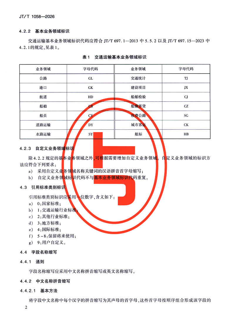 书名:交通运输信息系统 数据库字段命名及属性定义(JT/T 1058—2026)