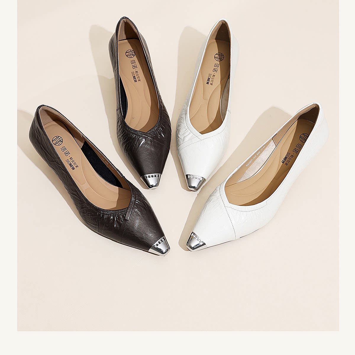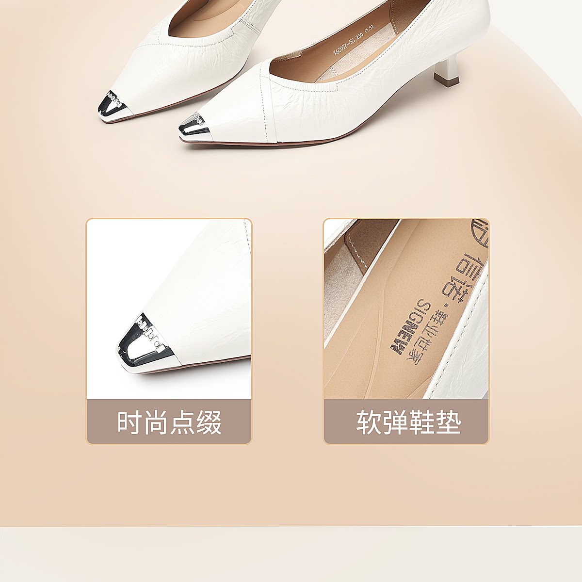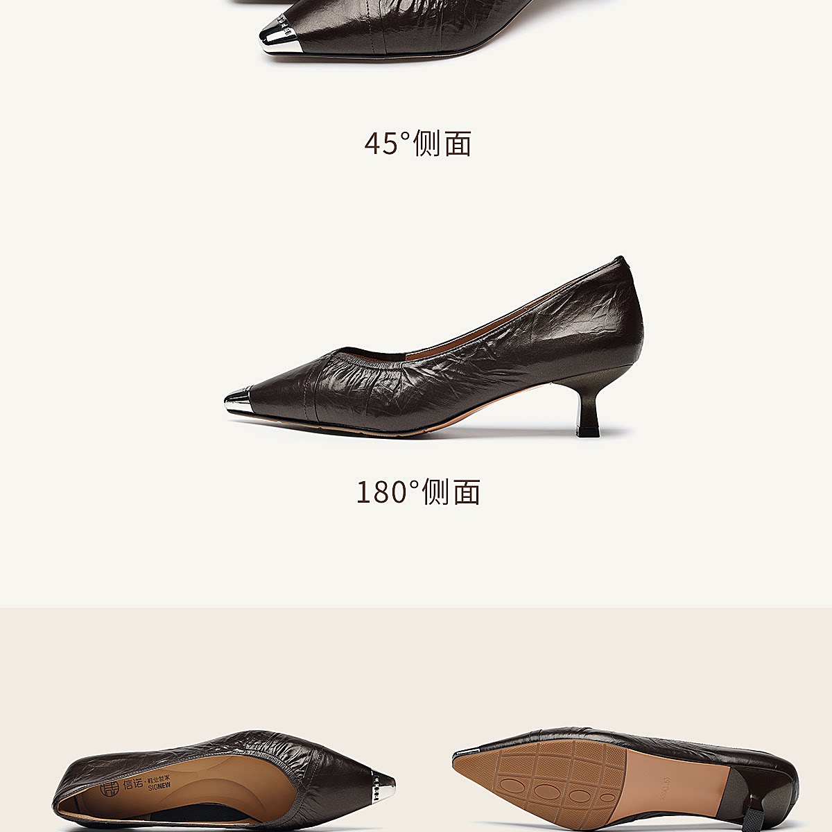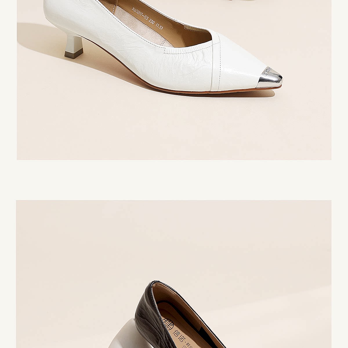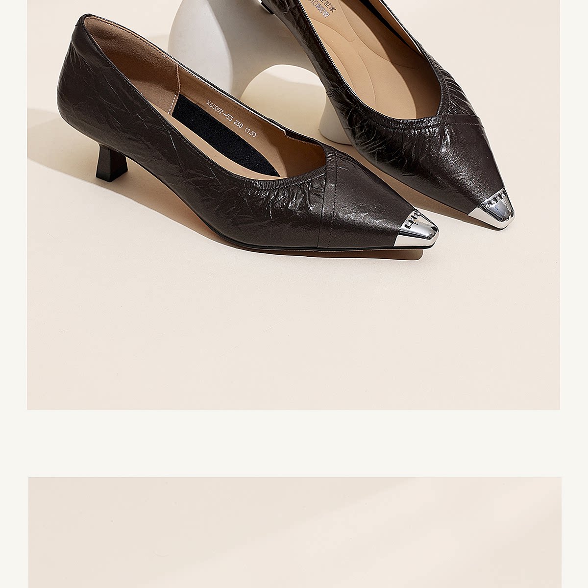 轻熟风金属小方头浅口单鞋女中跟漆皮尖头通勤鞋不累脚X6C097-53