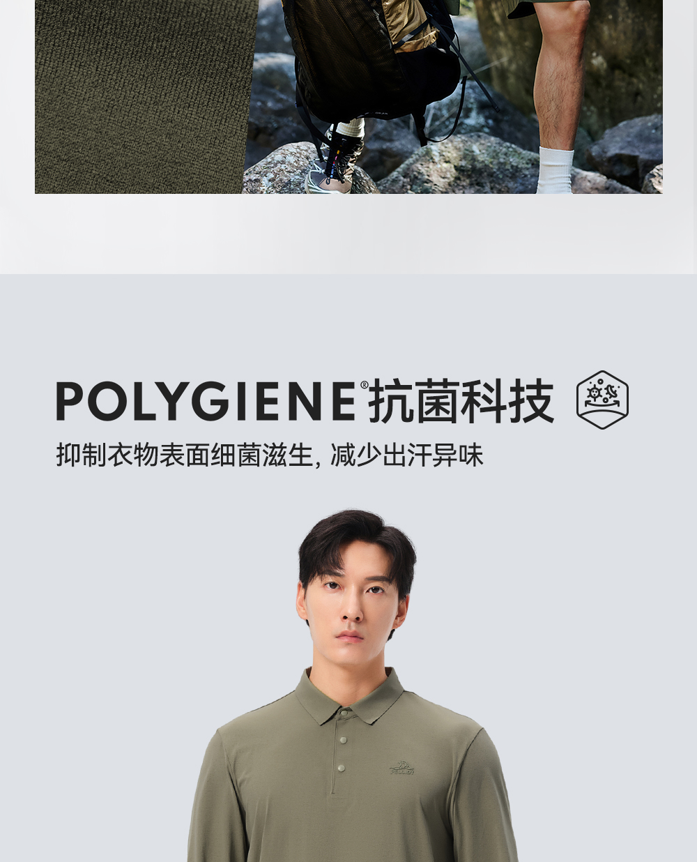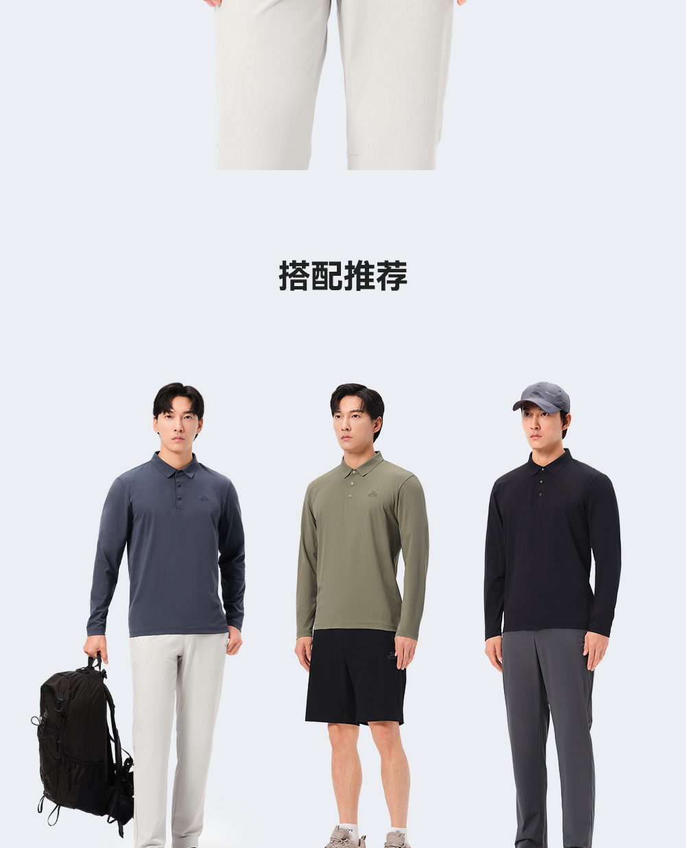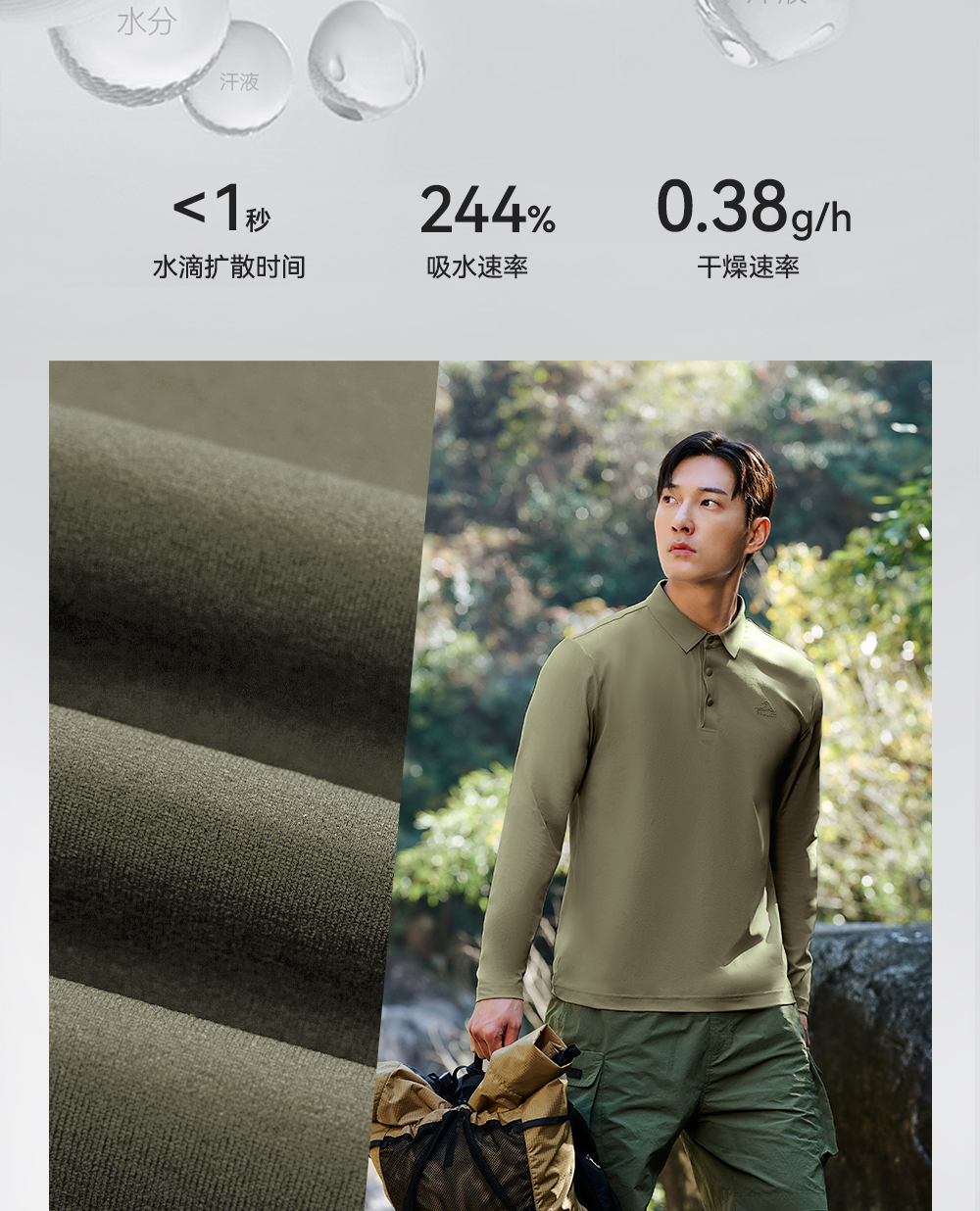 伯希和户外速干T恤男士秋季轻薄运动长袖休闲上衣透气翻领POLO衫