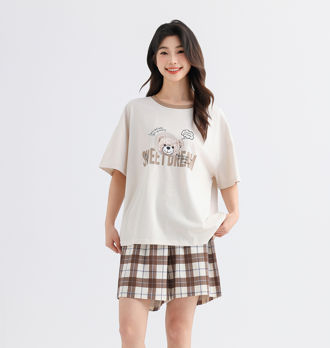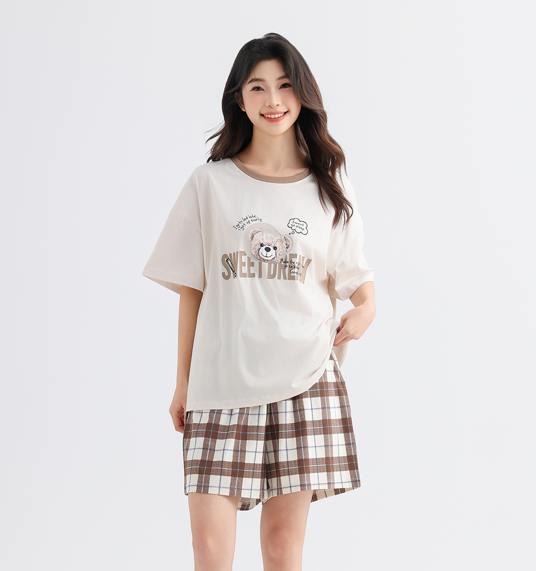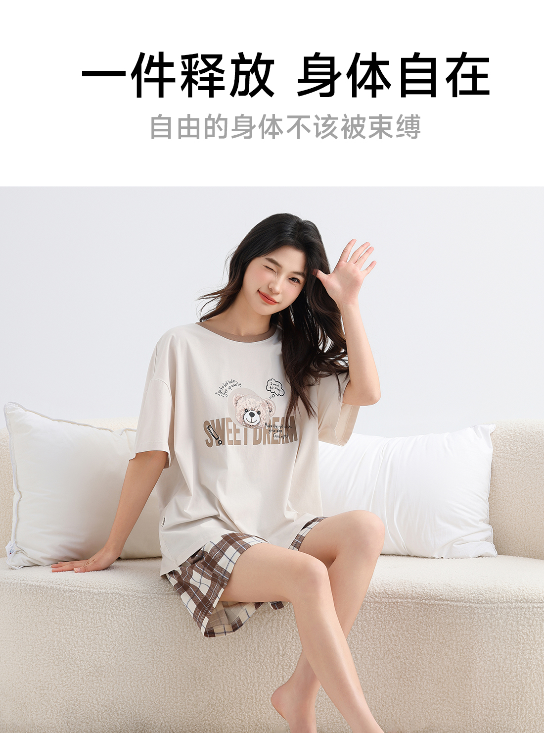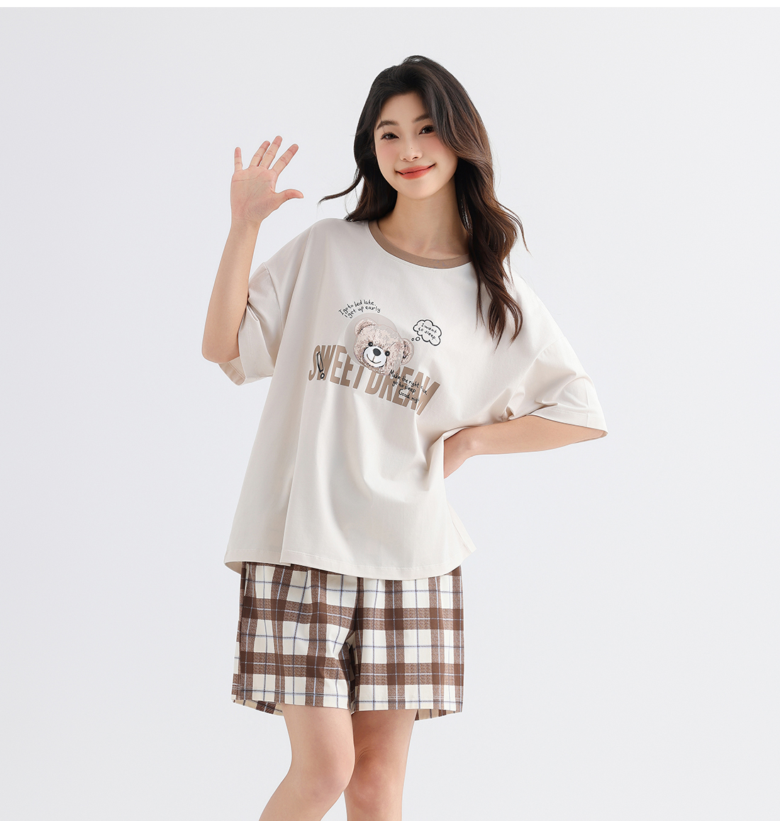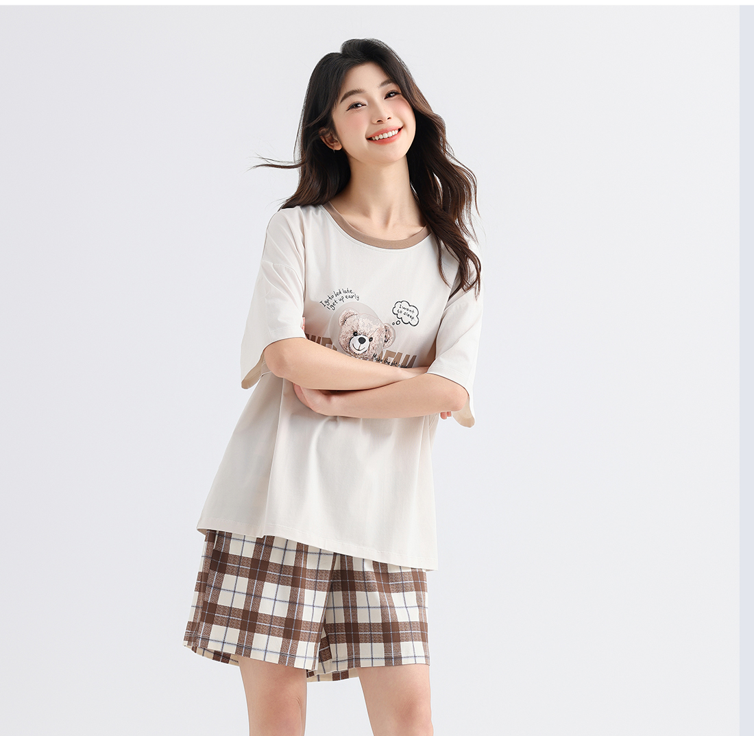 美季美优女士猫咪短袖长裤套装