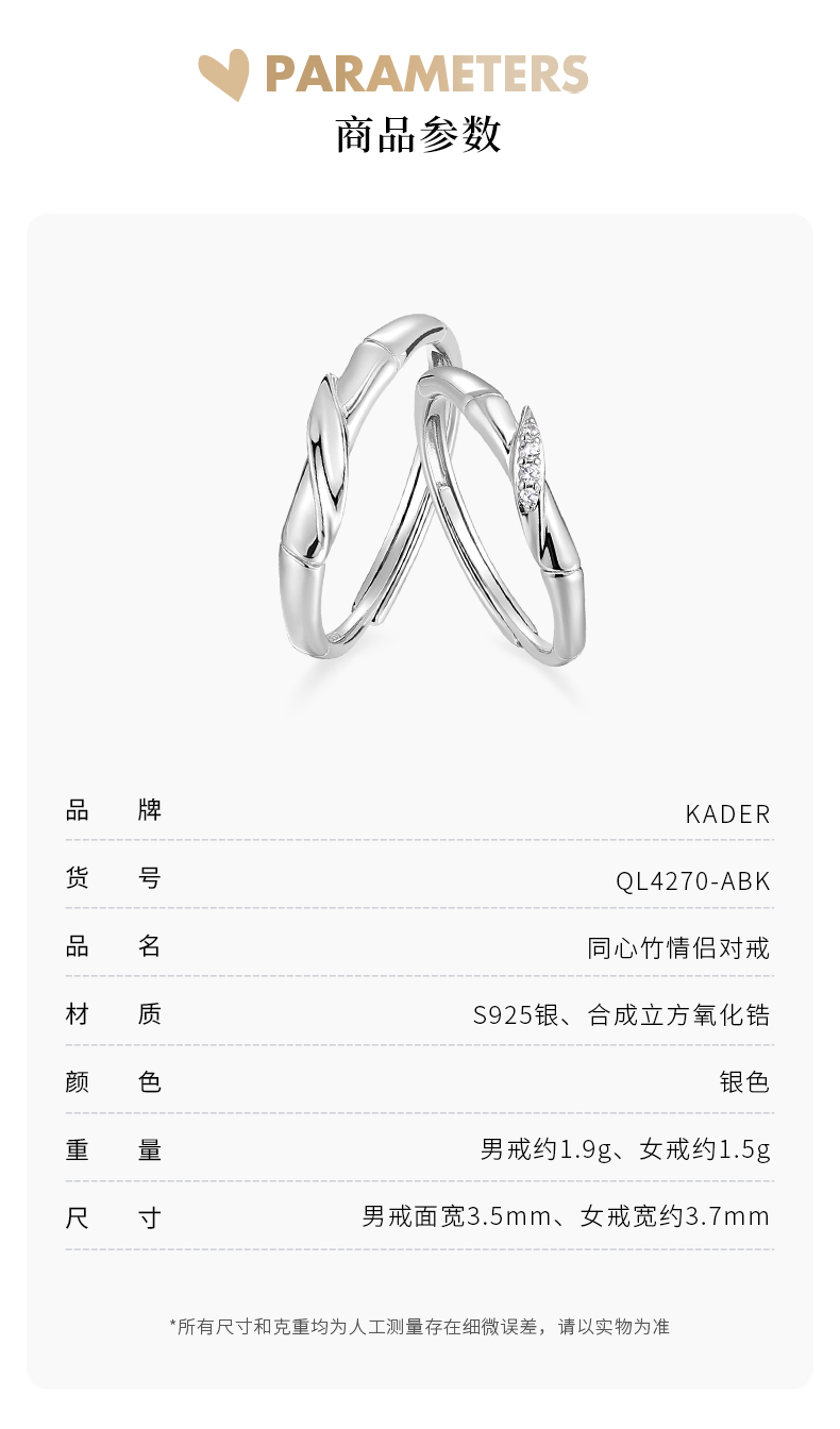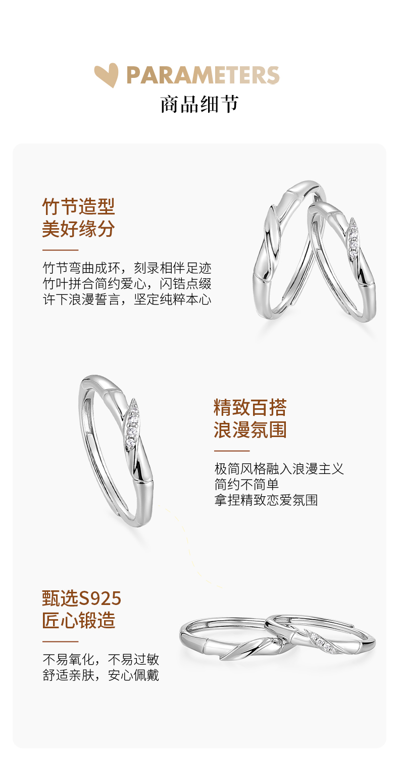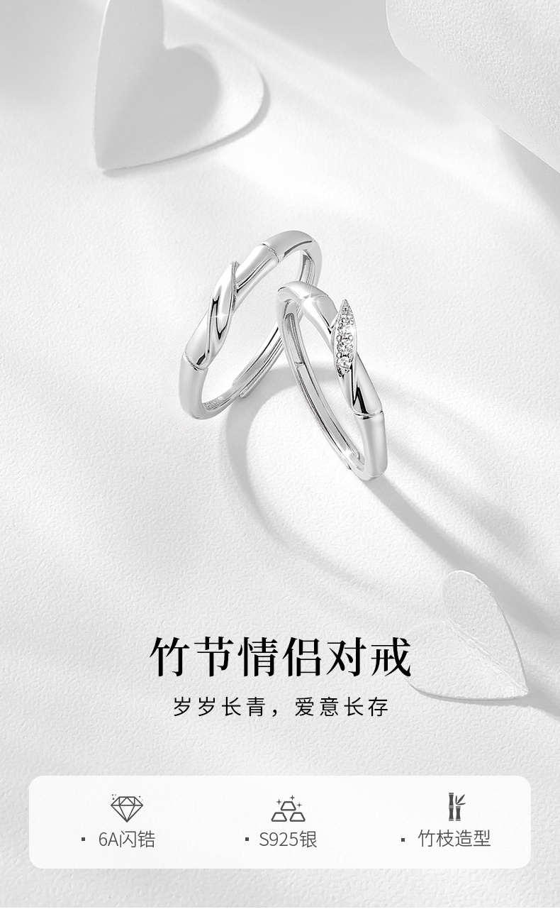 卡蒂罗KADER 竹节情侣对戒 925银新中式国风节节高升素圈开口可调节一对#好运 小众轻奢钟爱久久百搭设计