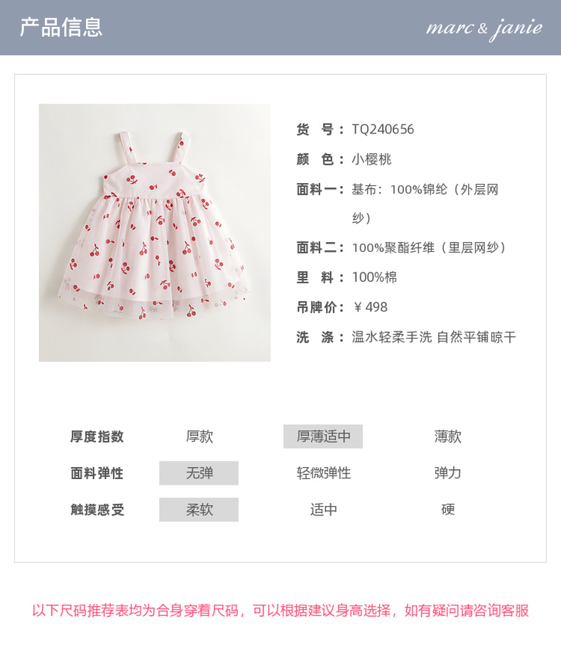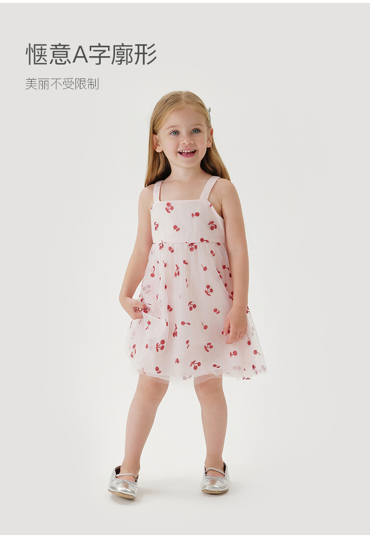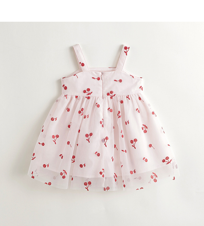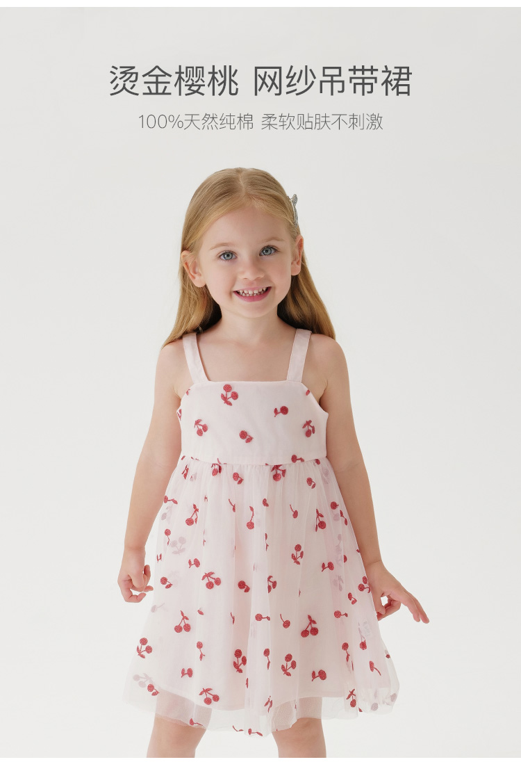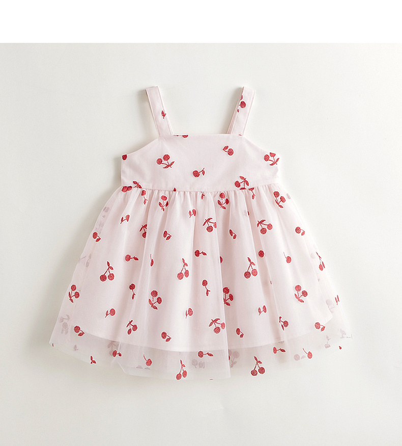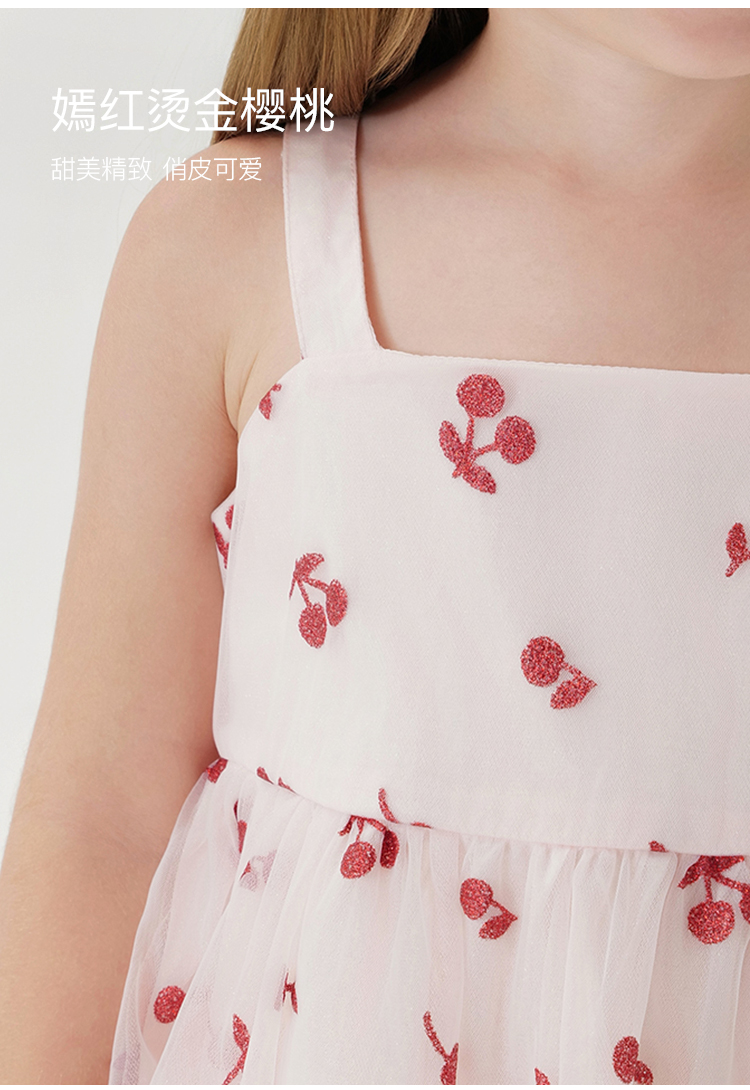 马克珍妮女童趣味樱桃满印吊带连衣裙网纱裙夏装新款裙子240656