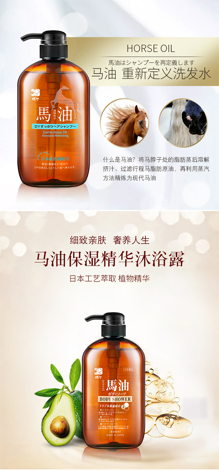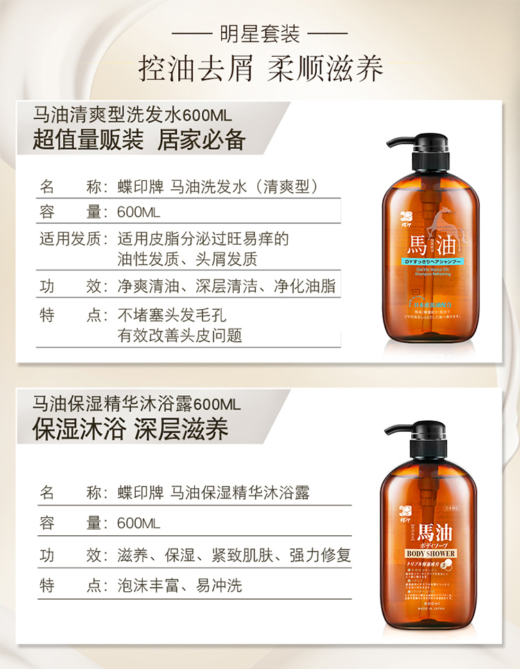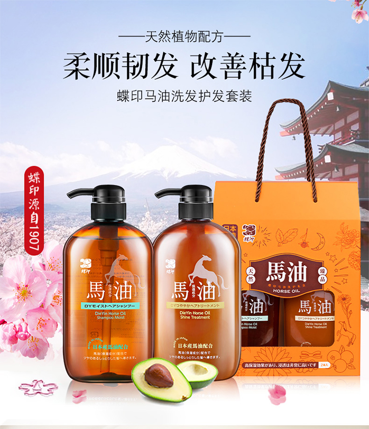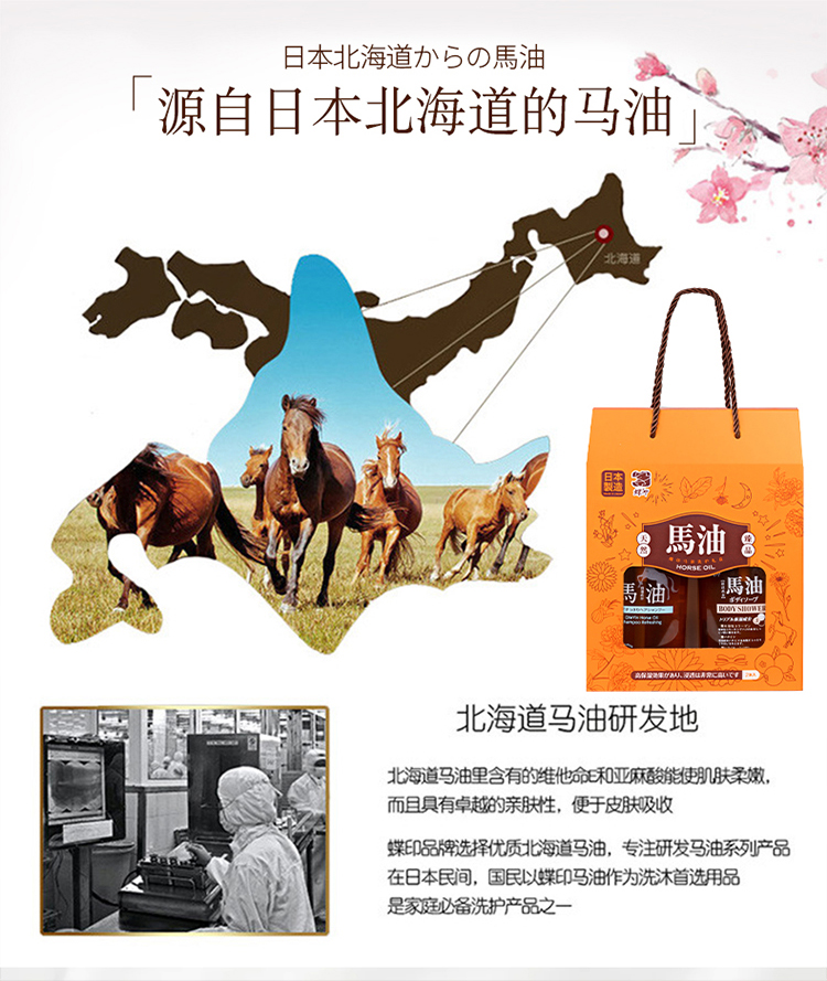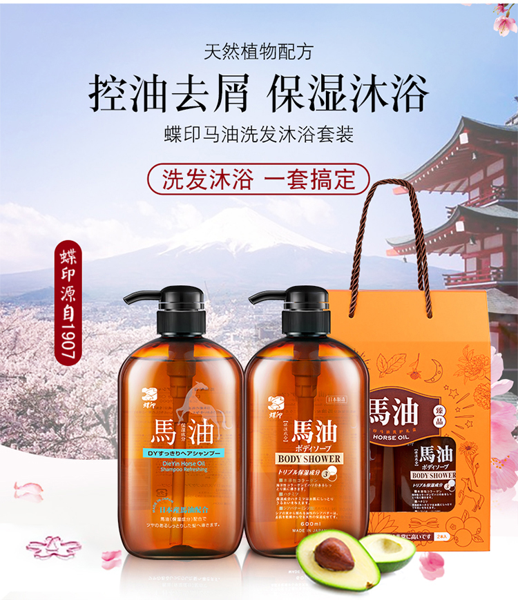 【中欧班列精选】 hm日本蝶印马油洗护沐浴套装系列 礼盒套装2瓶 多种搭配多选择600ml 正品保证