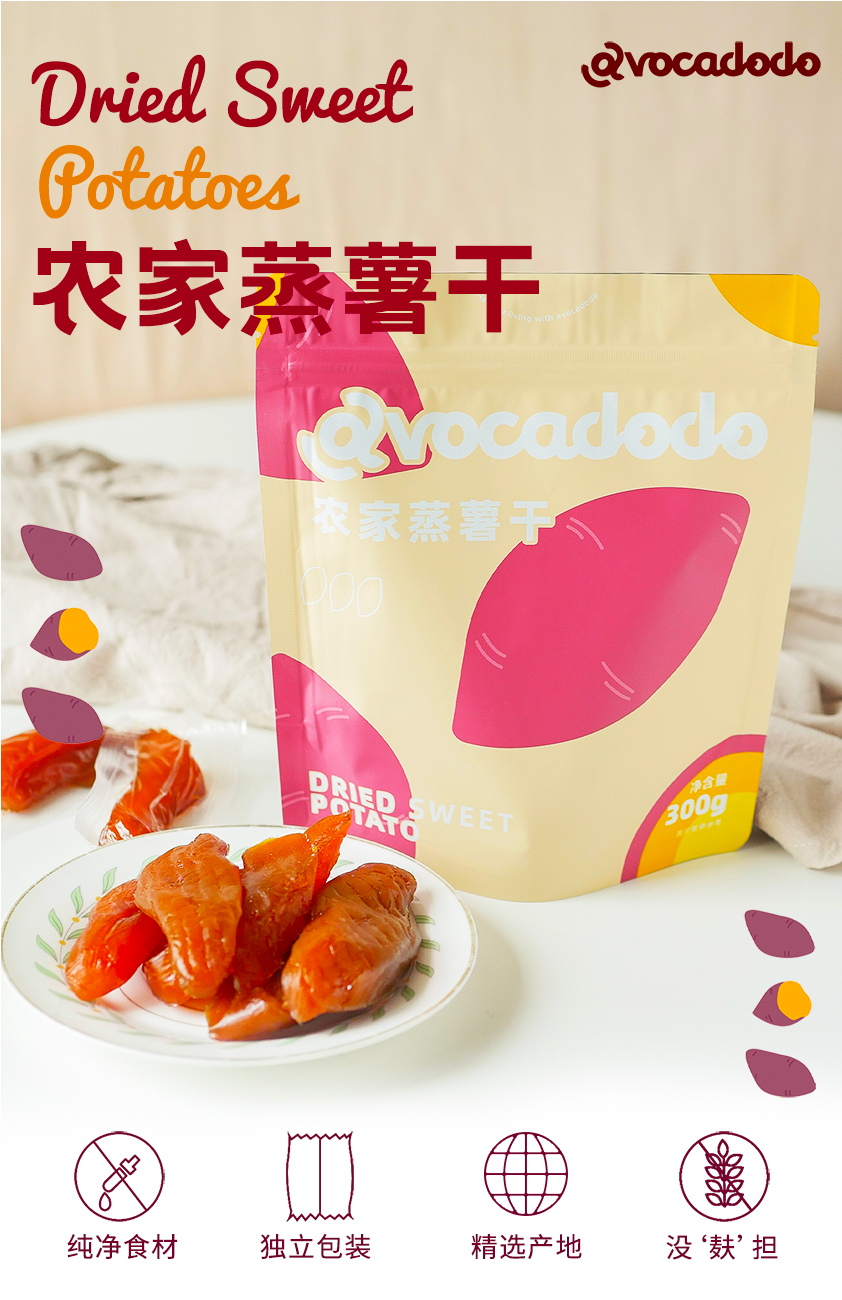 Avocadodo倒蒸红薯干蜜薯软糯独立包装300g儿童零食牛油果果桥本