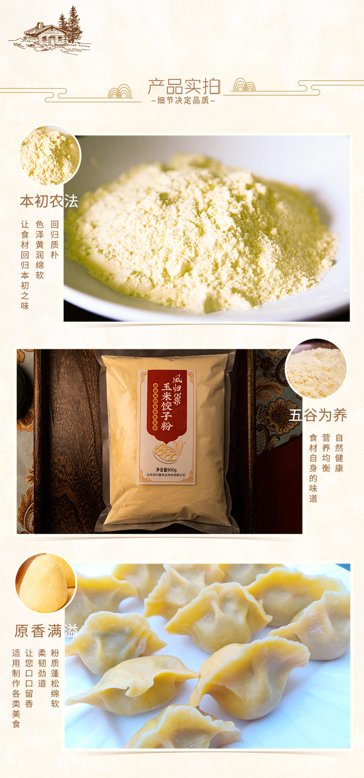凤归巢玉米饺子粉原料优选凤归巢有机玉米,不添加任何食品胶、色素、防腐剂、抗氧化剂,保留和丰富了玉米原有的营养成分。