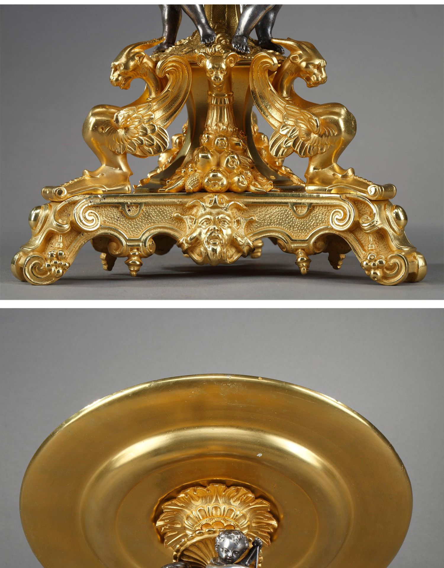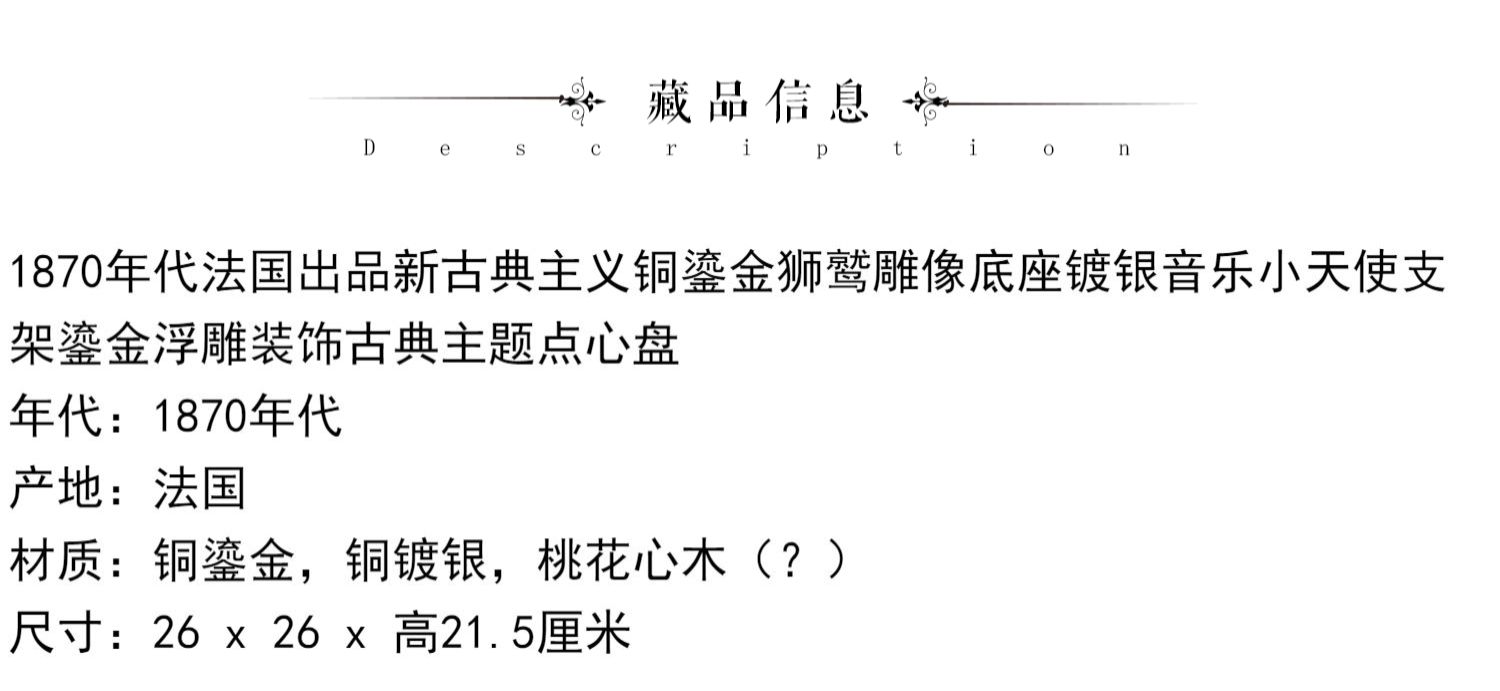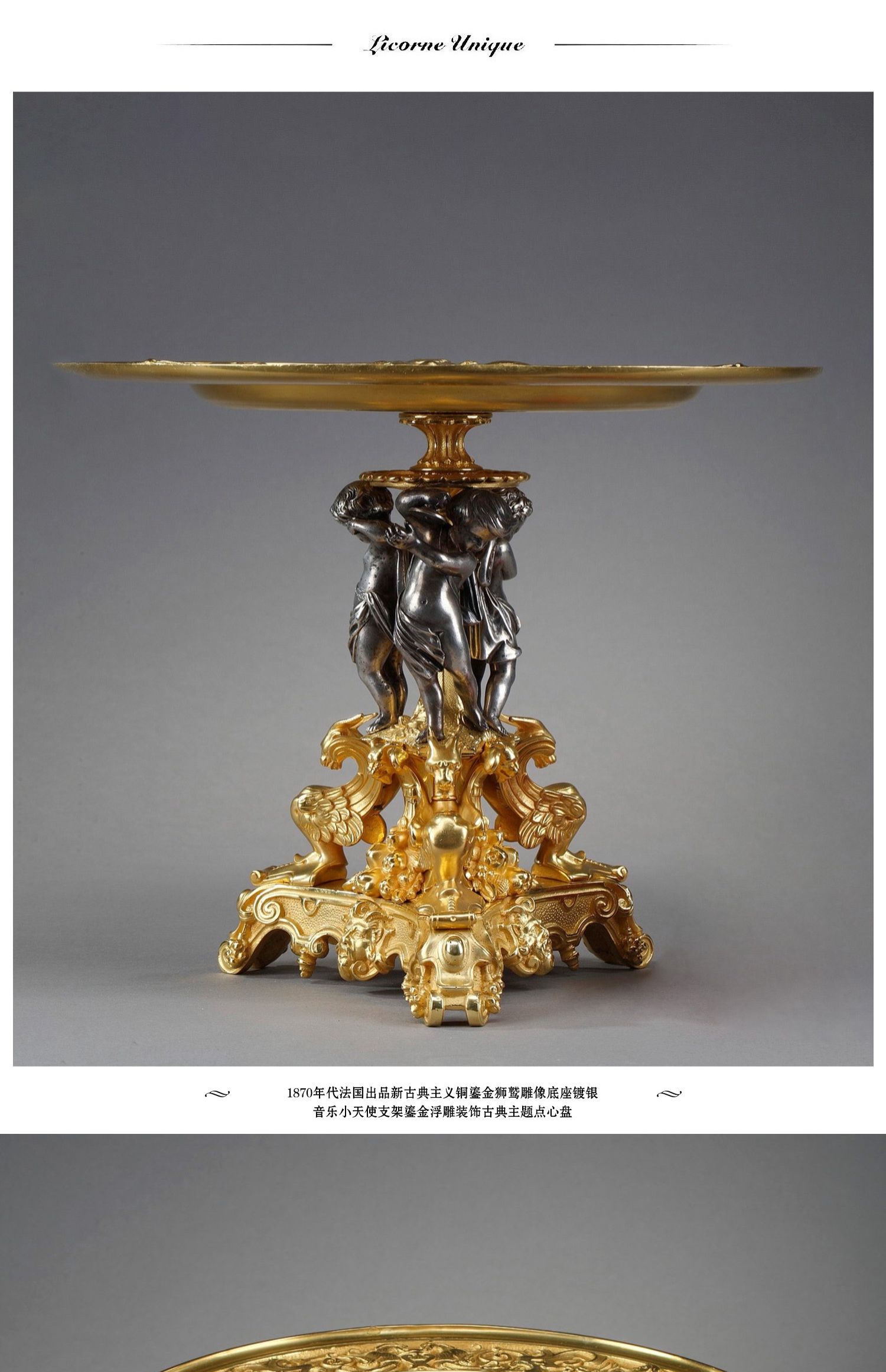 独角鹿西洋古董摆件法国铜鎏金浮雕狮鹫镀银音乐小天使古典点心盘
