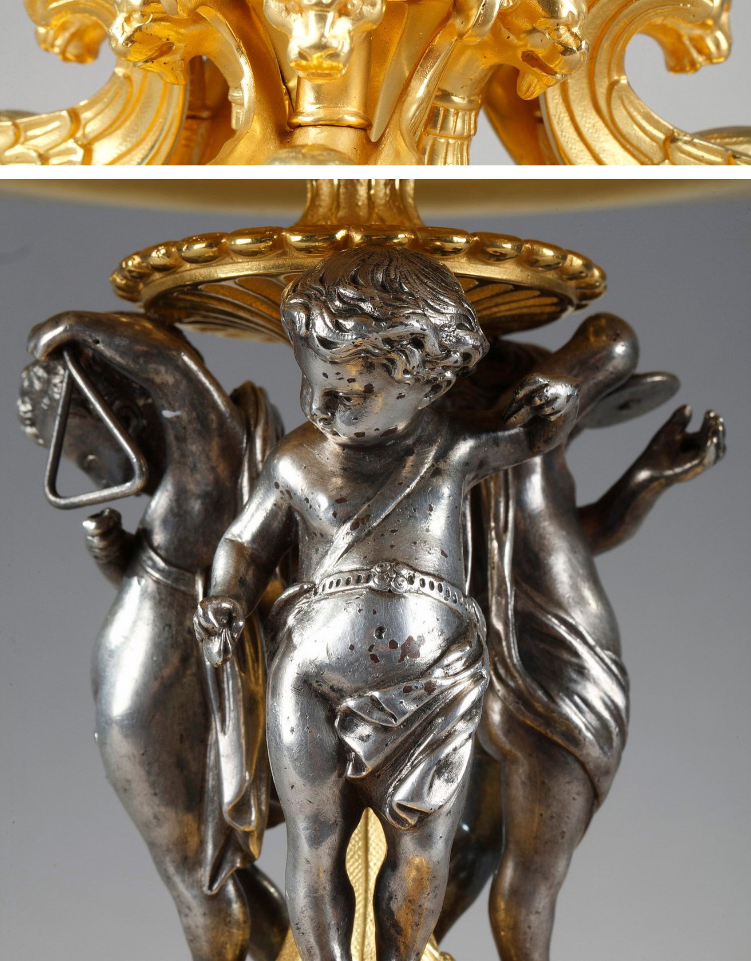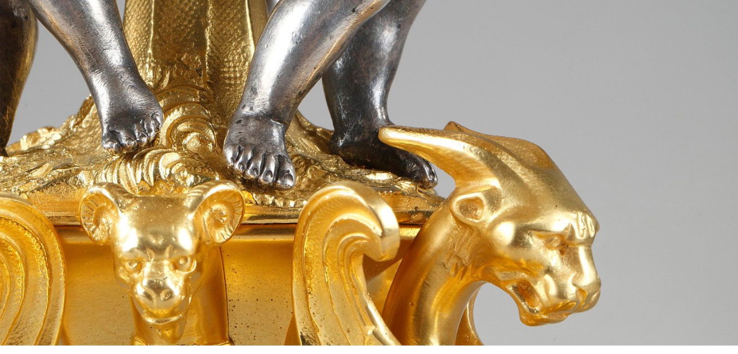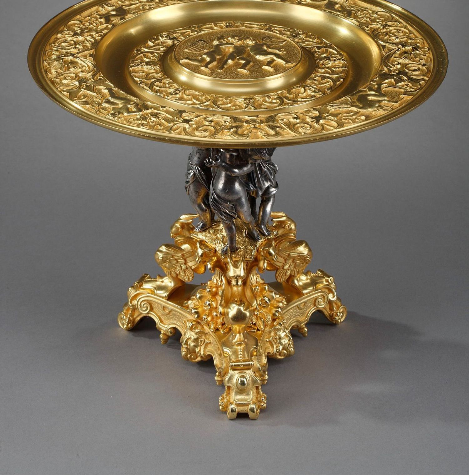 独角鹿西洋古董摆件法国铜鎏金浮雕狮鹫镀银音乐小天使古典点心盘