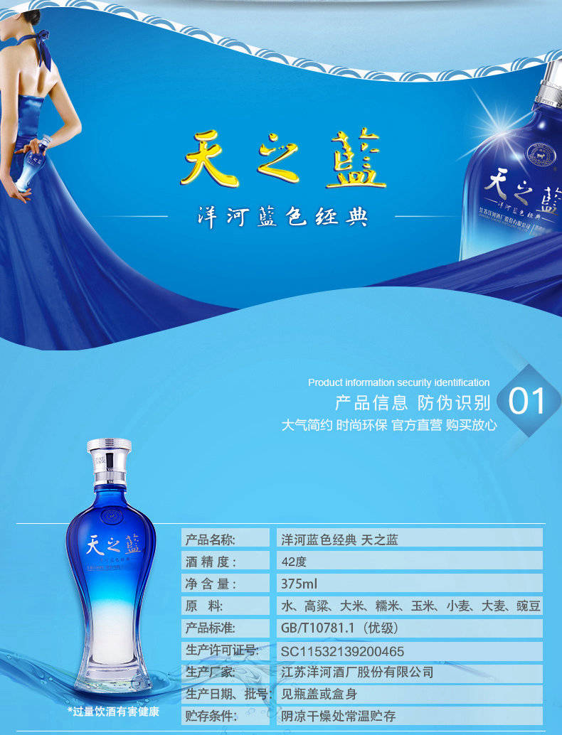[洋河天之蓝]42度-浓香型白酒-375ml-多规格可选