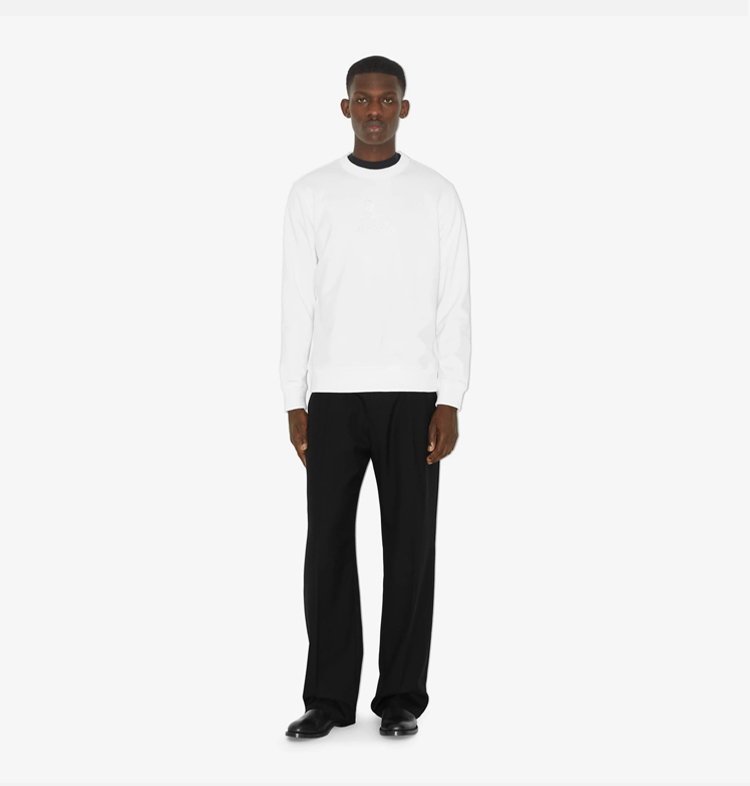 BURBERRY 巴宝莉 男士马术骑士刺绣徽标棉质长袖卫衣 白色 8072744 A1464