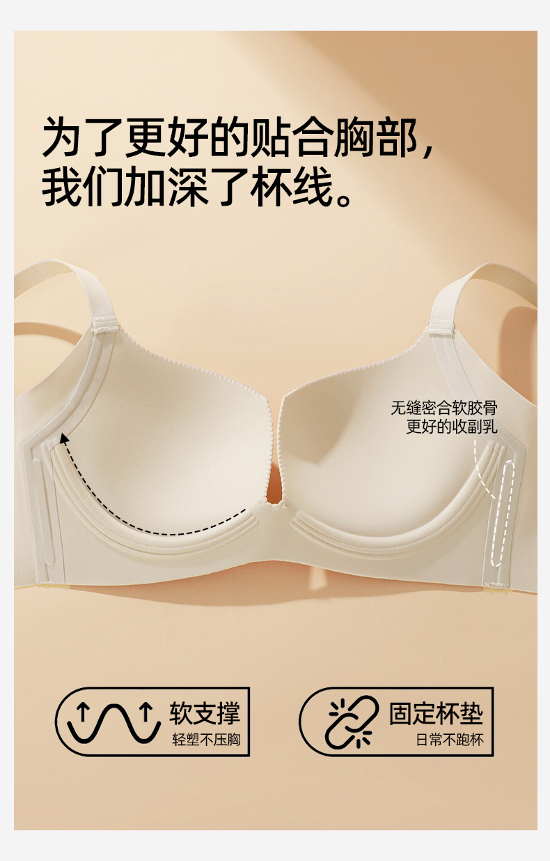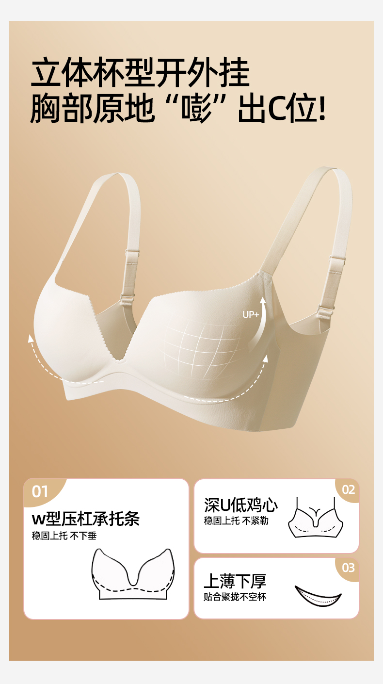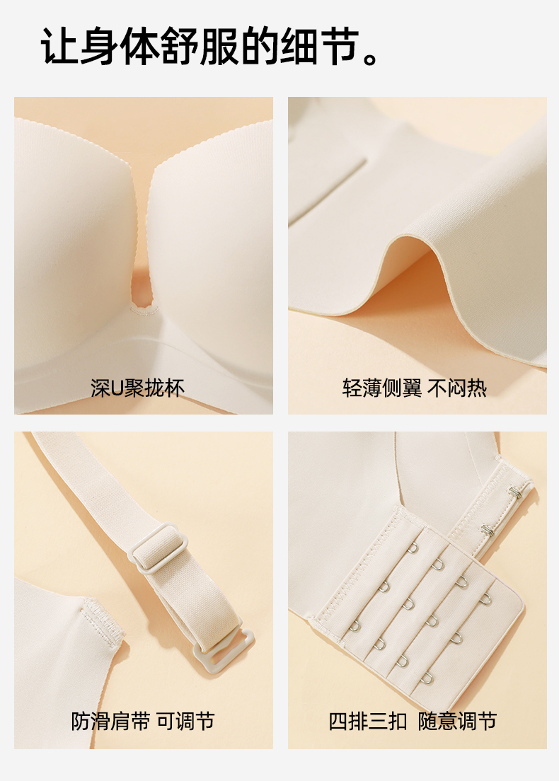 熳洁儿 新品粉底液隐形内衣光面无痕性感深U小胸聚拢文胸20761537