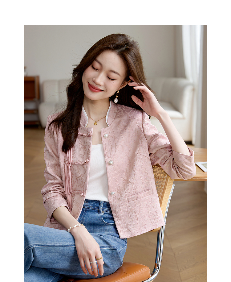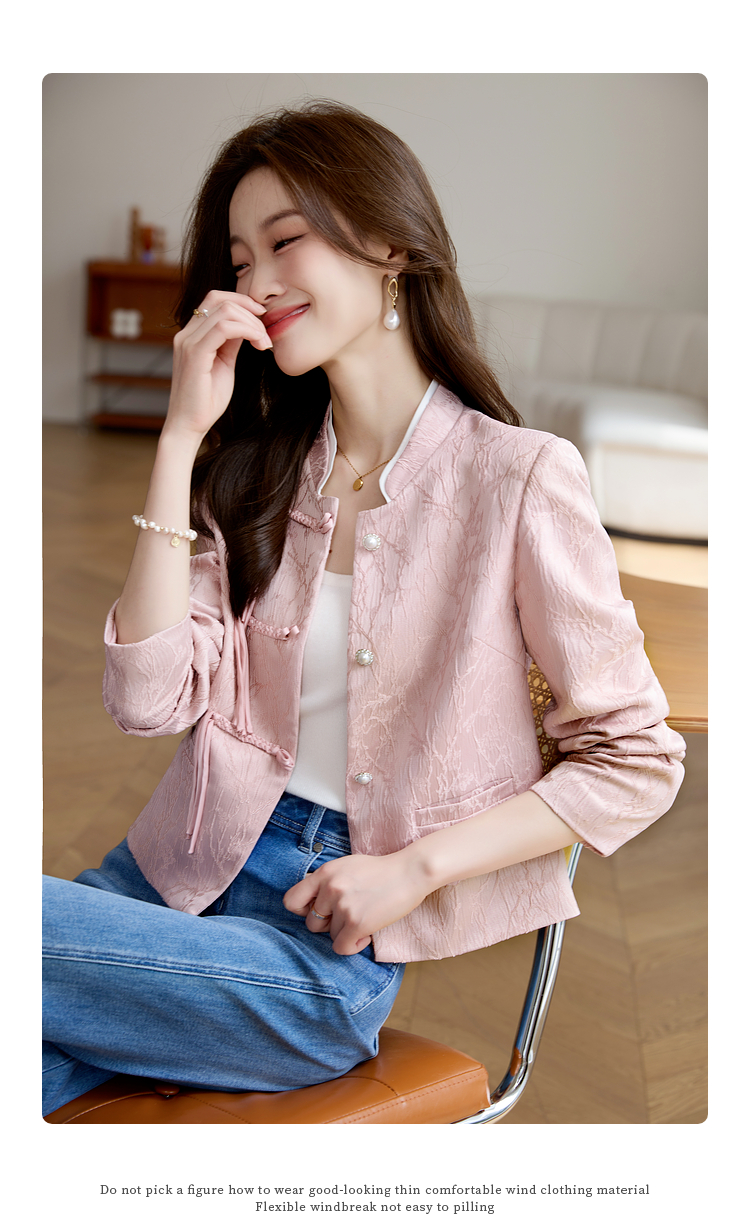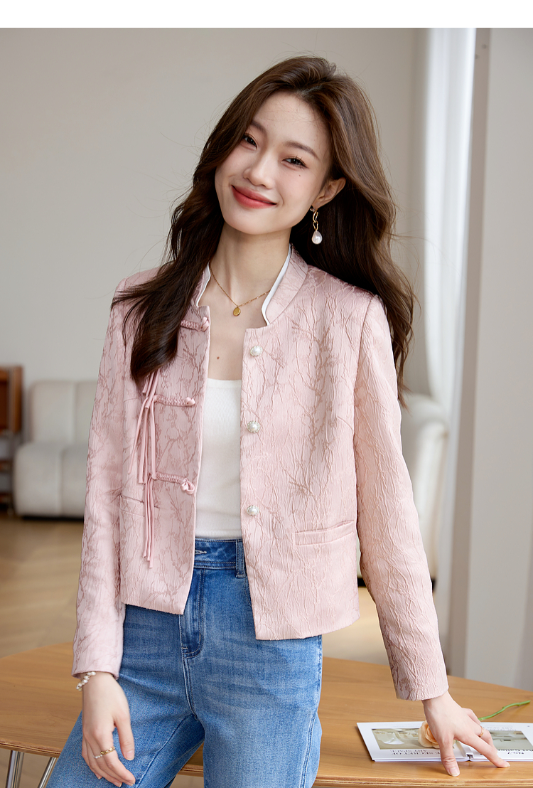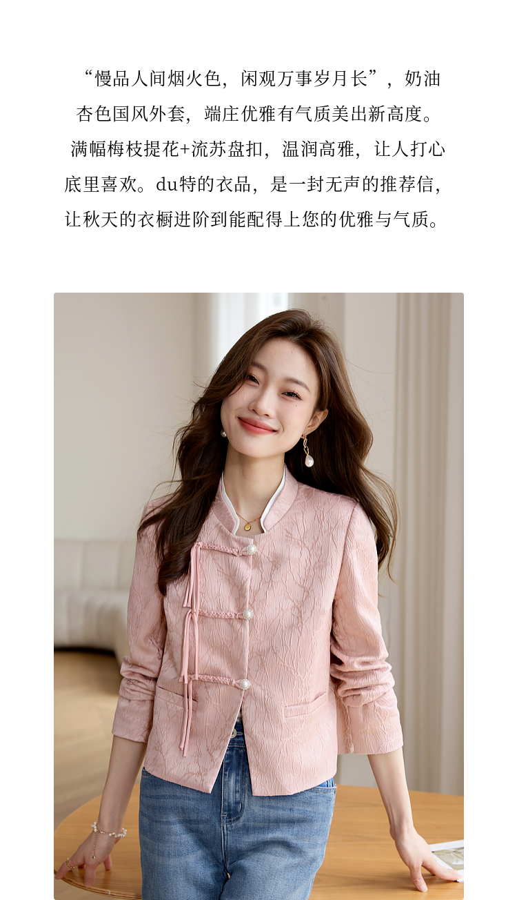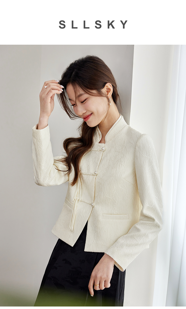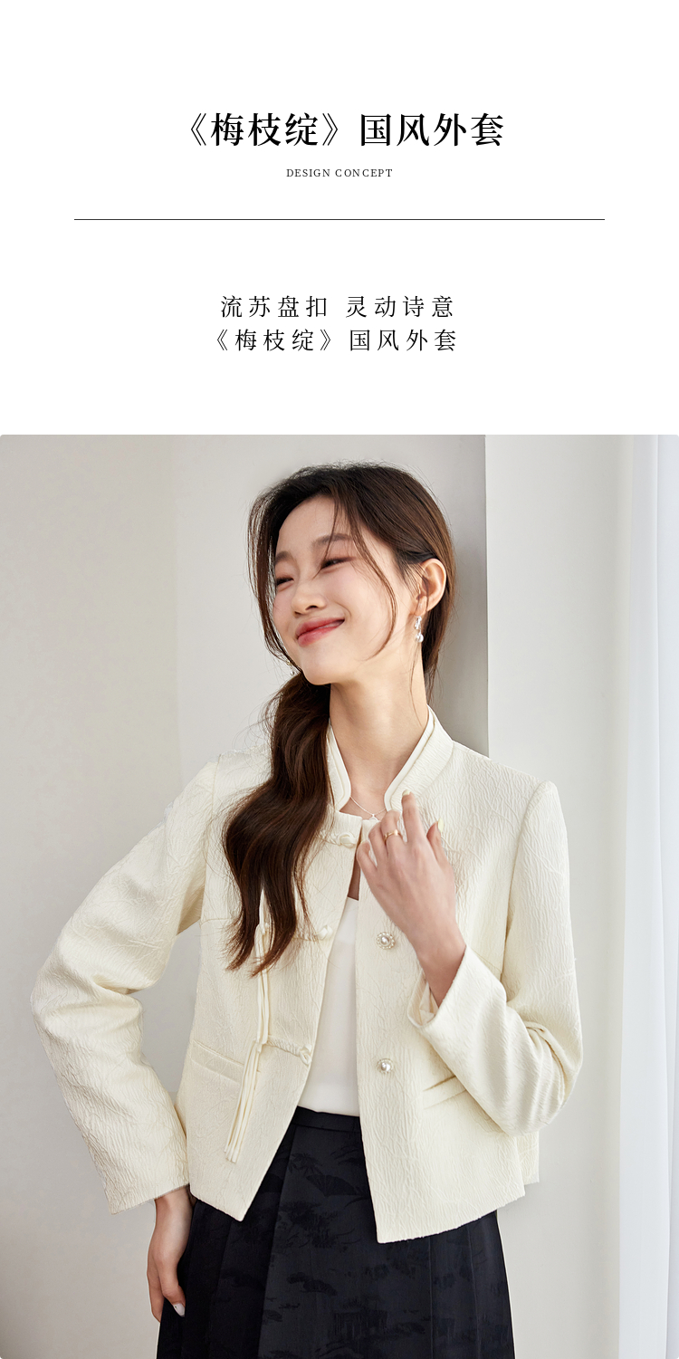 【129选3件,不退换】熙世界新中式国风白色外套短款小个子春秋流苏盘扣提花立领上衣