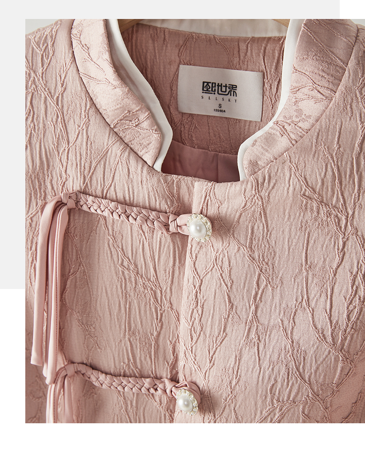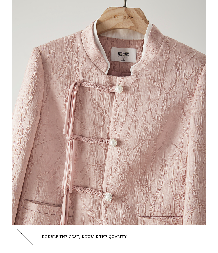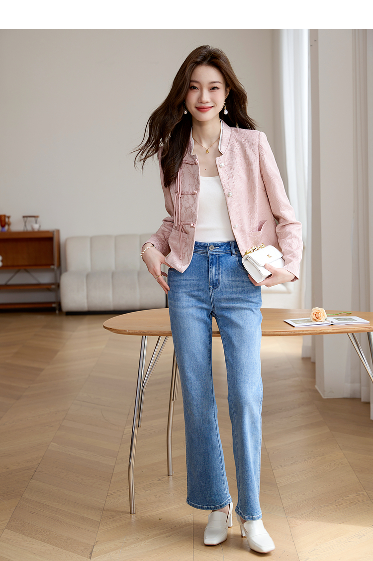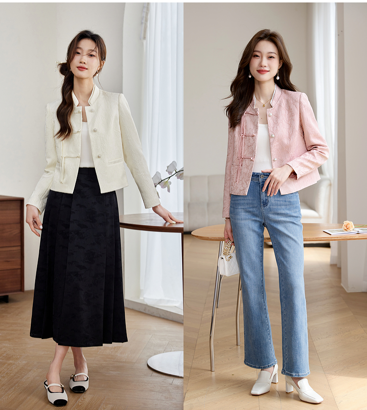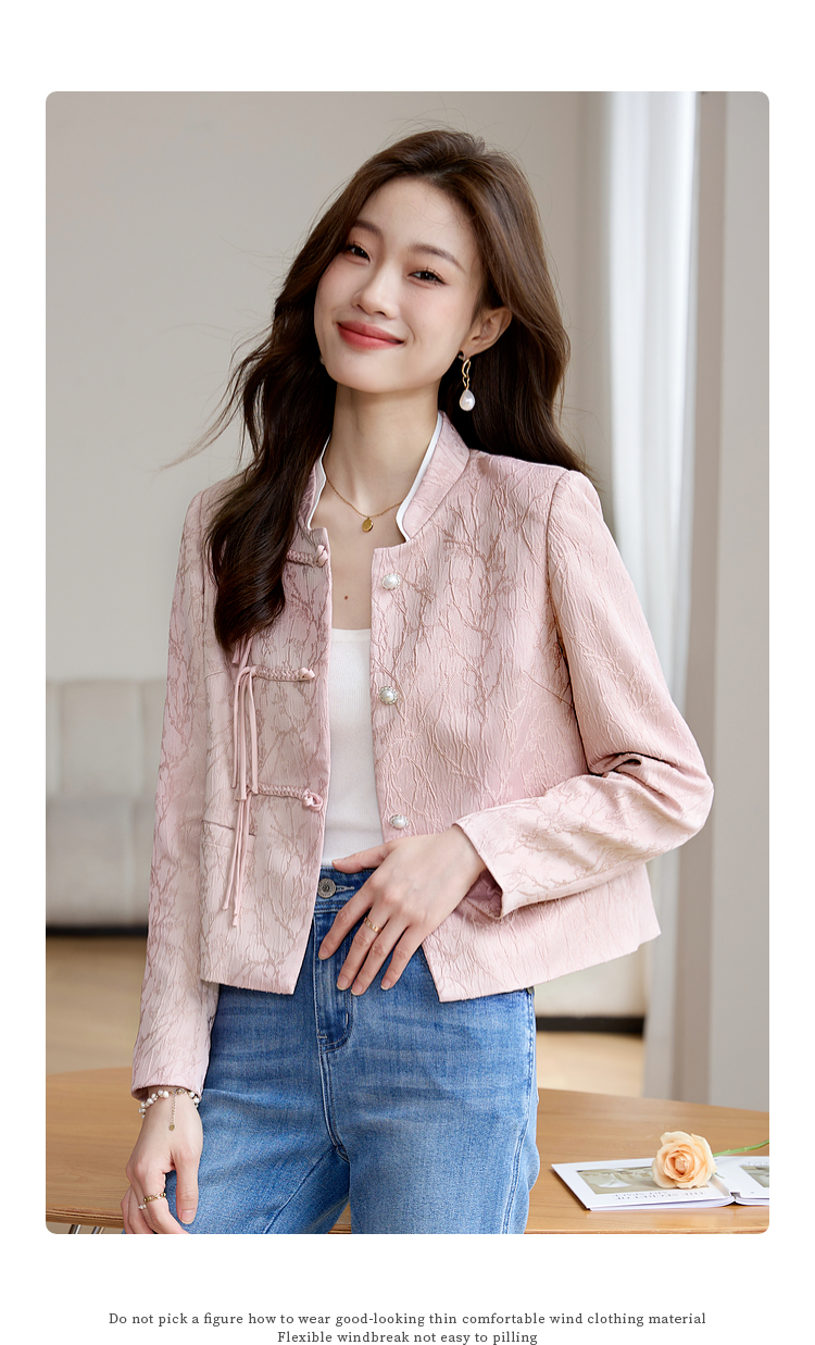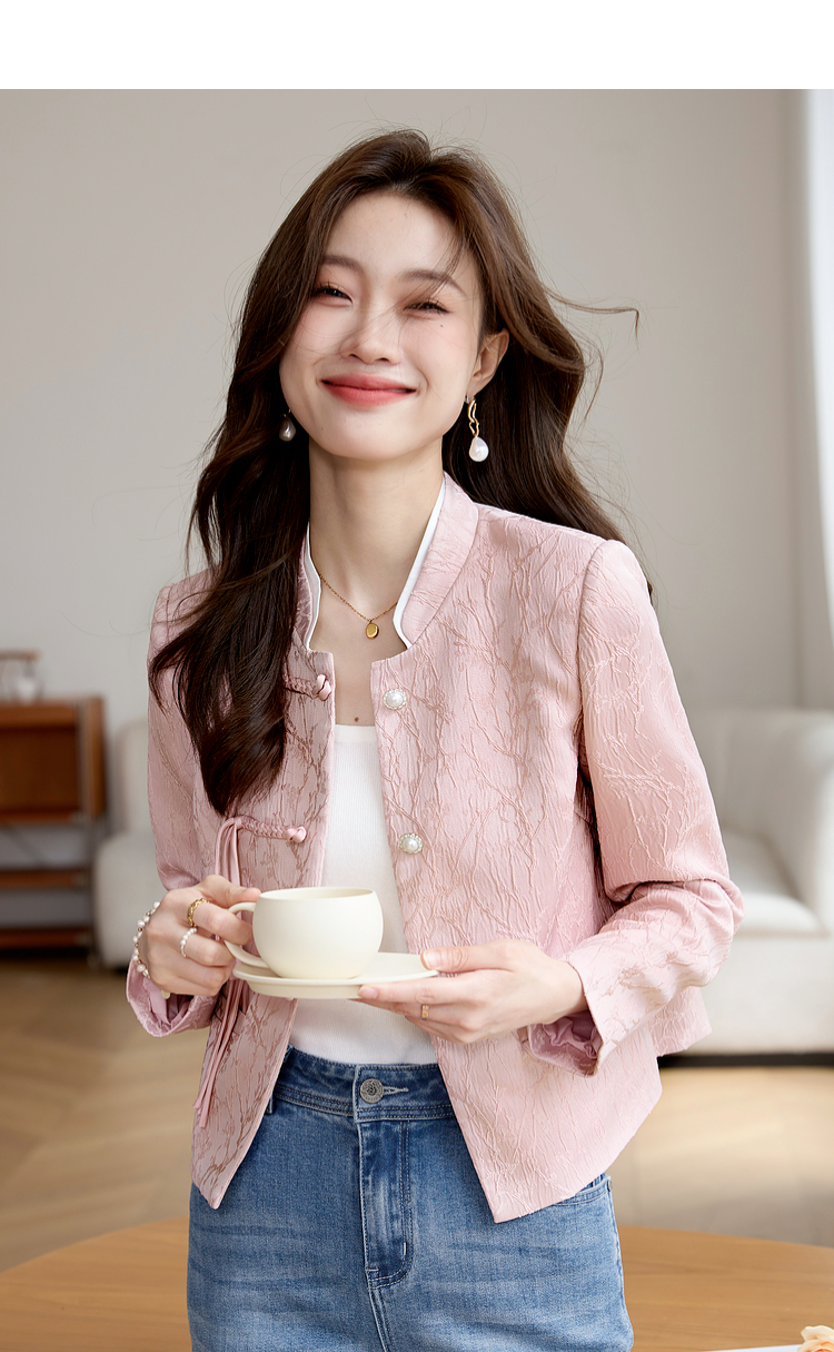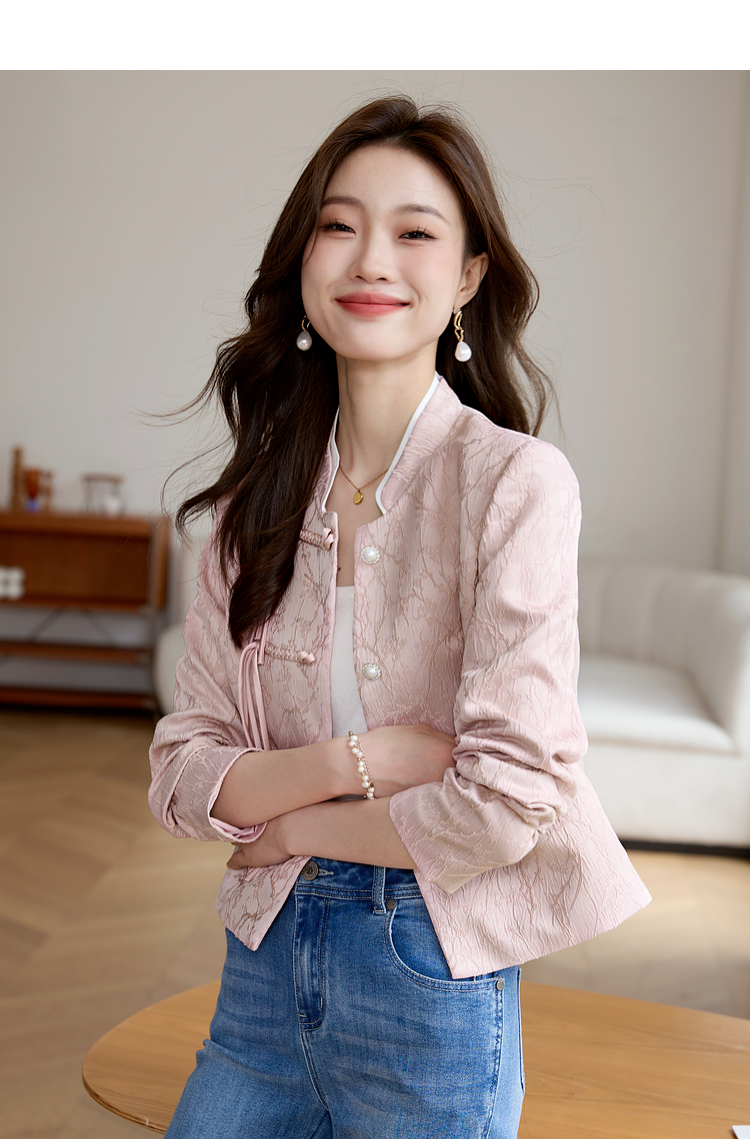 【129选3件,不退换】熙世界新中式国风白色外套短款小个子春秋流苏盘扣提花立领上衣