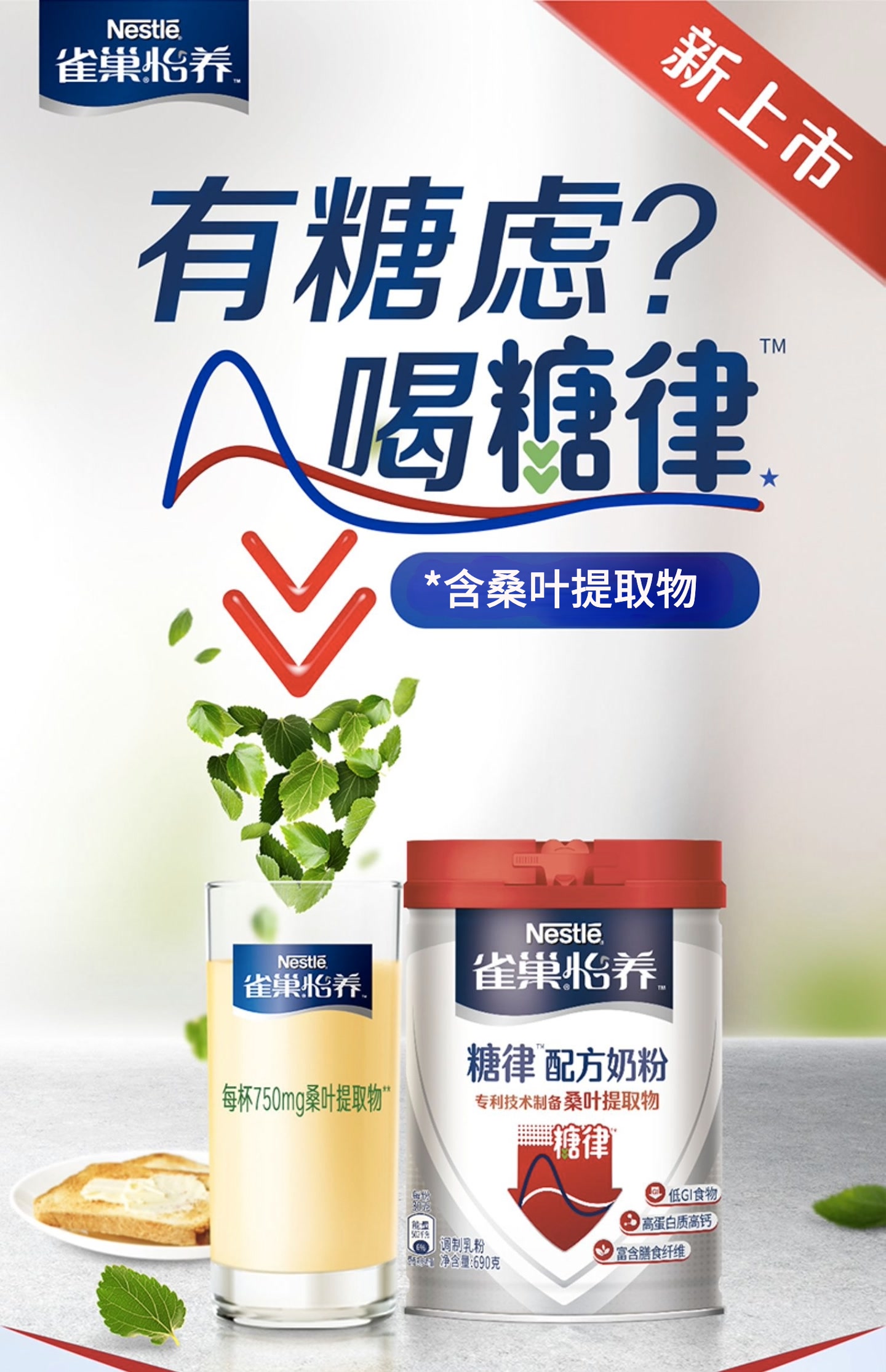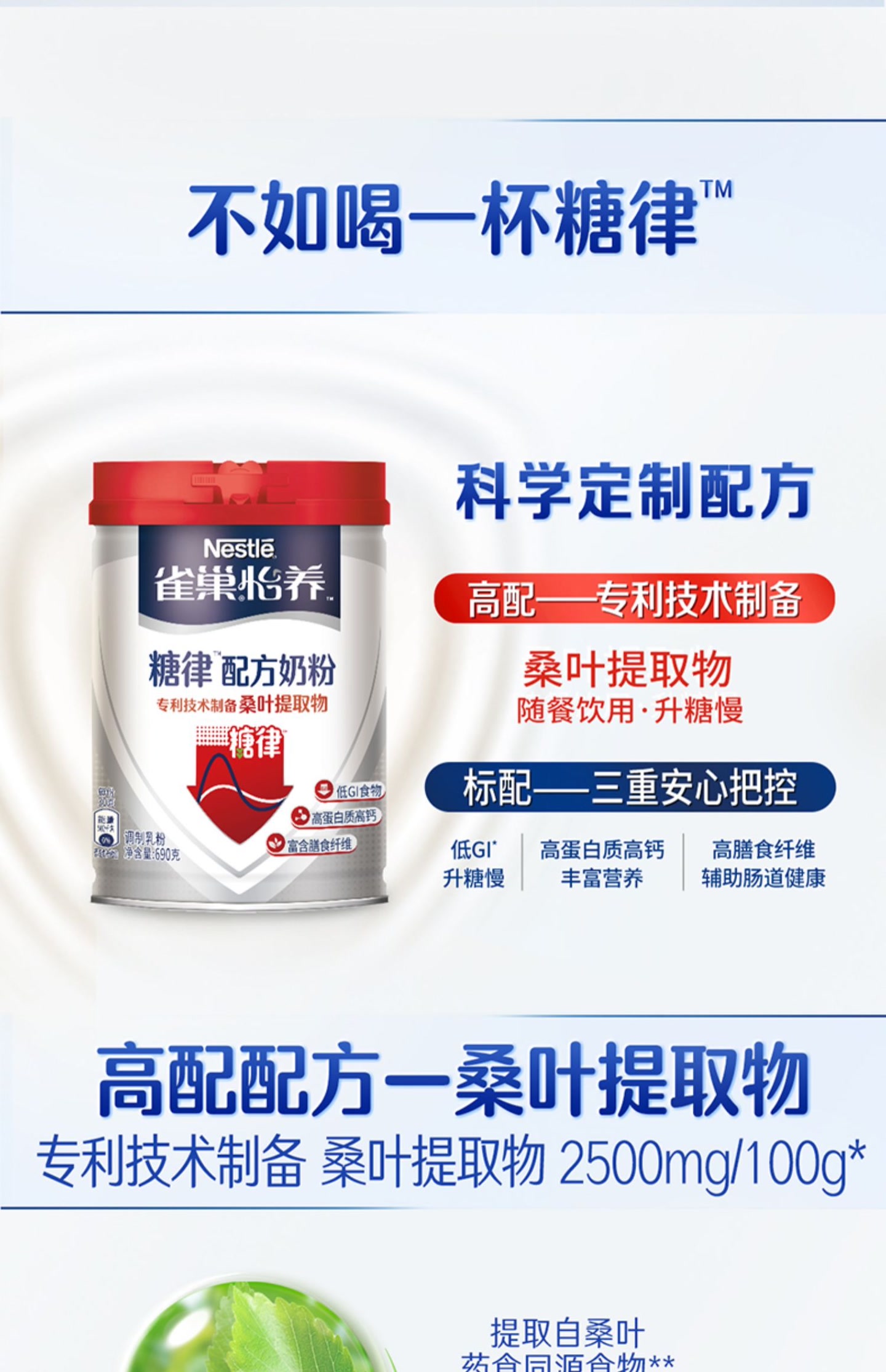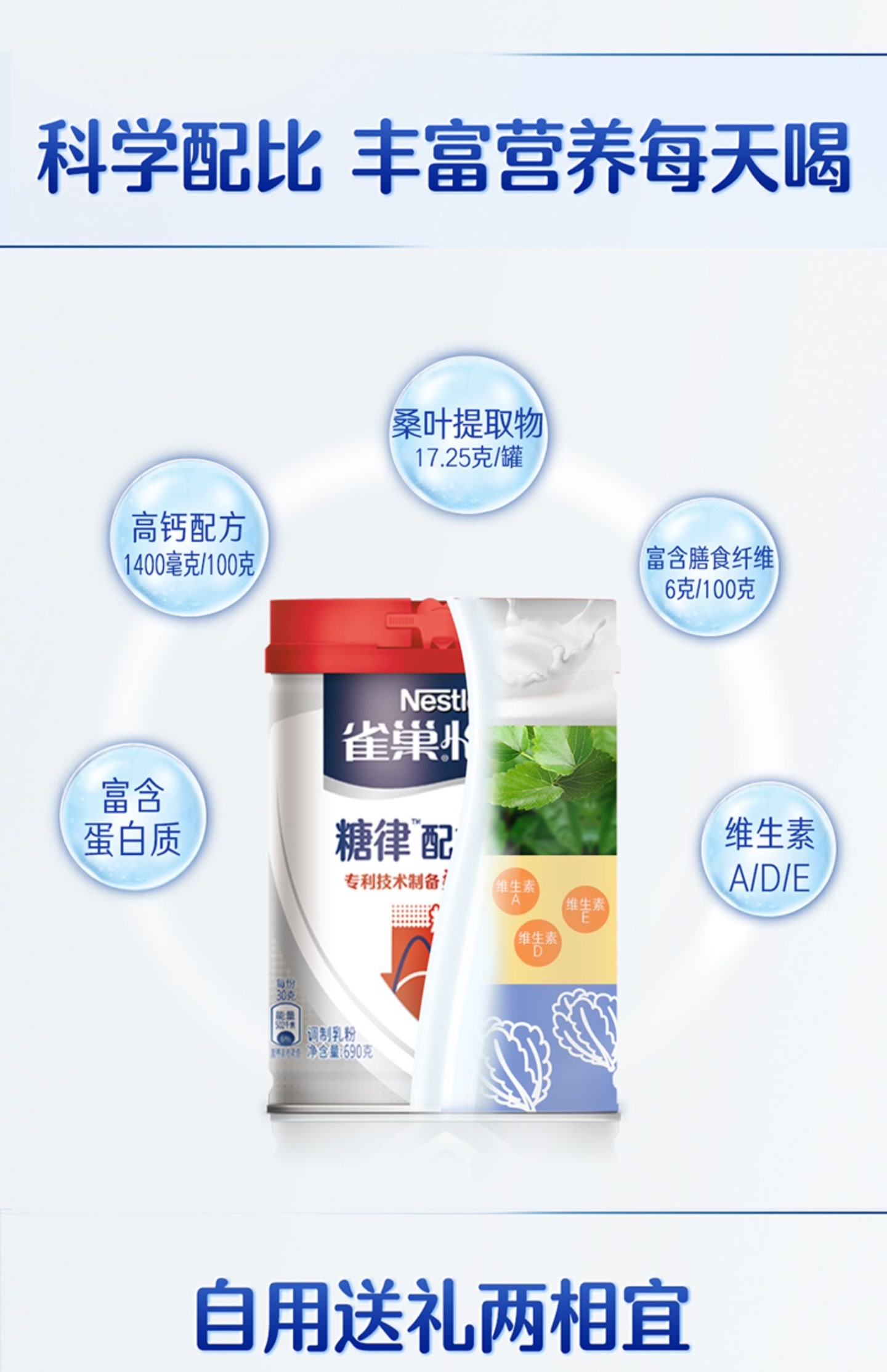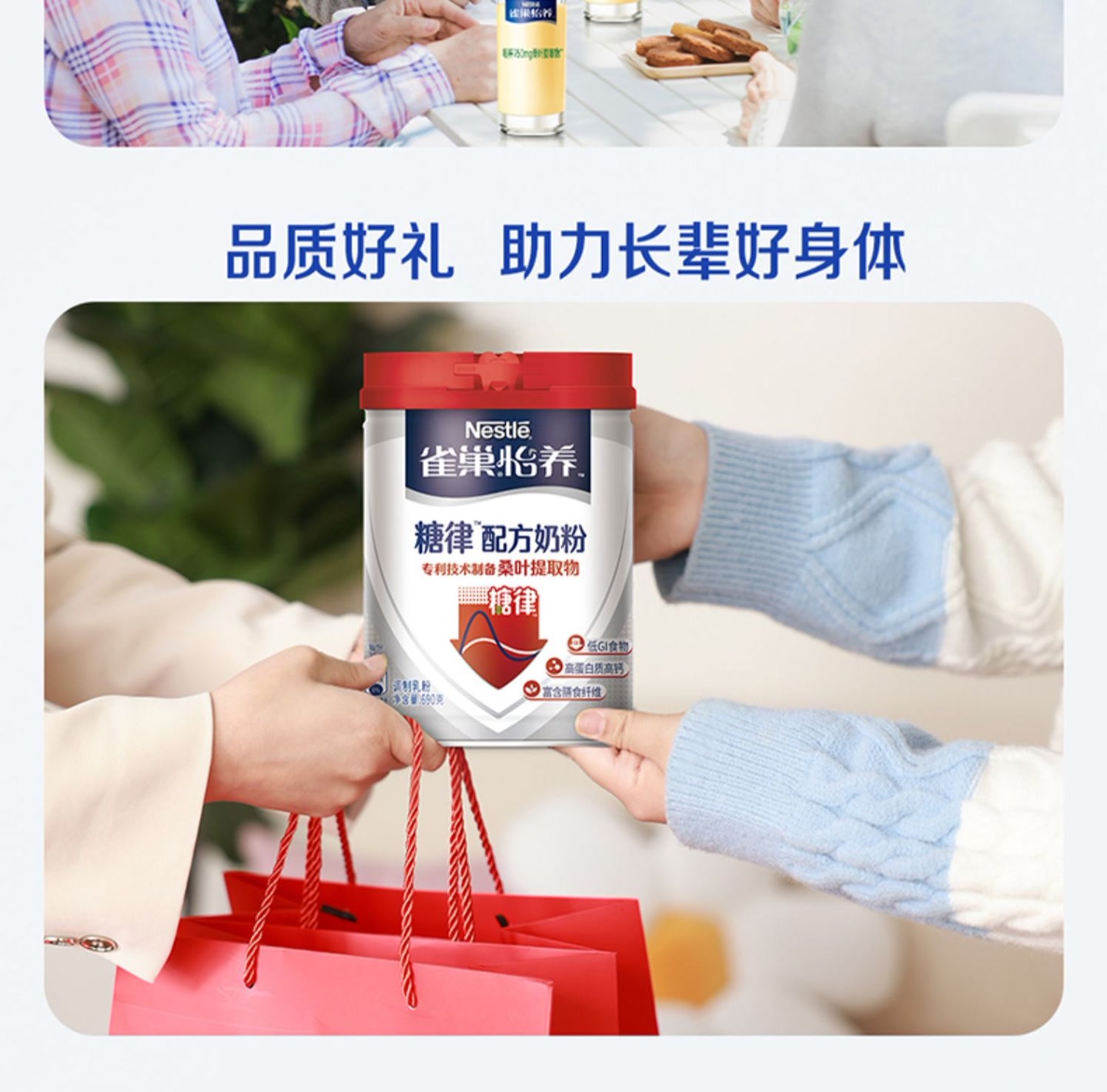 雀巢怡养糖律中老年营养配方不加蔗糖奶粉690g罐装/高蛋白高钙