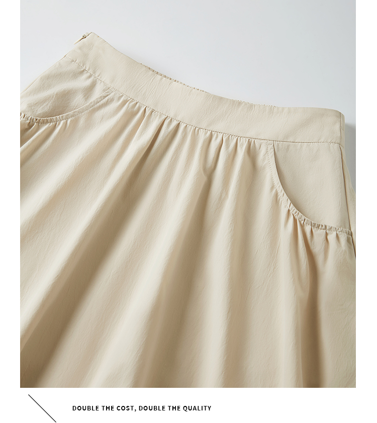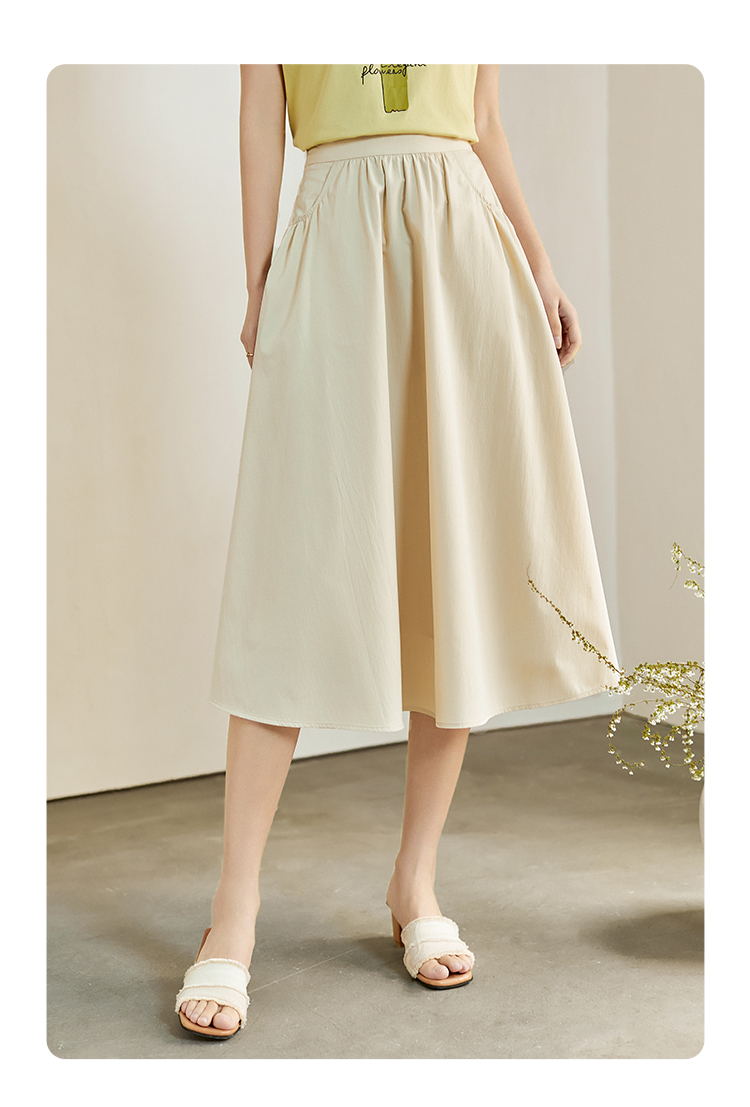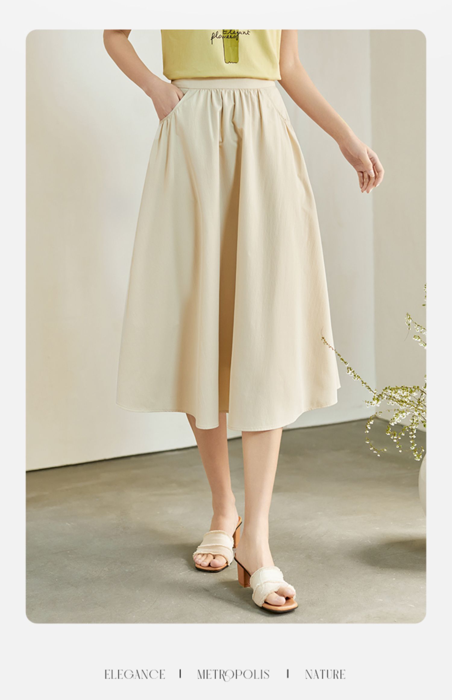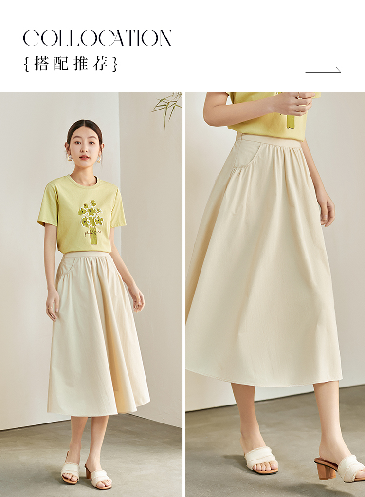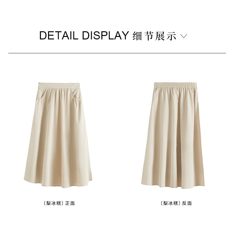 【专属特价】熙世界休闲复古优雅半身裙女夏季新款松紧高腰显瘦口袋设计a字裙