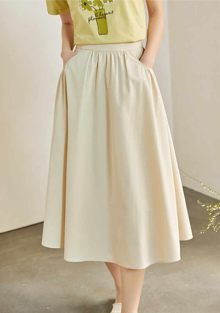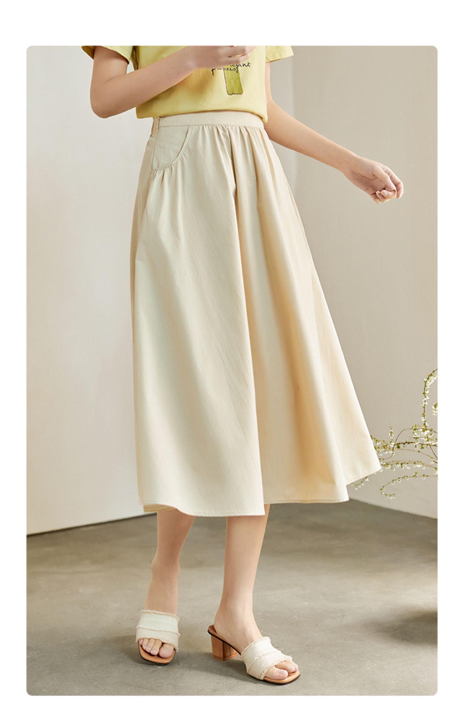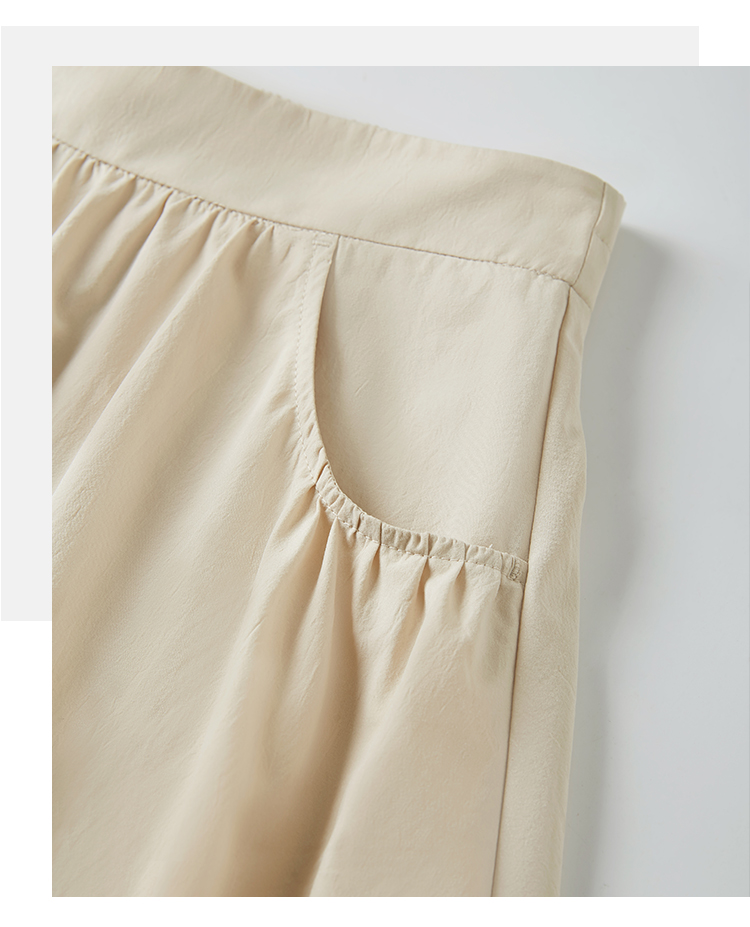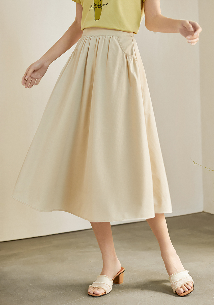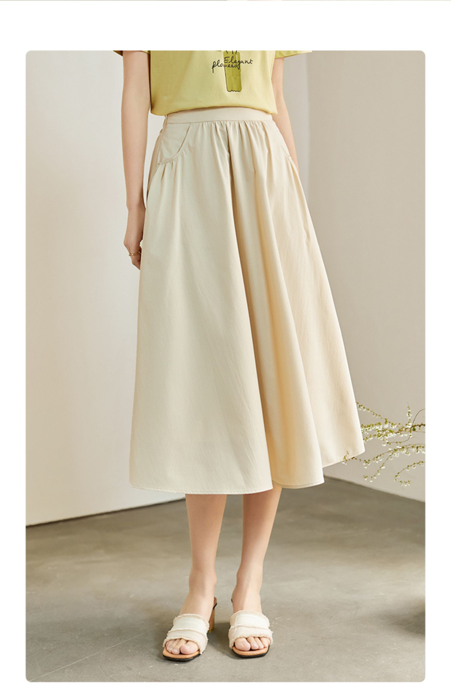【专属特价】熙世界休闲复古优雅半身裙女夏季新款松紧高腰显瘦口袋设计a字裙
