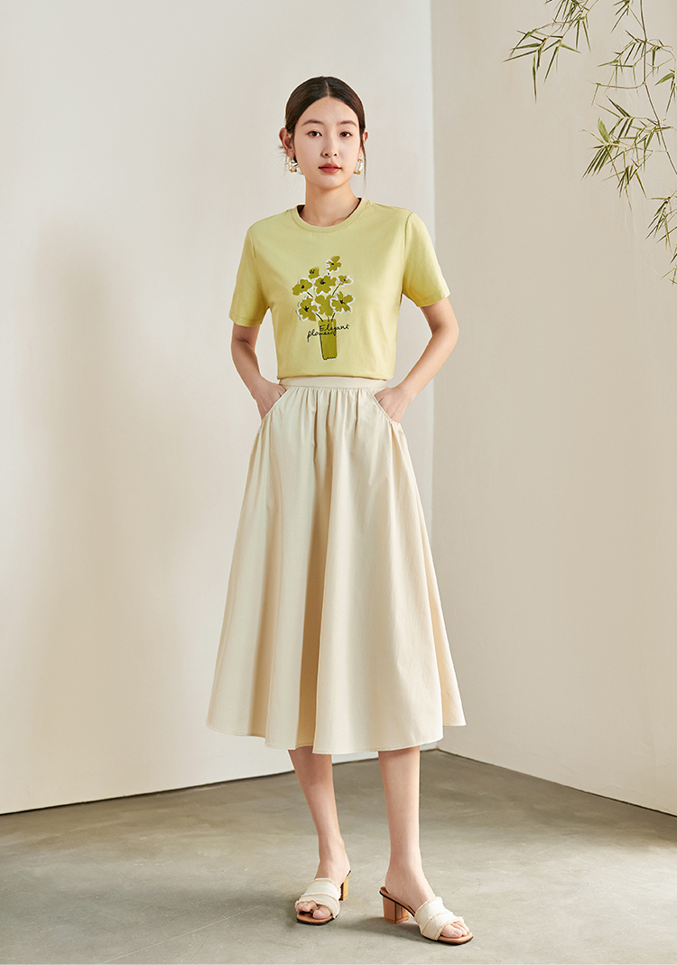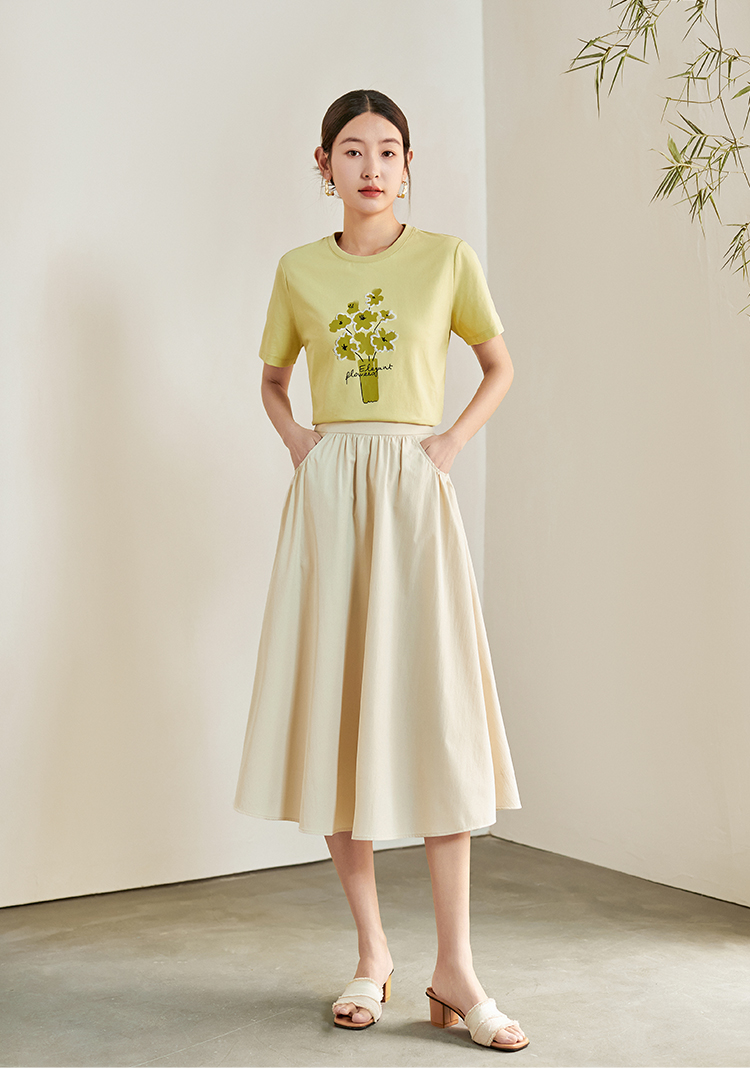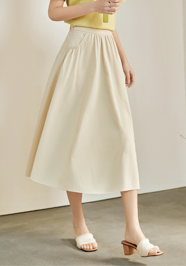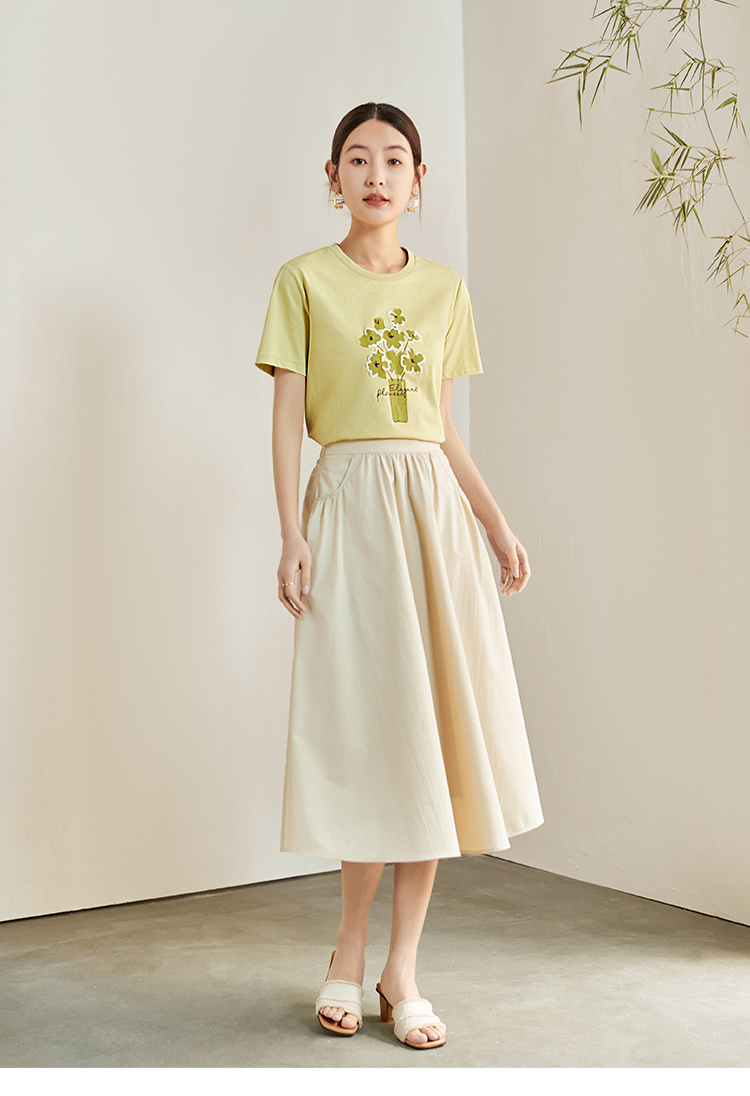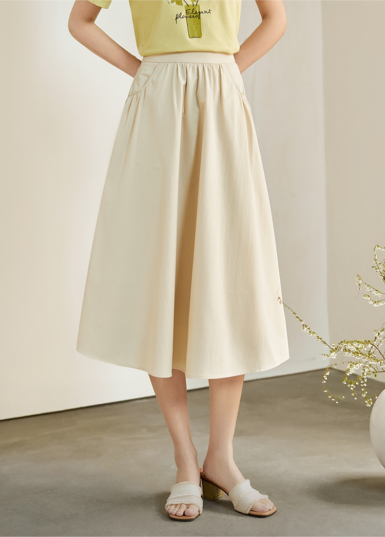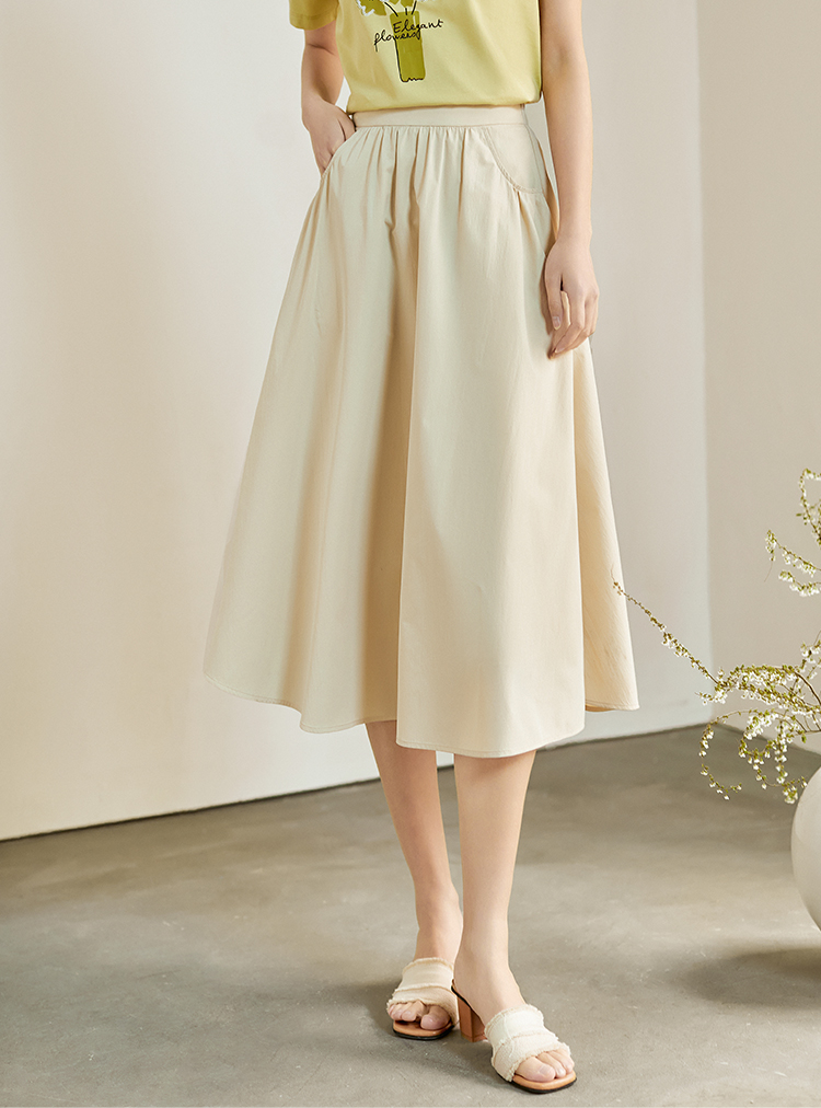 【专属特价】熙世界休闲复古优雅半身裙女夏季新款松紧高腰显瘦口袋设计a字裙