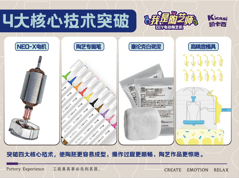 【塞伦克白瓷泥+陶艺专画笔】凯卡西我是陶艺师 DIY 套装 儿童手工制作玩具礼物 4大核心技术突破 NEO-X电机 高精度模具陶艺玩具