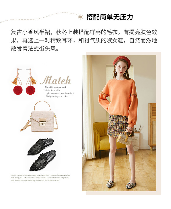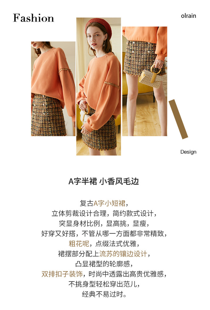 欧芮儿2020春装新品小香风半身裙女高腰显瘦格子短裙百搭包臀裙