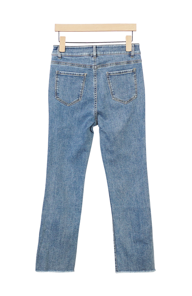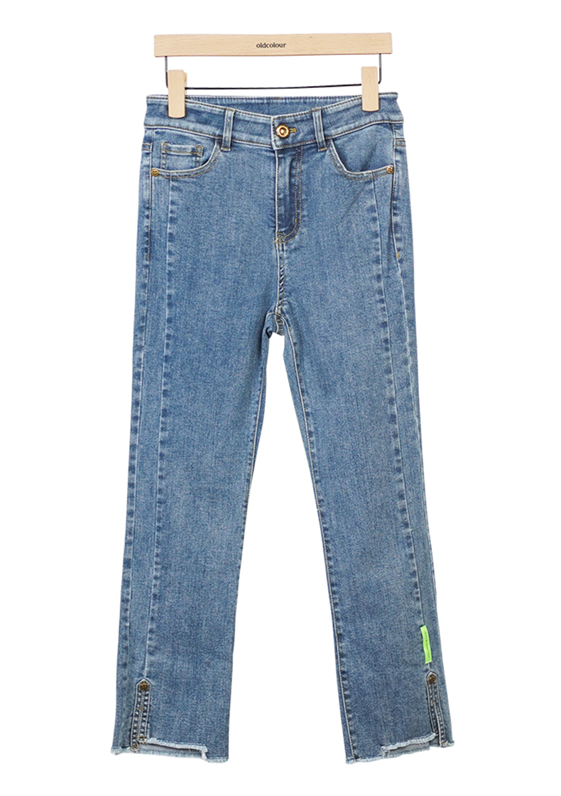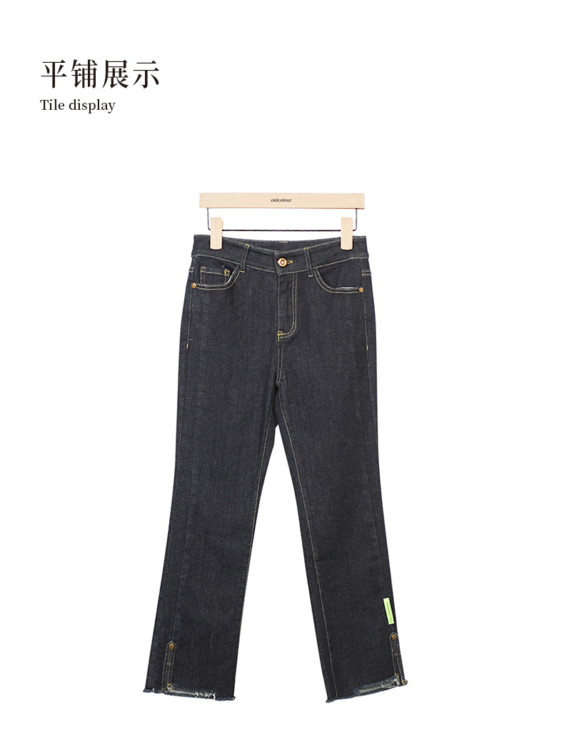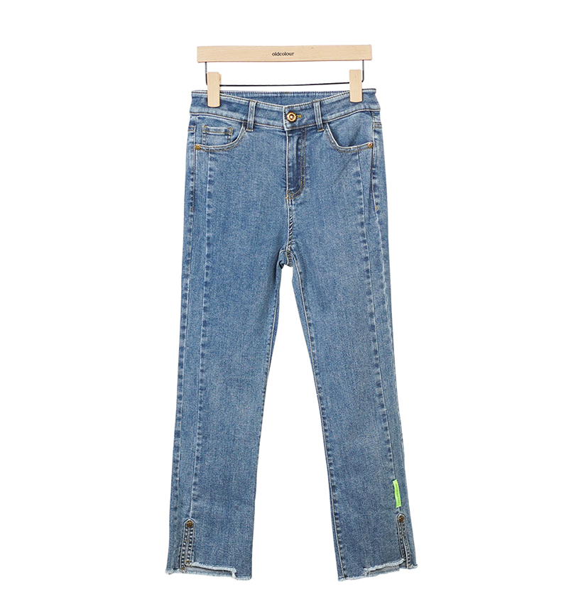 oldcolour蓝色牛仔裤秋季新款设计感开叉修身铅笔裤女O32113238