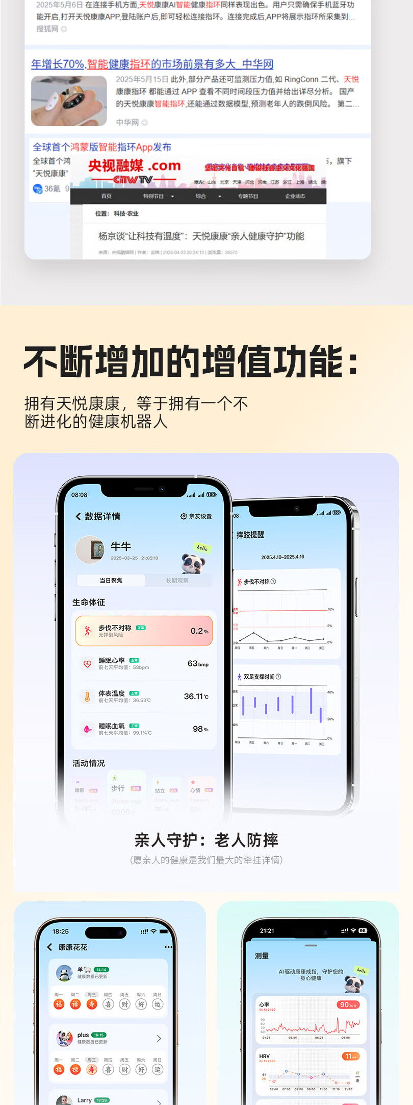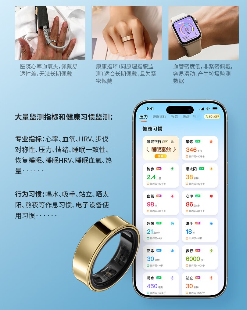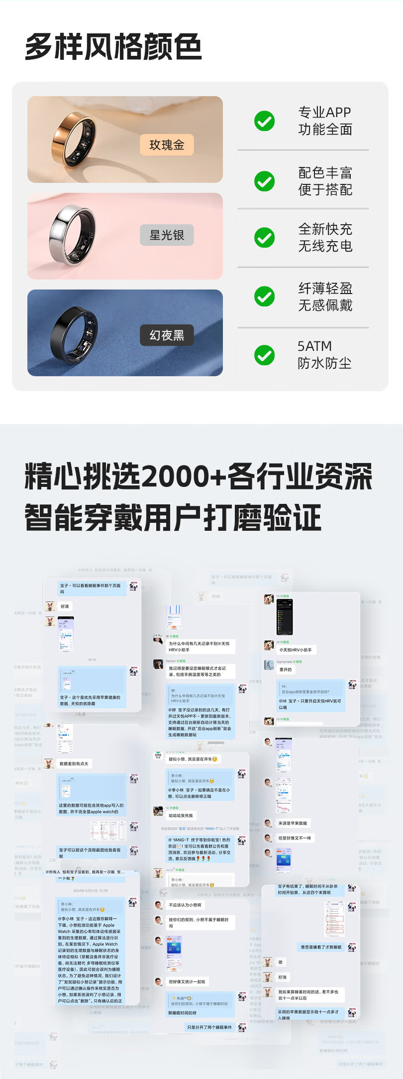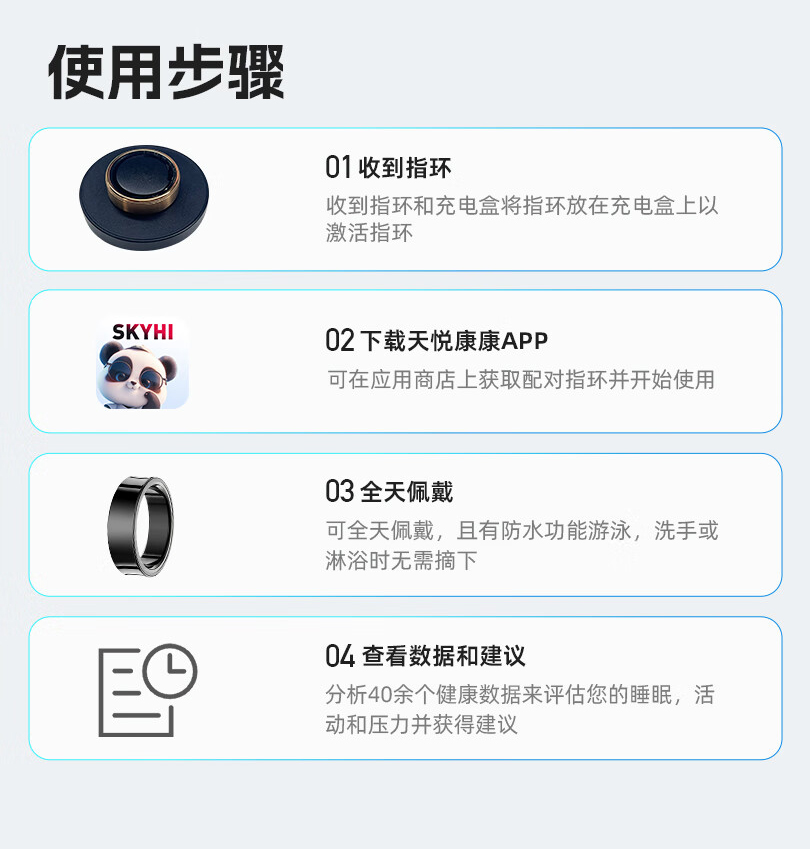 天悦康康(SKYHI)AI智能健康指环戒指 测心率血氧睡眠身体健身数据监测