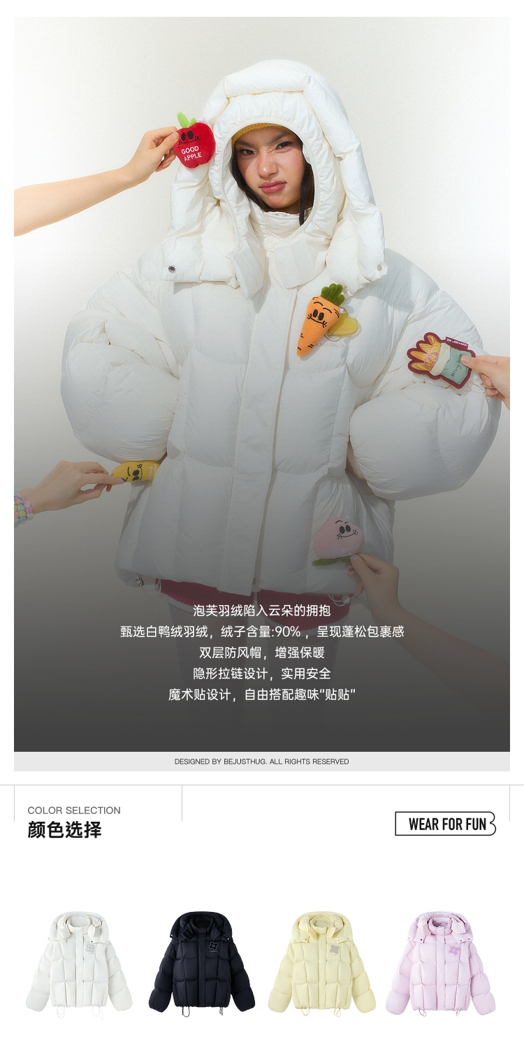 BJHG不计后果贴贴短款羽绒服女冬季90绒双层防风连帽泡芙羽绒外套