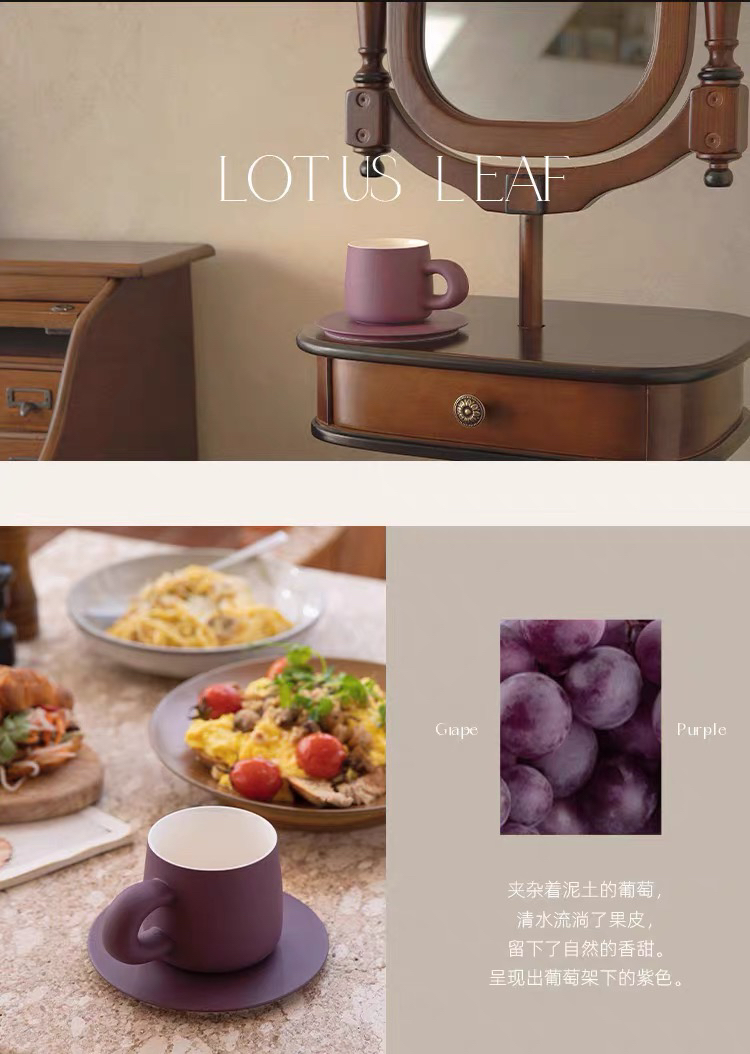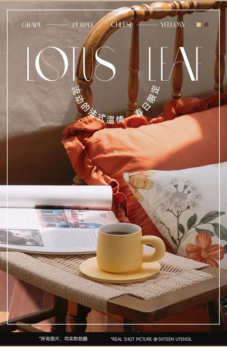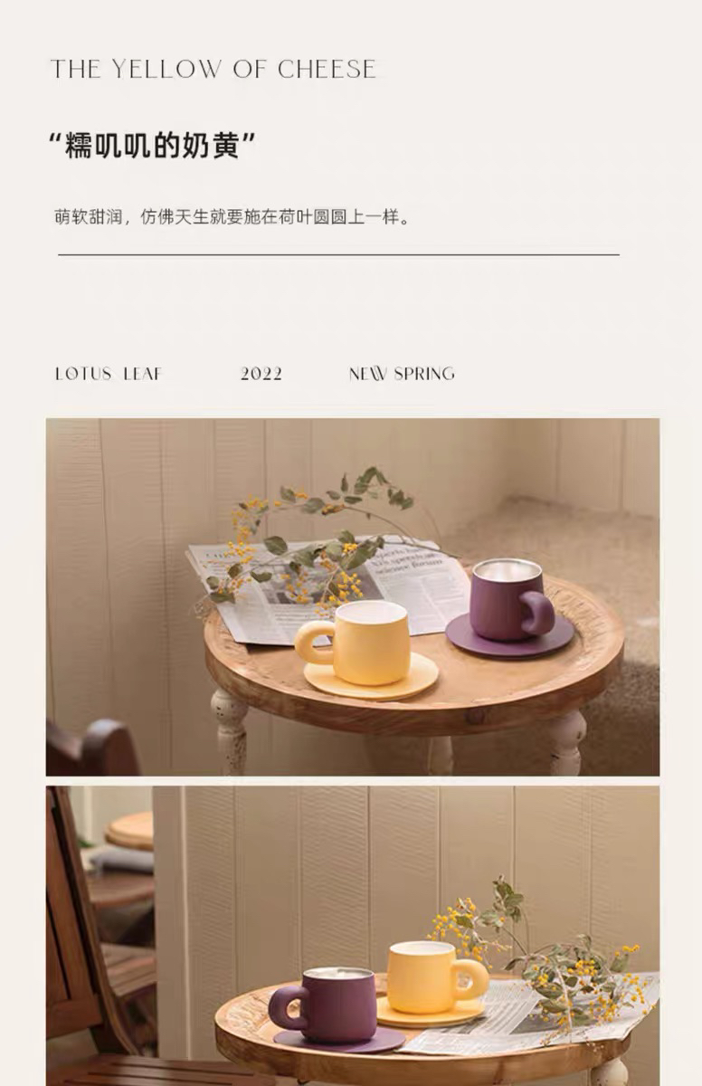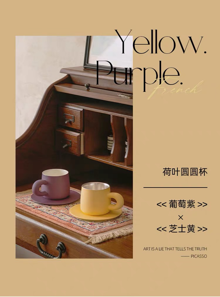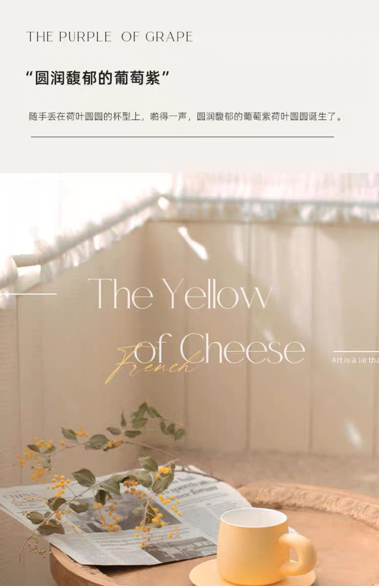 ◤荷叶圆圆◢16开 葡萄紫芝士黄咖啡杯陶瓷马克杯
