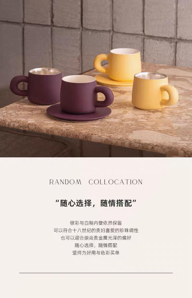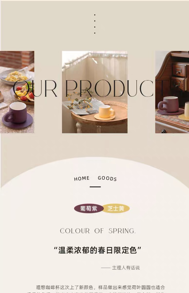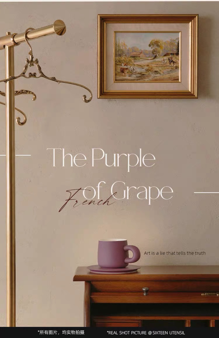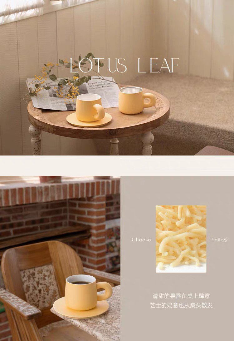 ◤荷叶圆圆◢16开 葡萄紫芝士黄咖啡杯陶瓷马克杯