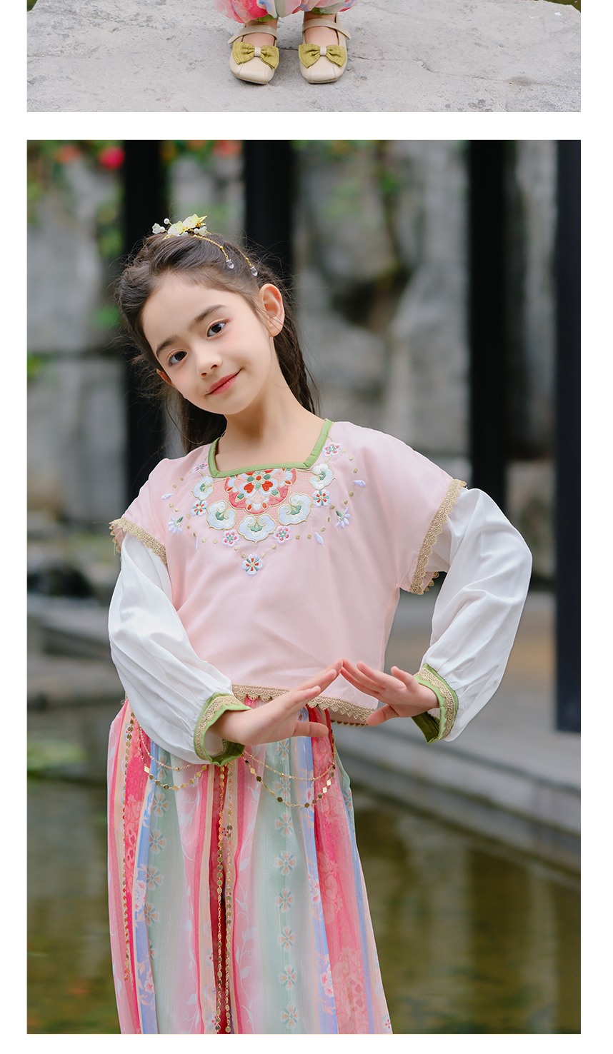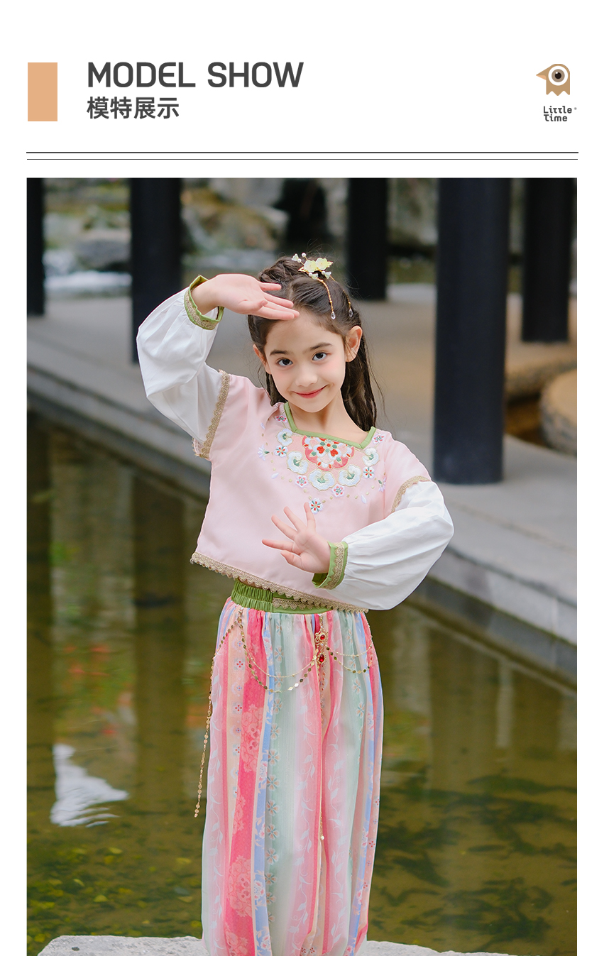 Littletime女童新中式连衣裙2024春夏海上风华套装舞蹈裙公主裙