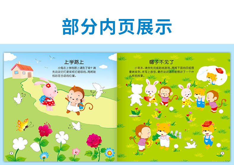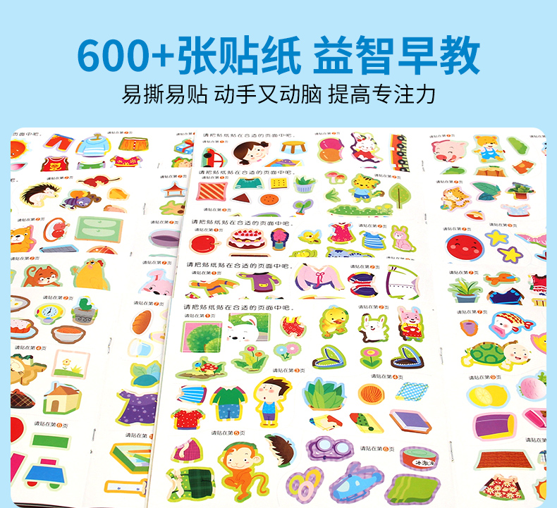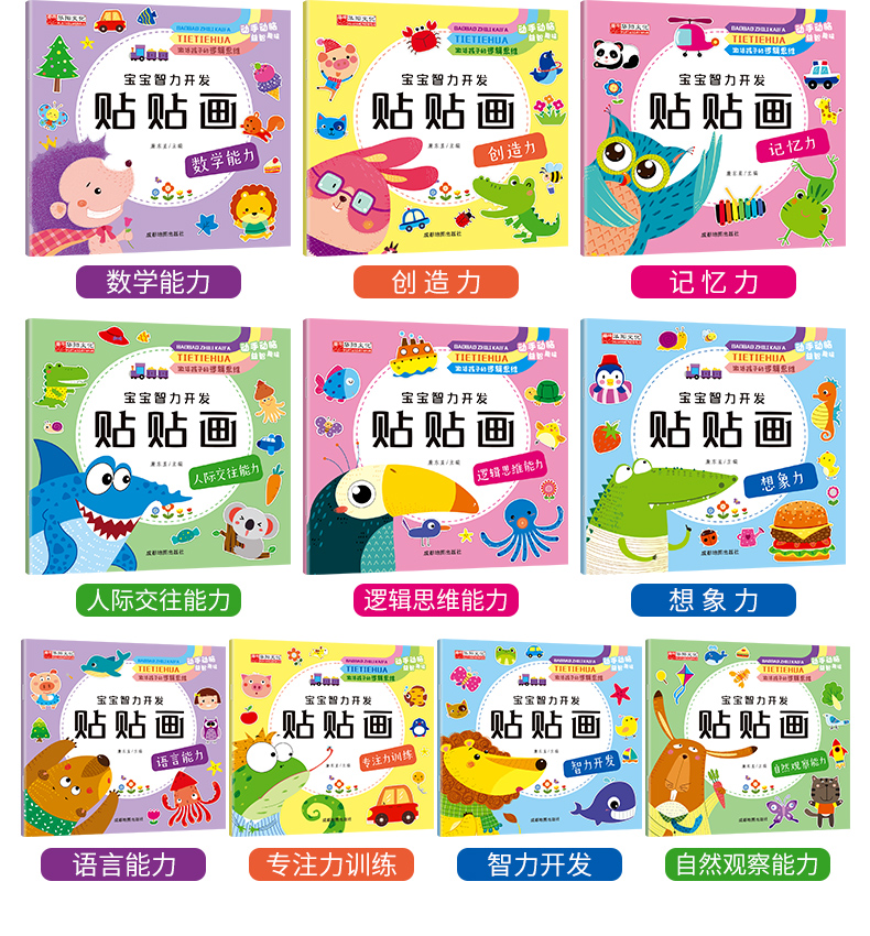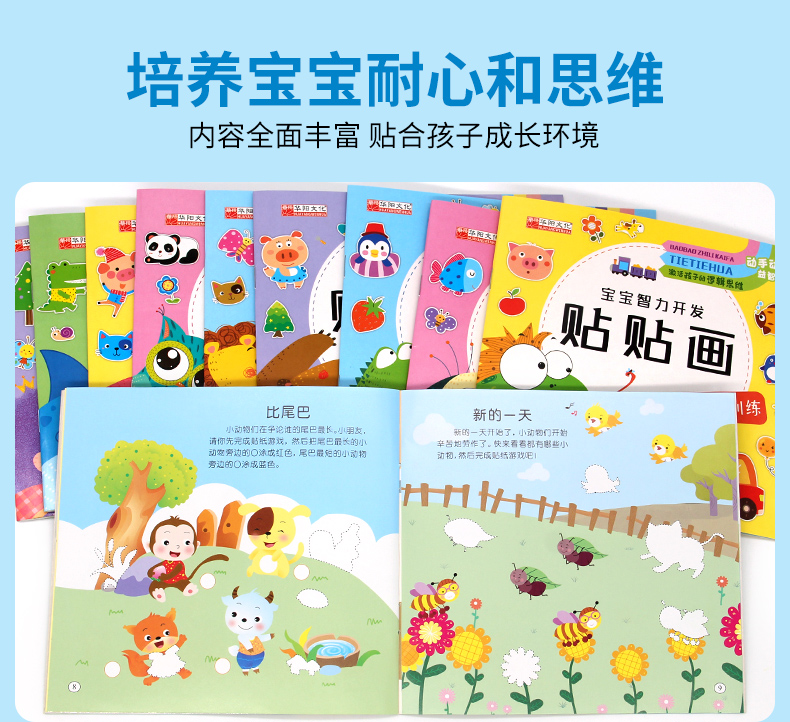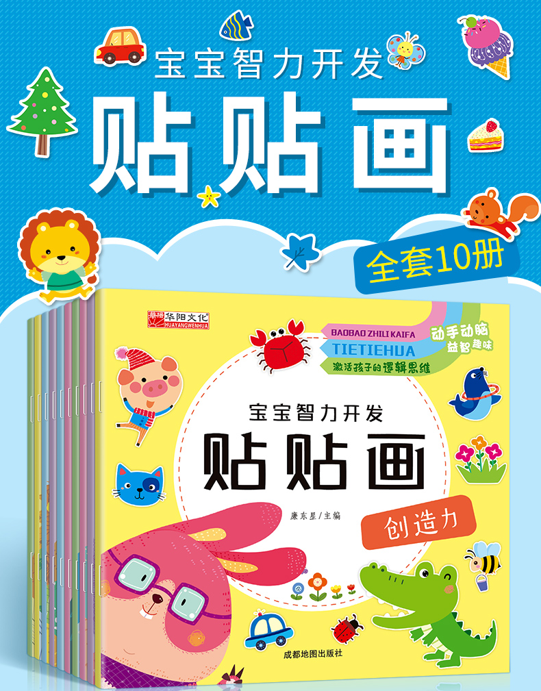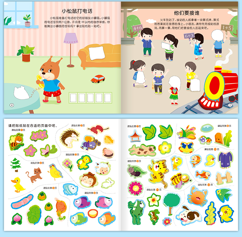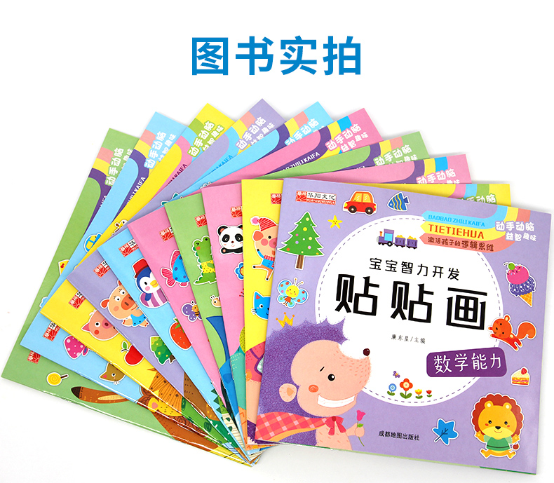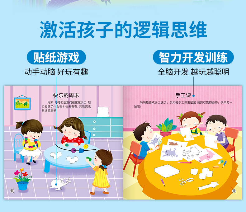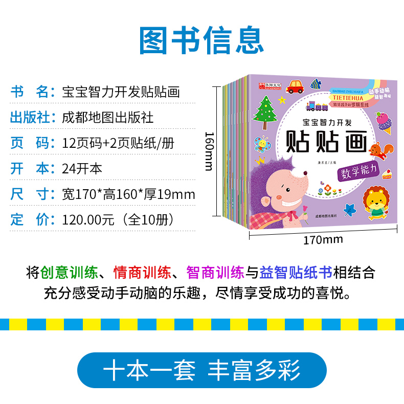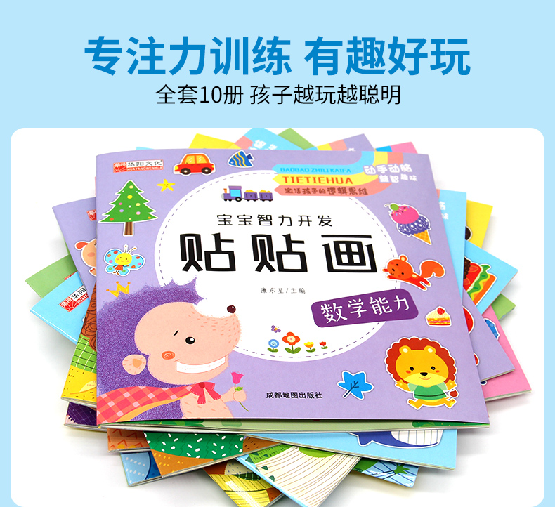 宝宝智力开发贴贴画全套10册3-5-6岁全脑开发思维训练儿童阶梯数学思维逻辑训练专注力启蒙贴贴画幼儿园宝宝亲子互动早教贴纸书
