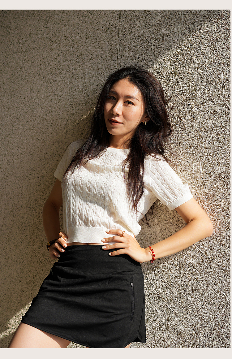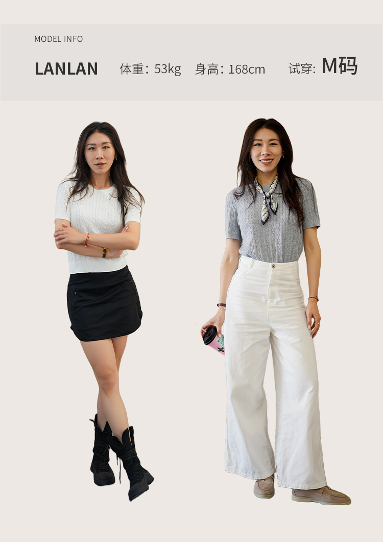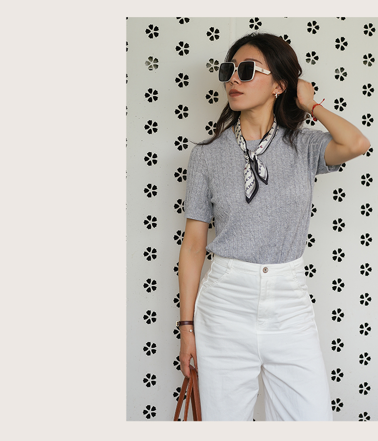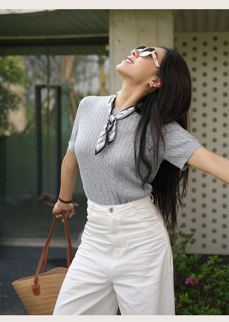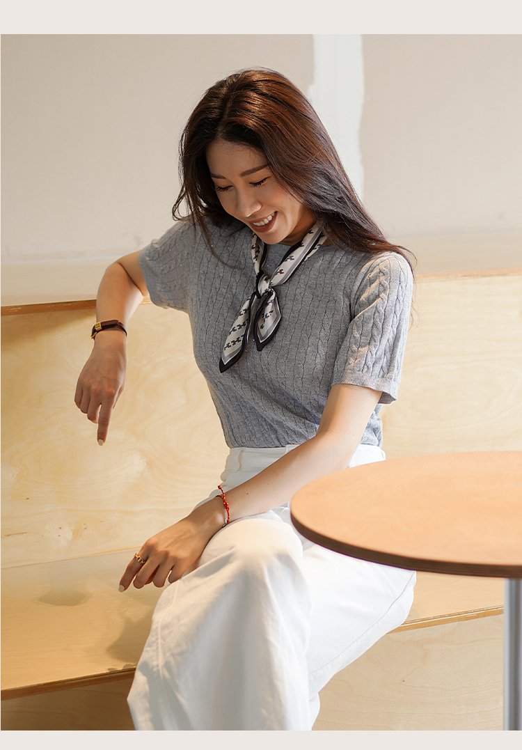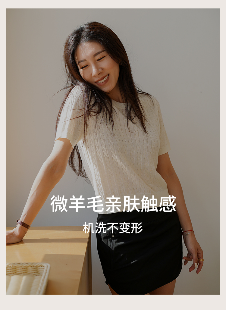 L RECNAVA 绞花肌理圆领绵羊毛针织短袖 百搭经典款 可机洗