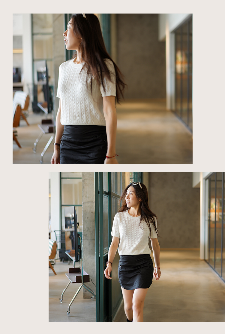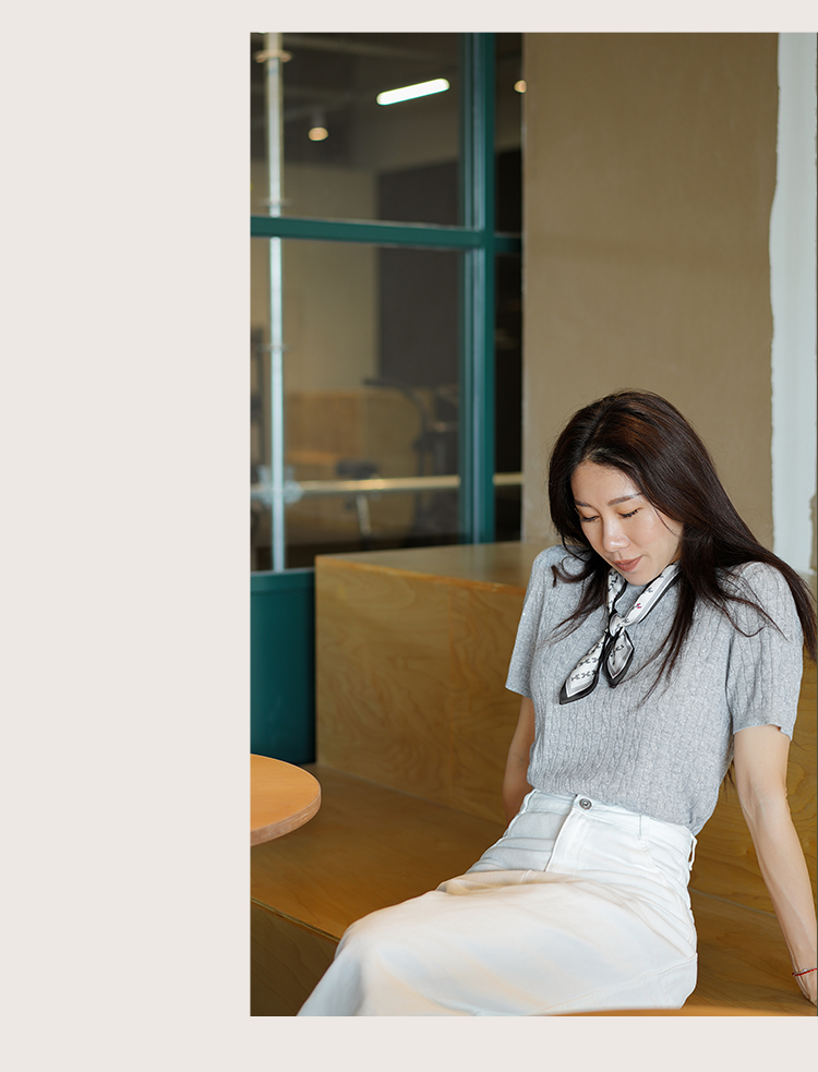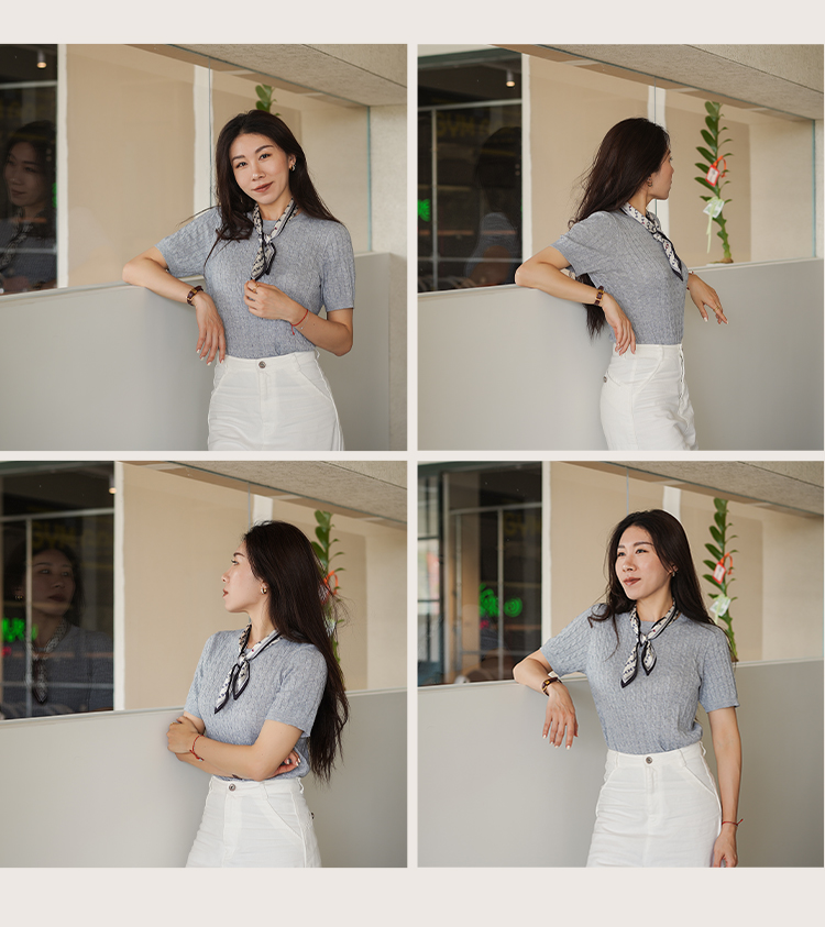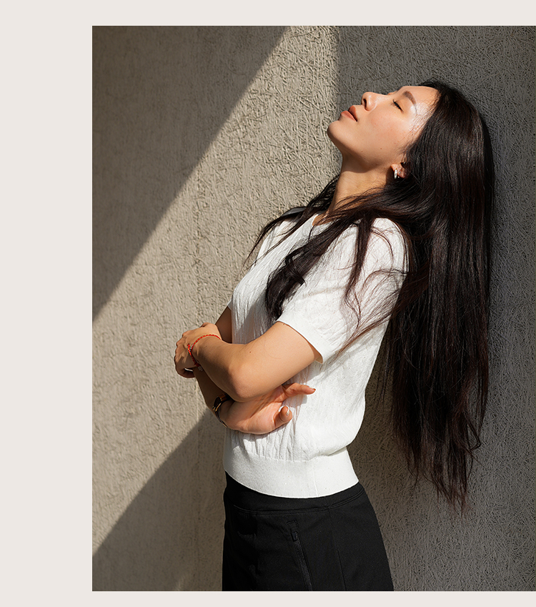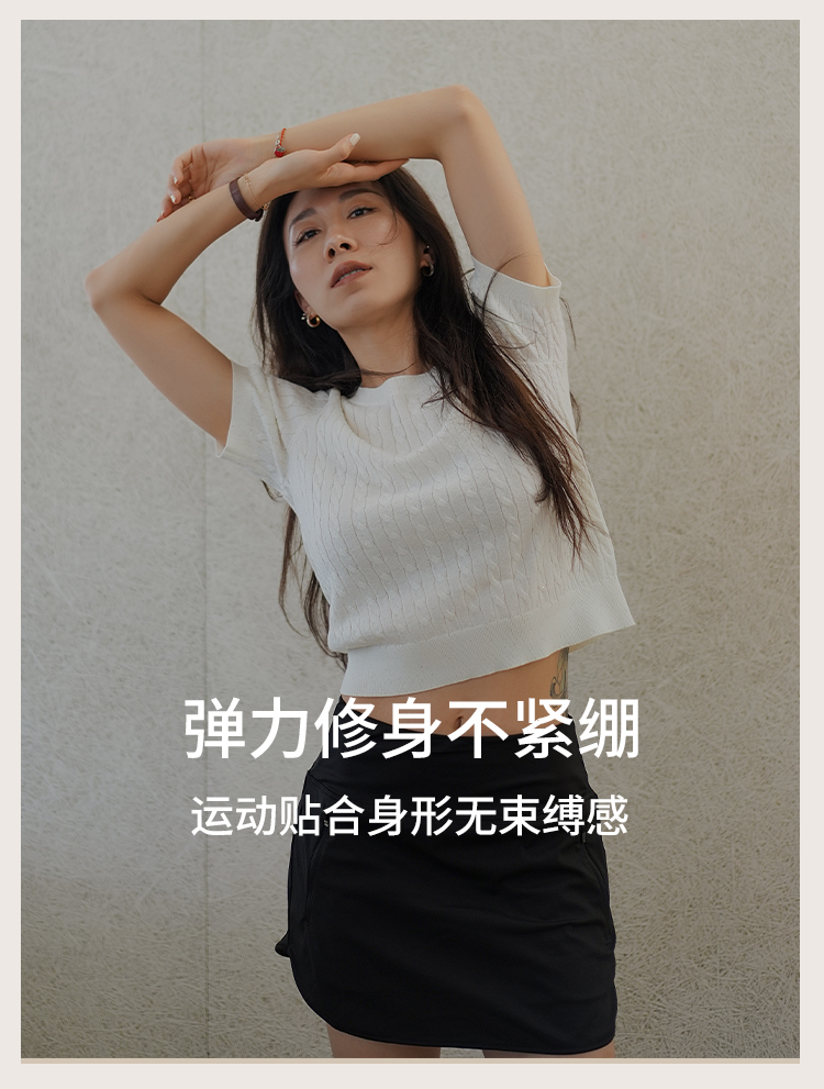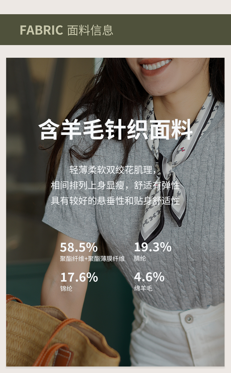 L RECNAVA 绞花肌理圆领绵羊毛针织短袖 百搭经典款 可机洗