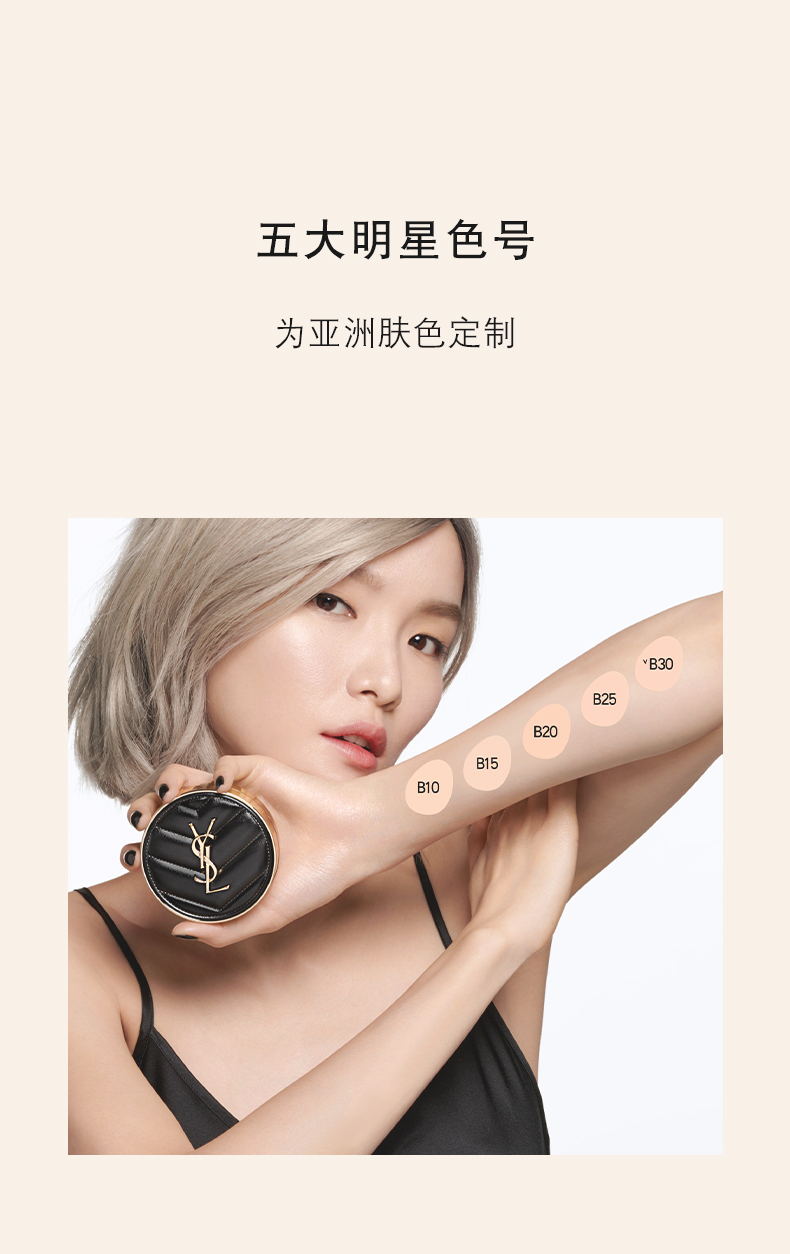 YSL圣罗兰皮气垫全升级新配方 持久遮瑕细腻粉底液服帖轻薄哑光