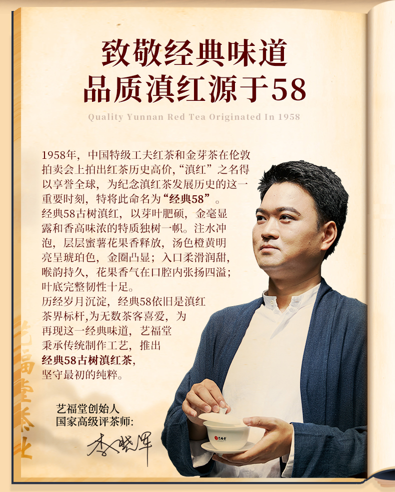 艺福堂经典58滇红茶特级160g/罐(方罐)*2