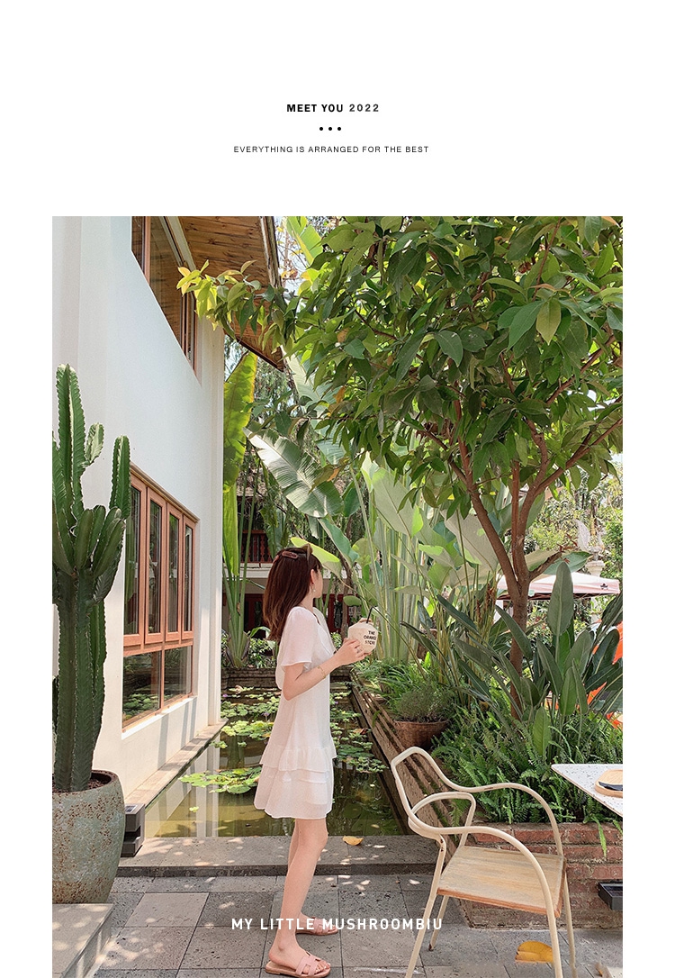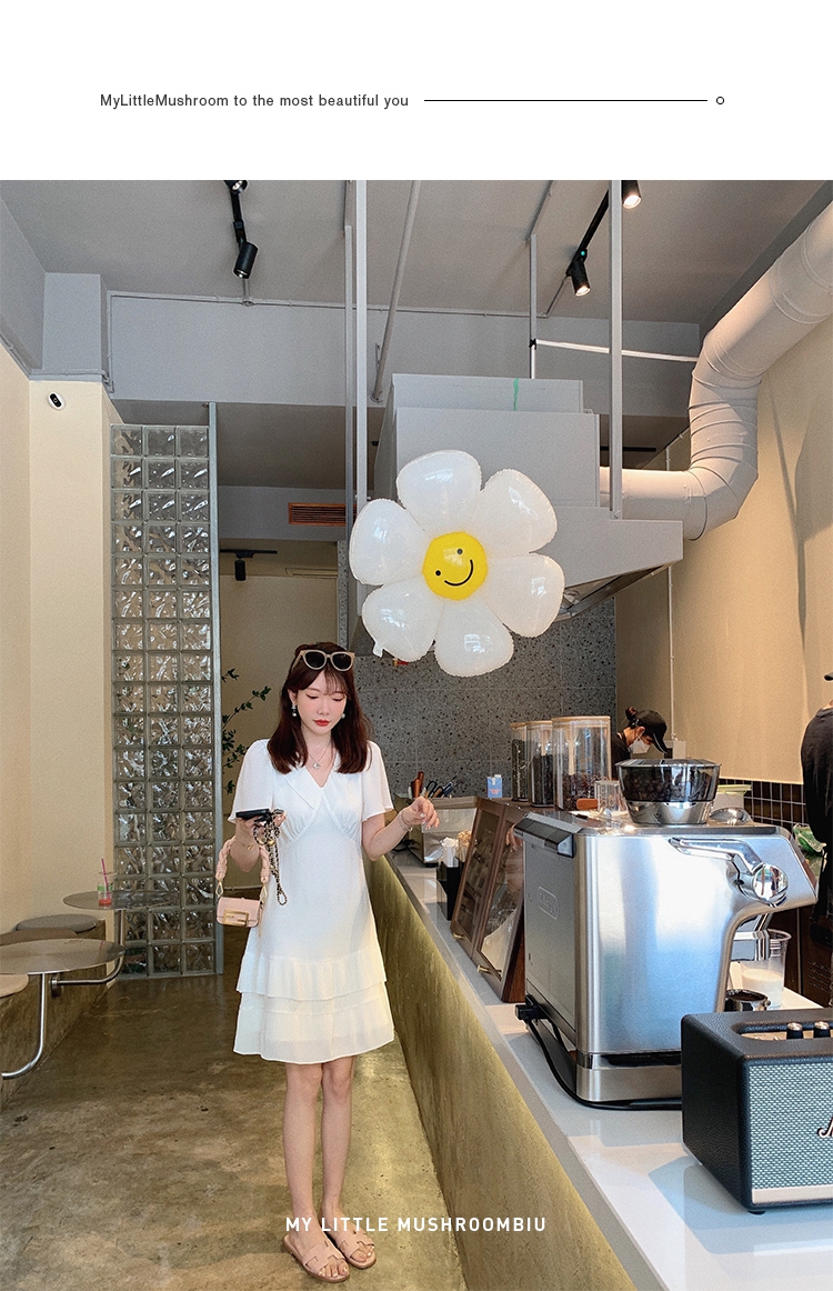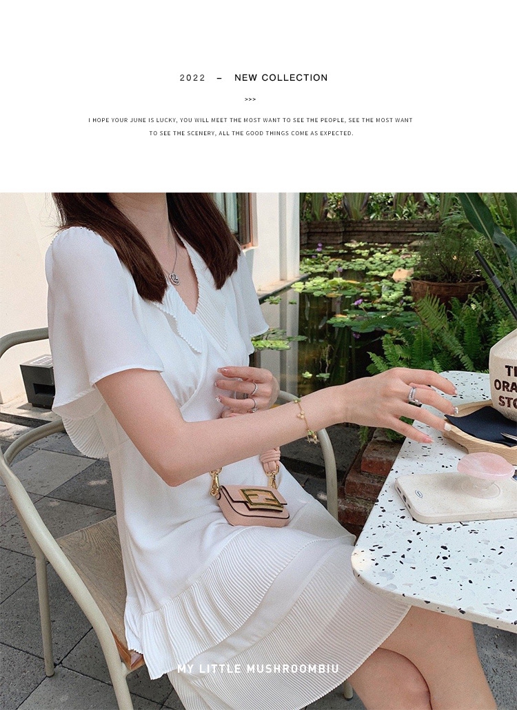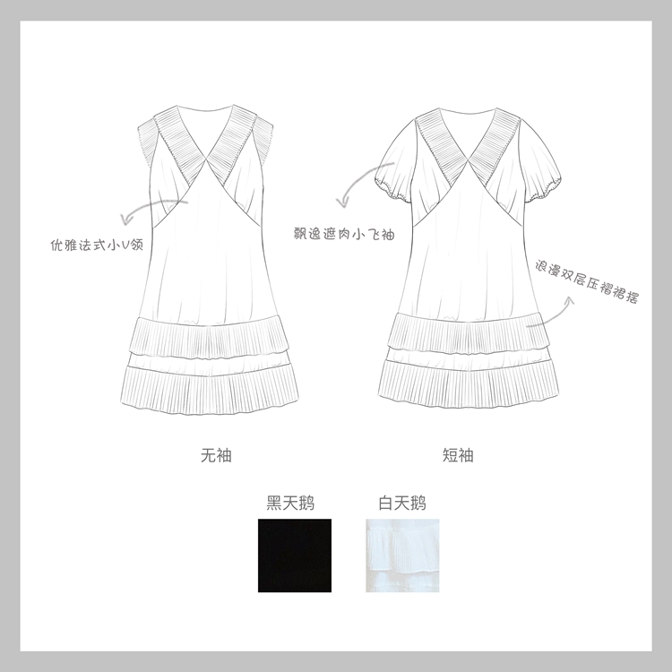 金蘑菇菇【巴黎诗集】双层压褶重工立体褶皱设计感实穿连衣裙