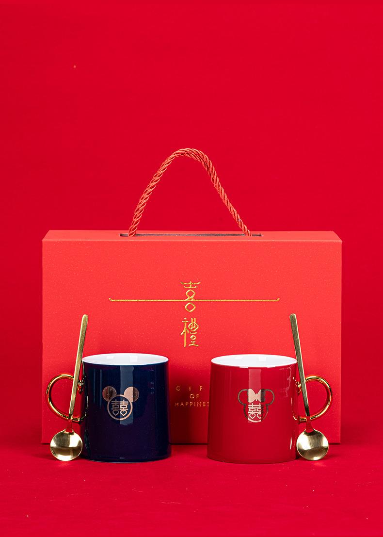 情侣水杯一对礼盒新婚陪嫁套装新中式陶瓷杯子婚庆用品洗漱牙刷杯