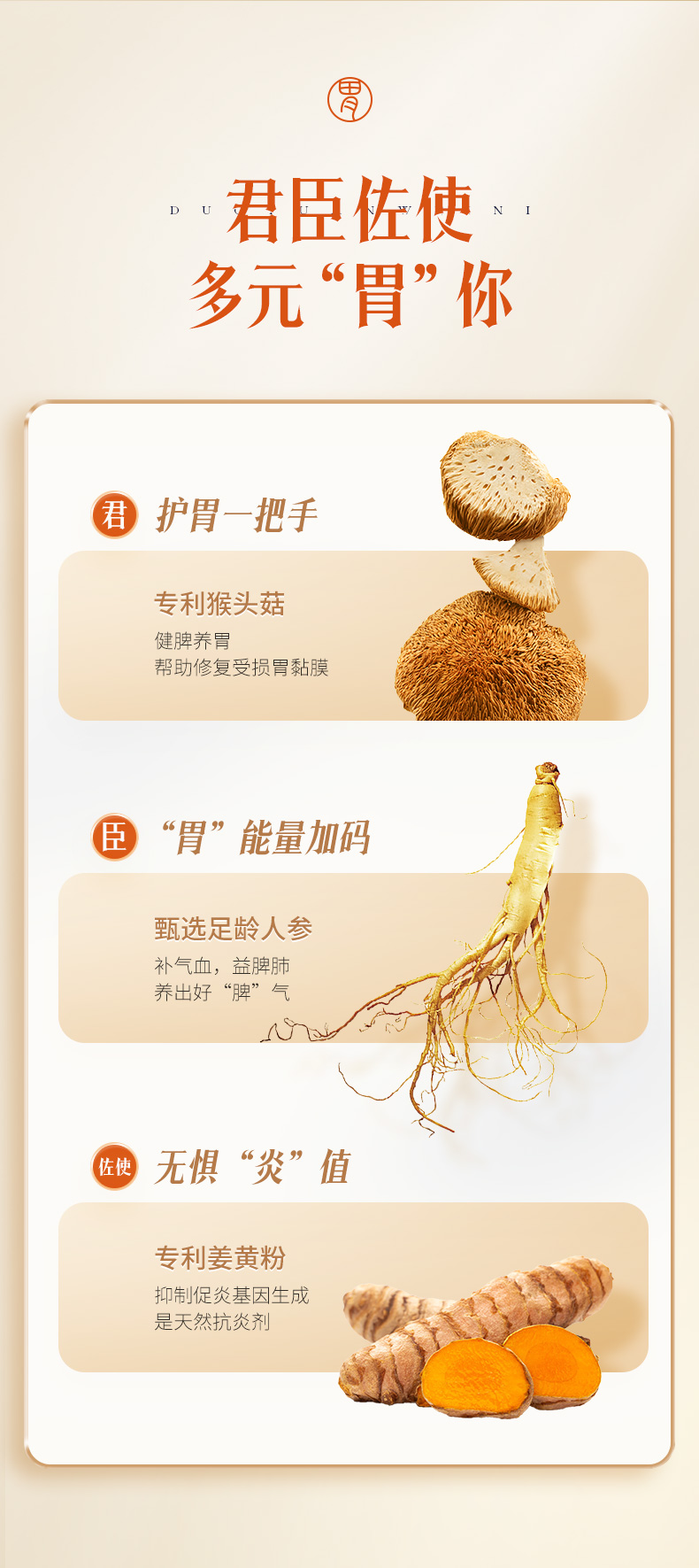 2盒打卡再赠1盒【猴头菇人参姜黄粉】“玻璃胃”再无惧“炎”值,成分提取专利,独家添加修护姜黄