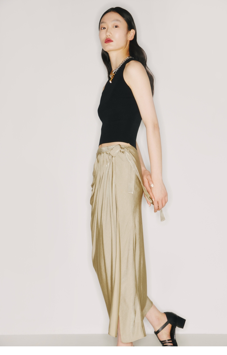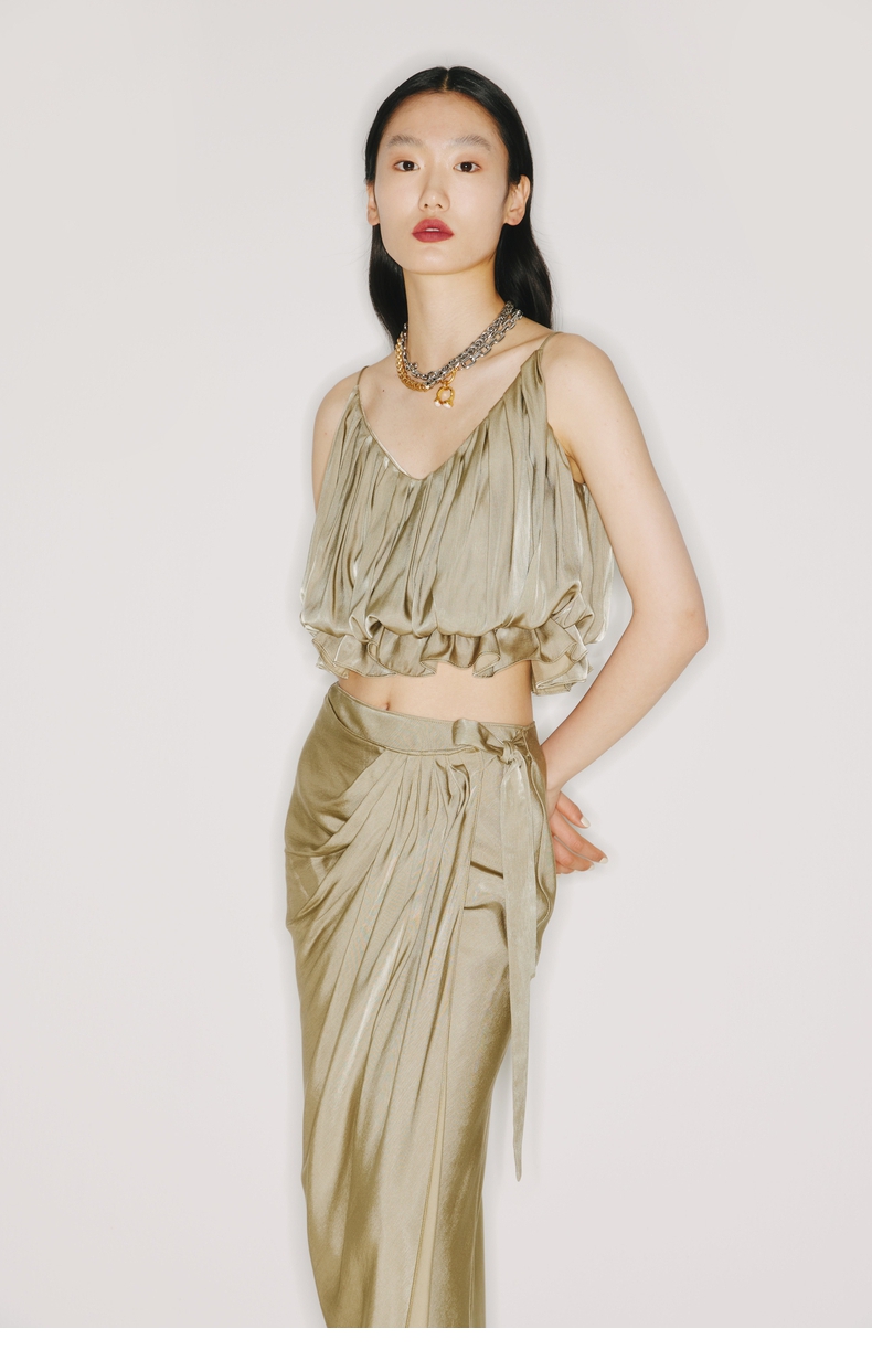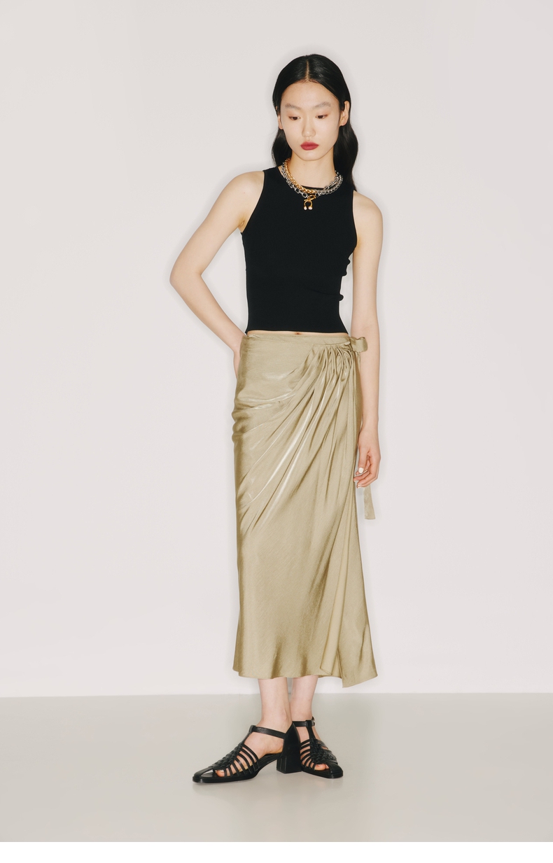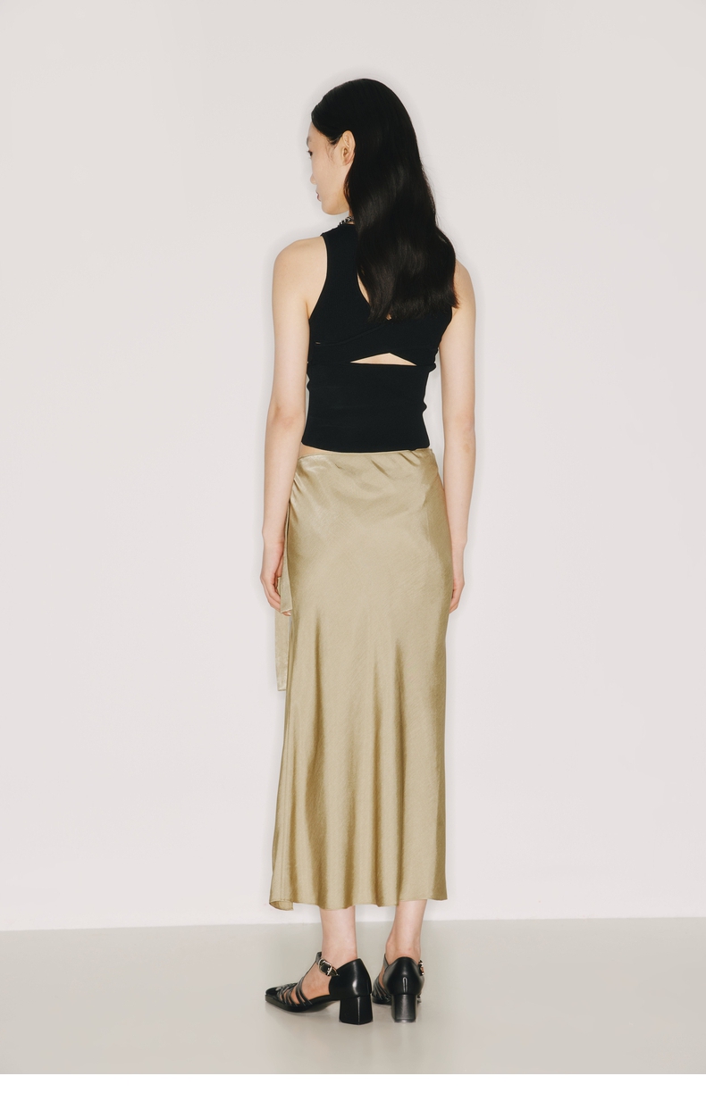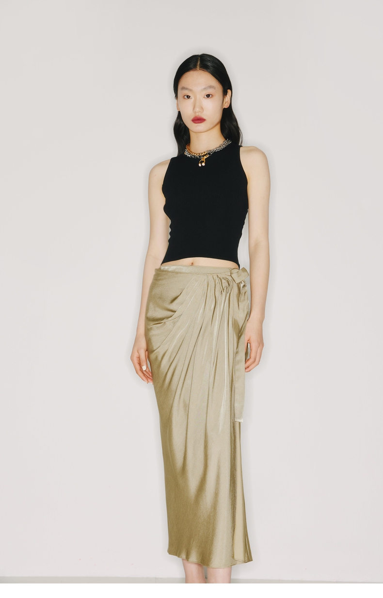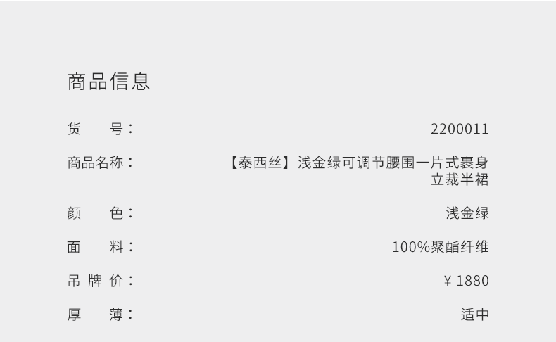 【泰西丝】浅金绿可调节腰围一片式裹身立裁半裙/2200011